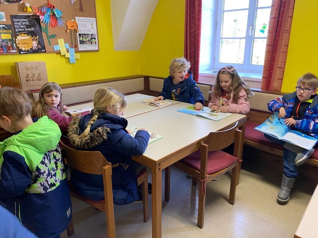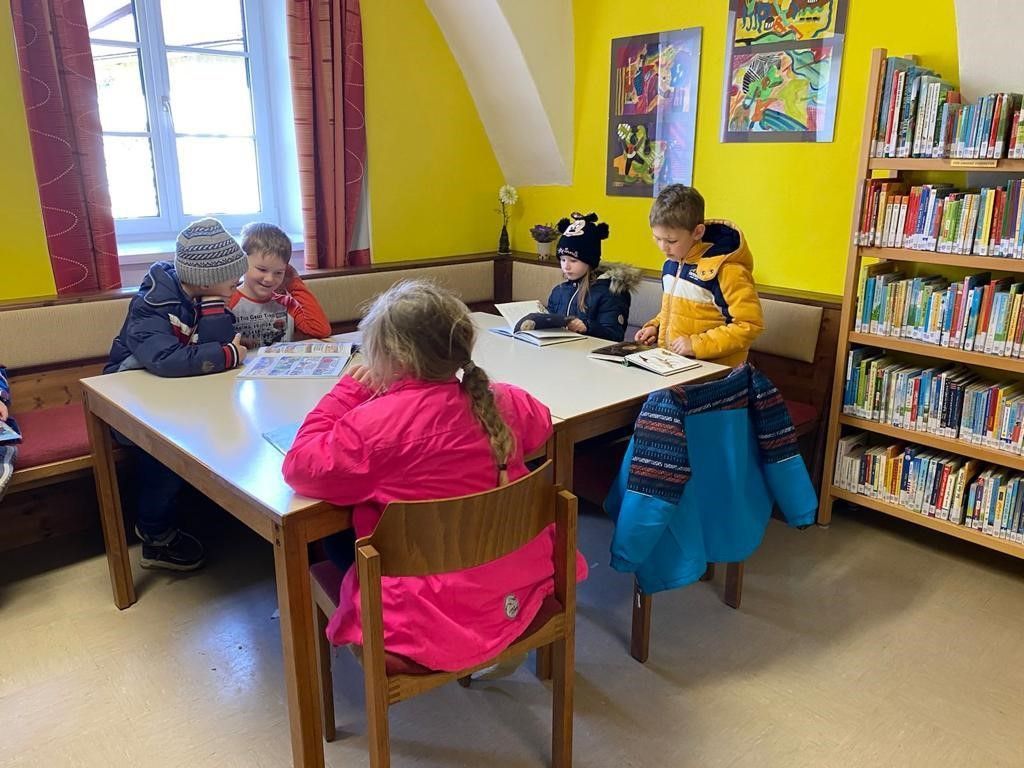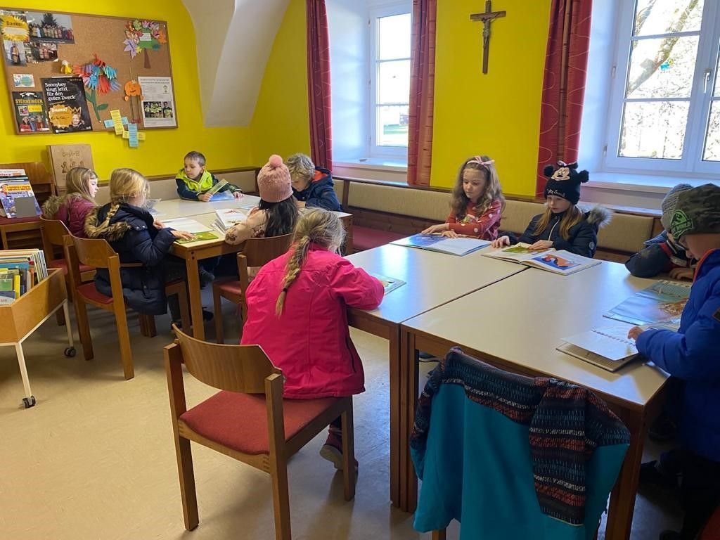 Alle 4 Klassen der VS Saxen besuchten am 17.3.23 die Pfarrbücherei Saxen.