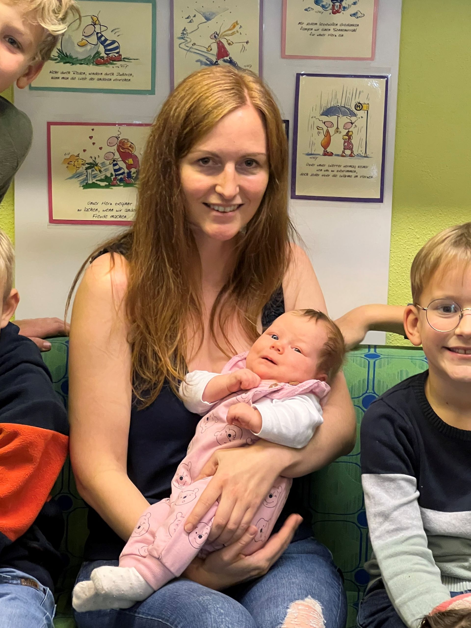 Das zweite VS- Saxen-Baby besuchte natürlich gleich die Kinder in der Klasse und alle waren von der süßen kleinen Maus begeistert.