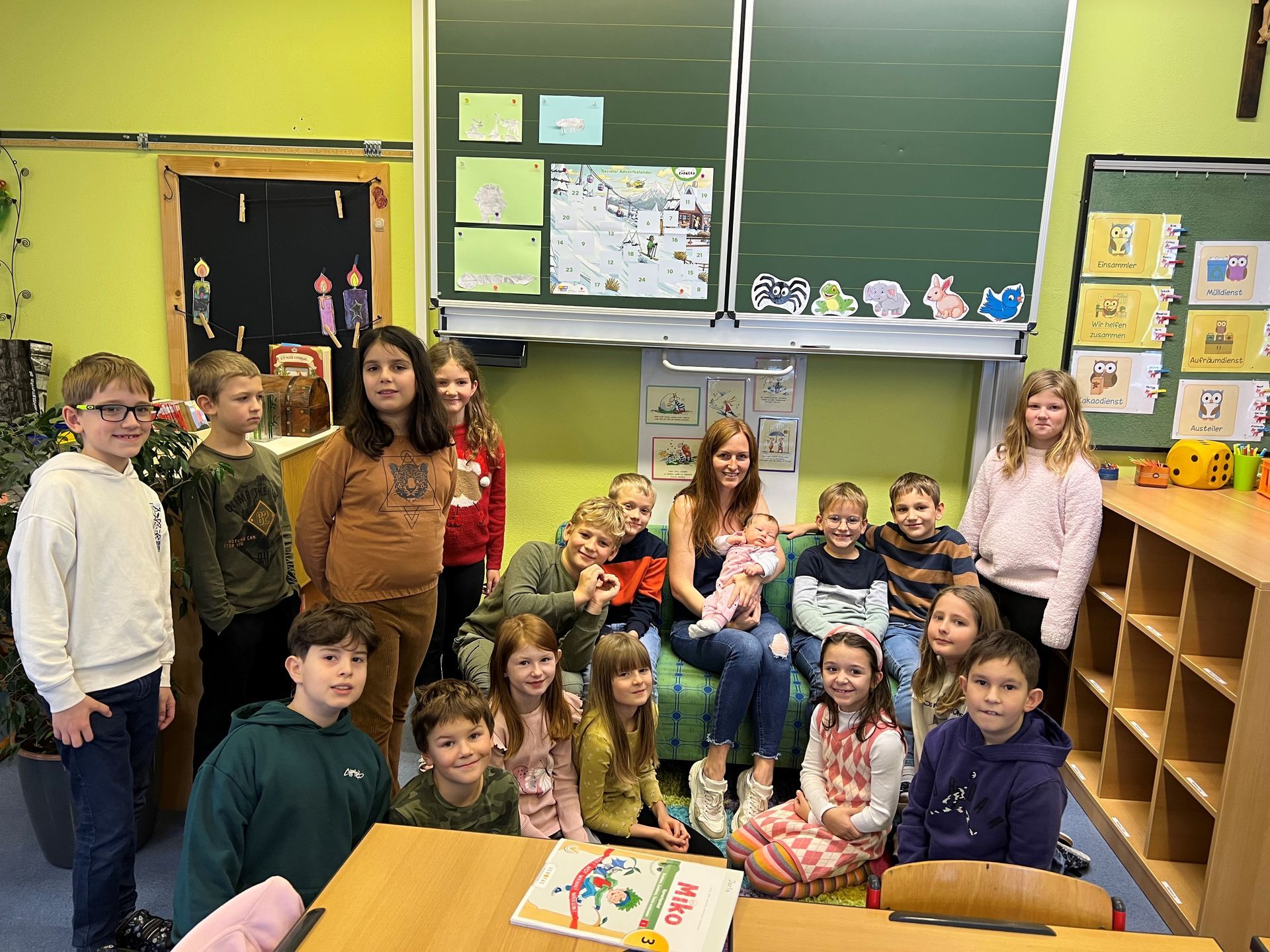 Die Kinder der 3. Klasse und alle Lehrerinnen freuten sich am Mittwoch, 4.Dezember 2024 ,besonders über den Besuch der Kollegin Birgit Lettner mit ihrer kleinen Tochter Annika.