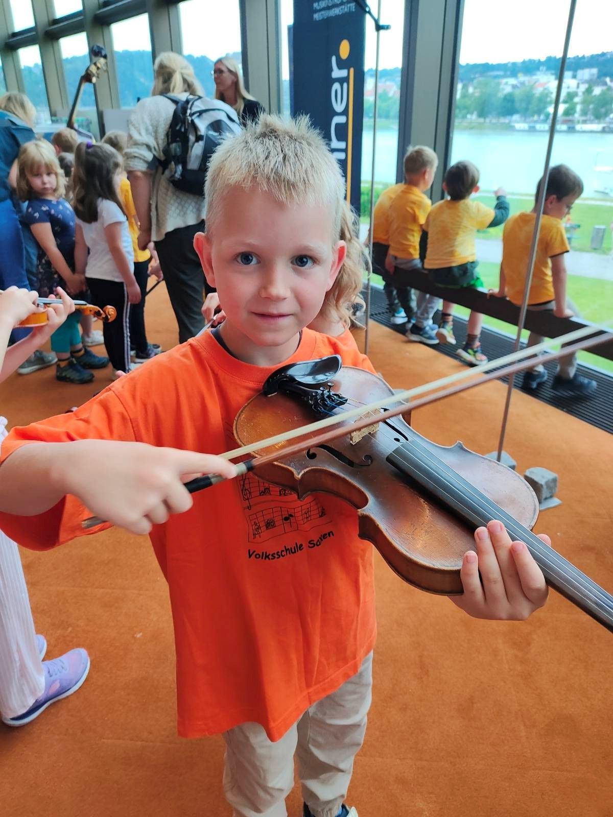 Die Kinder der 1. Klasse durften am 16. Juni 2025 im Brucknerhaus an der Veranstaltung "Ein Haus voll Musik" teilnehmen.
