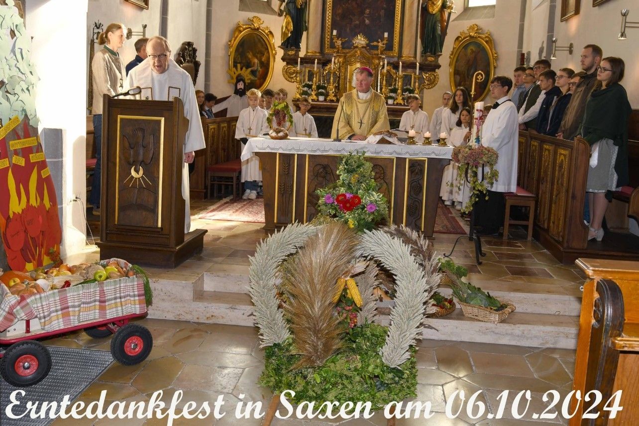 Ein besonderer Ehrengast, Bischof Manfred Scheurer, feierte an diesem Tag mit der Pfarrgemeinde Saxen das Erntedankfest.