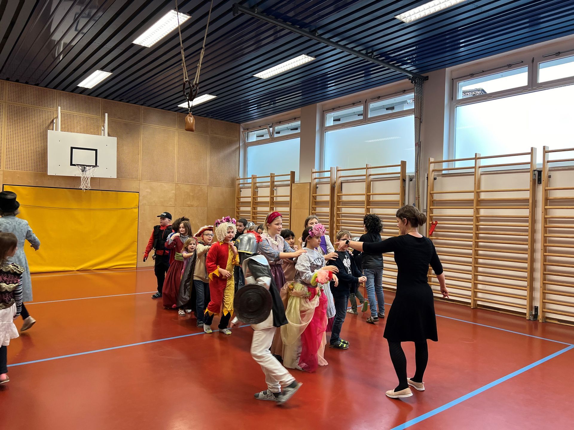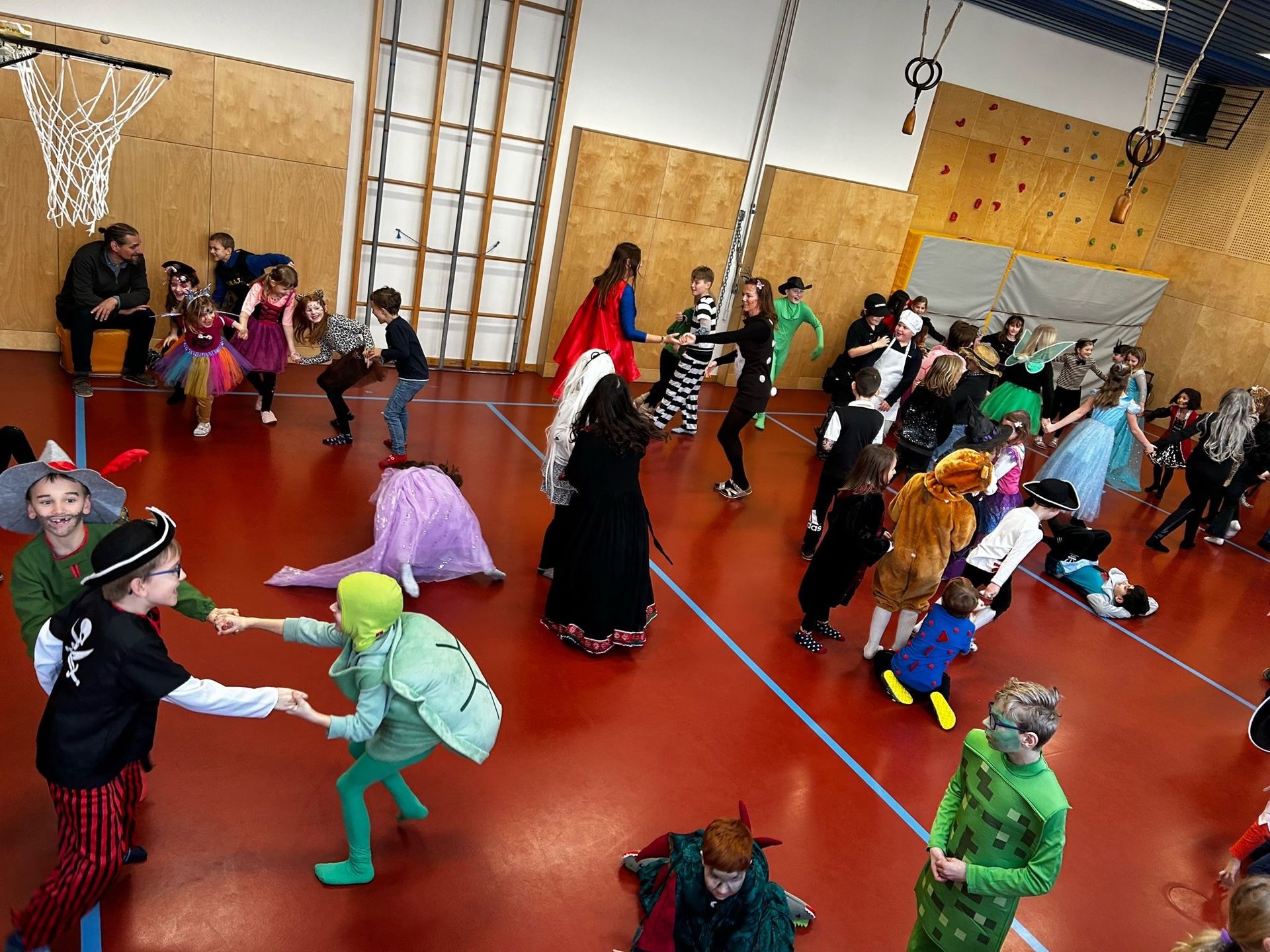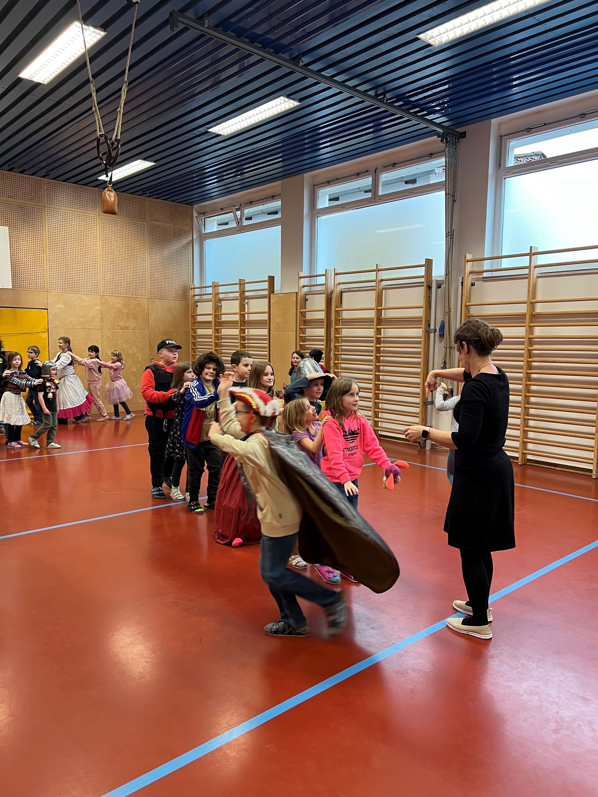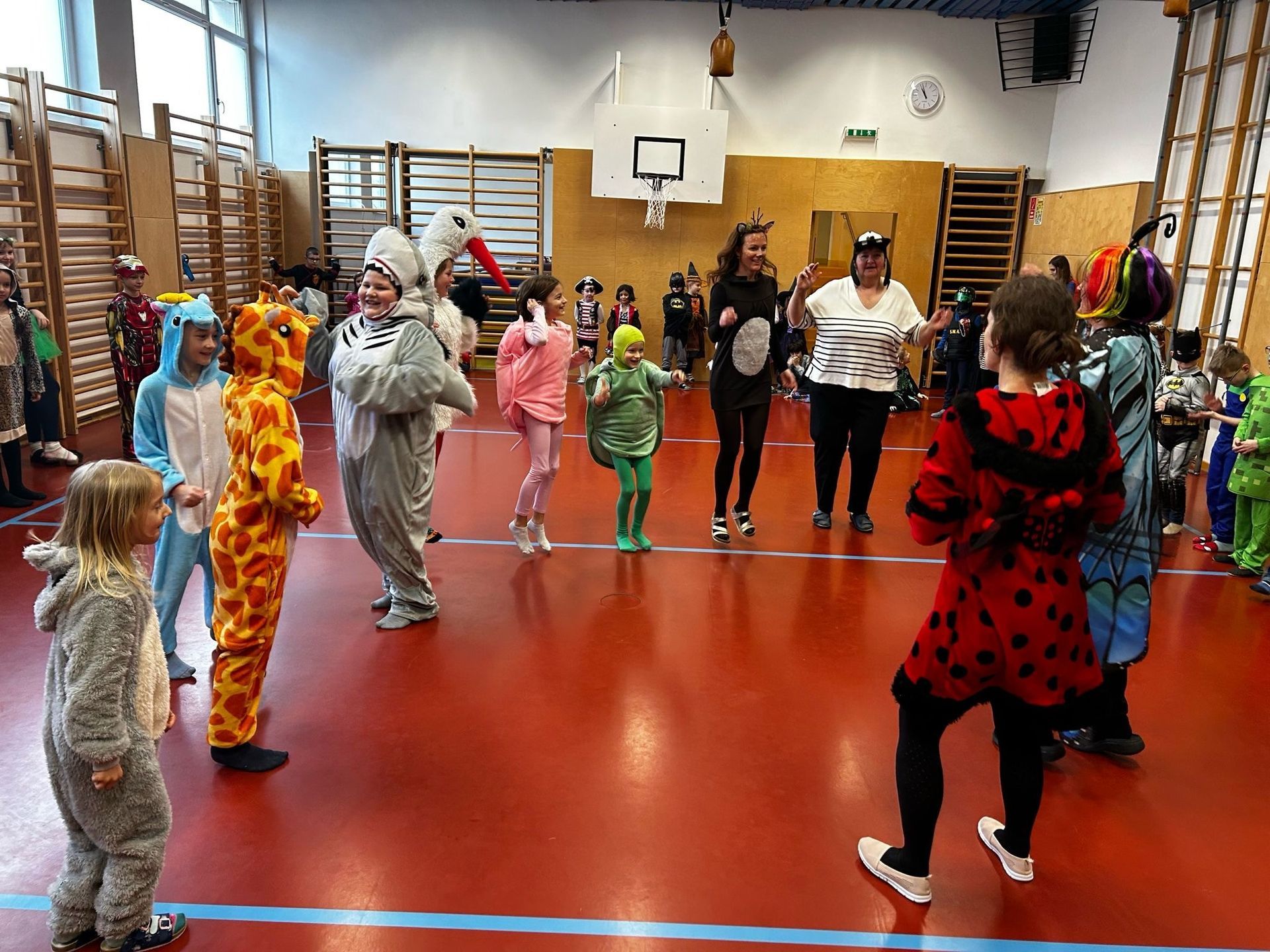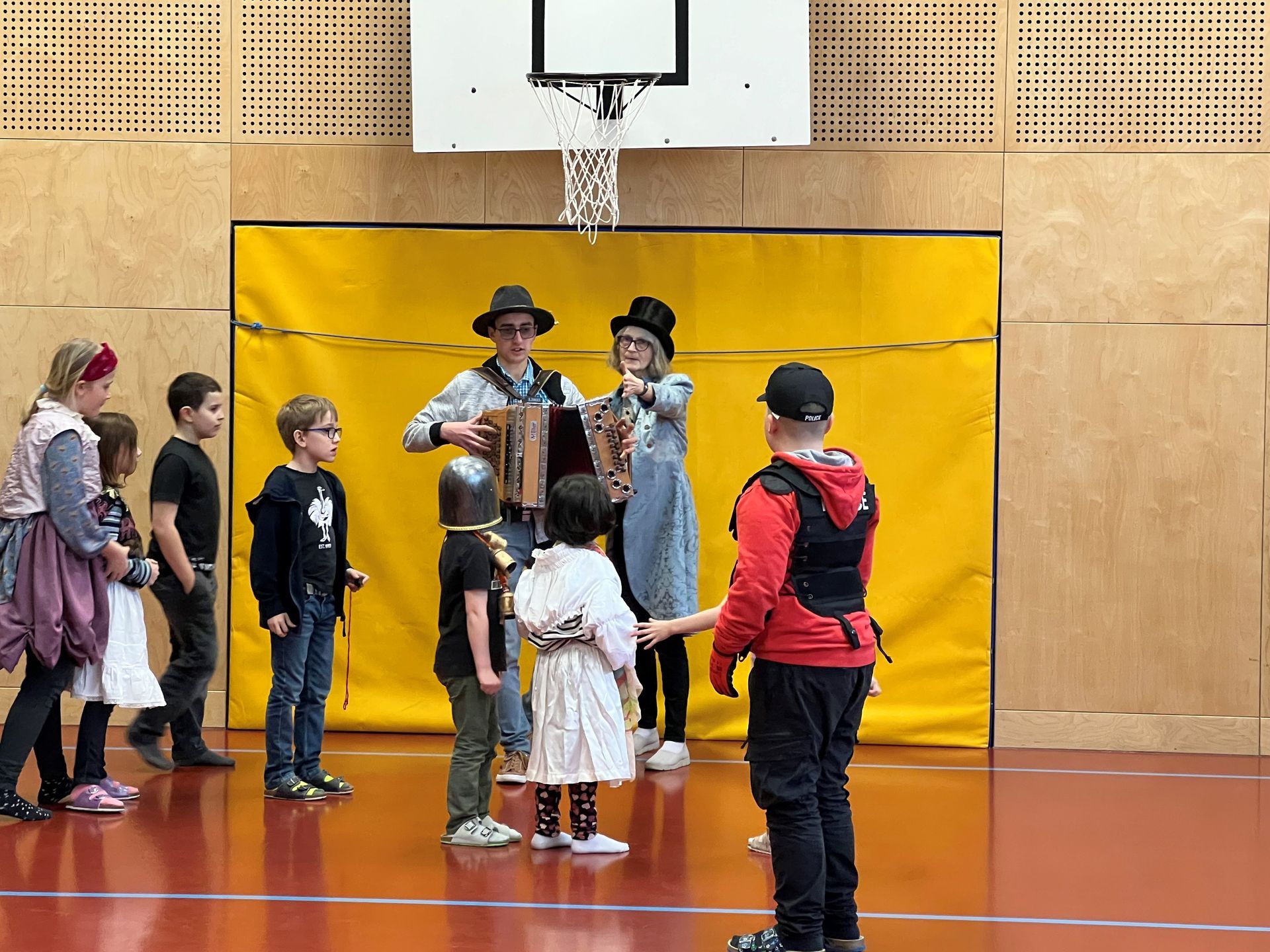 Bereits am Rosenmontag wurde heuer in der GTS und im Musikalischen Gestalten Fasching gefeiert. Esther Grünberg hat einen Ziehharmonikaspieler eingeladen und im Turnsaal wurde zur Musik getanzt.