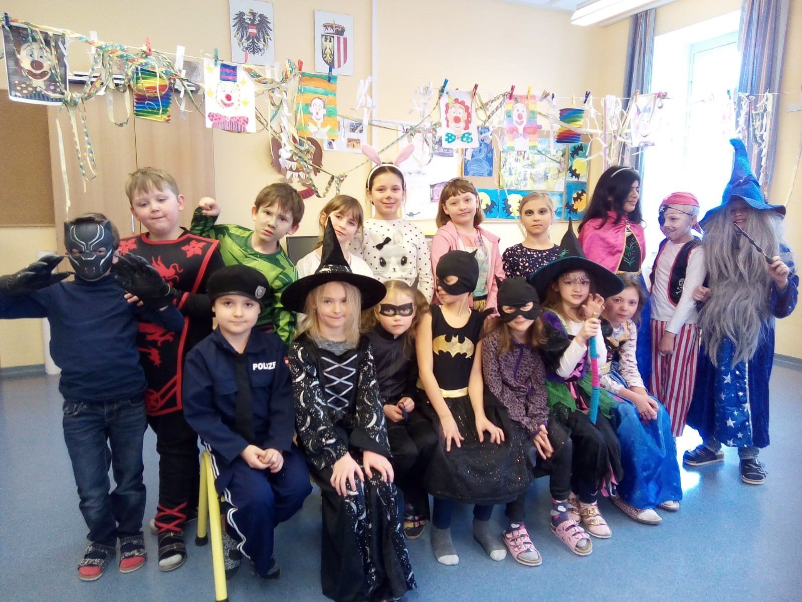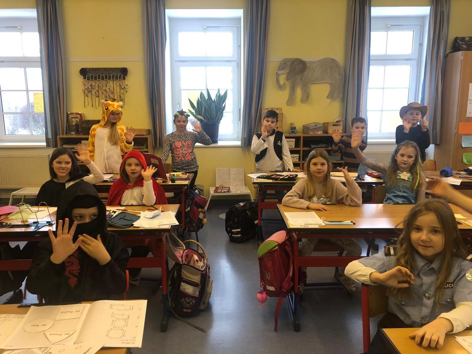 Der Faschingsdienstag musste heuer Covid 19 bedingt etwas ruhiger gestaltet werden. Der große Rummel im Turnsaal konnte leider nicht stattfinden. Auf den Fotos kann man aber gut erkennen, dass alle Kinder in der Klasse großen Spaß und viel Freude mit den netten Kostümen hatten.