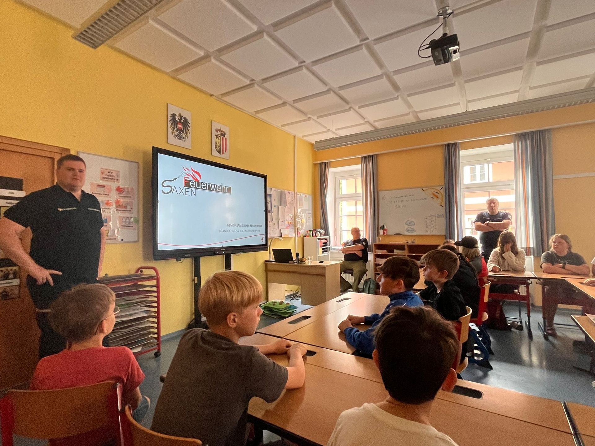 Zuerst erfuhren die Kinder viel Wissenswertes über die Feuerwehr in der Klasse.