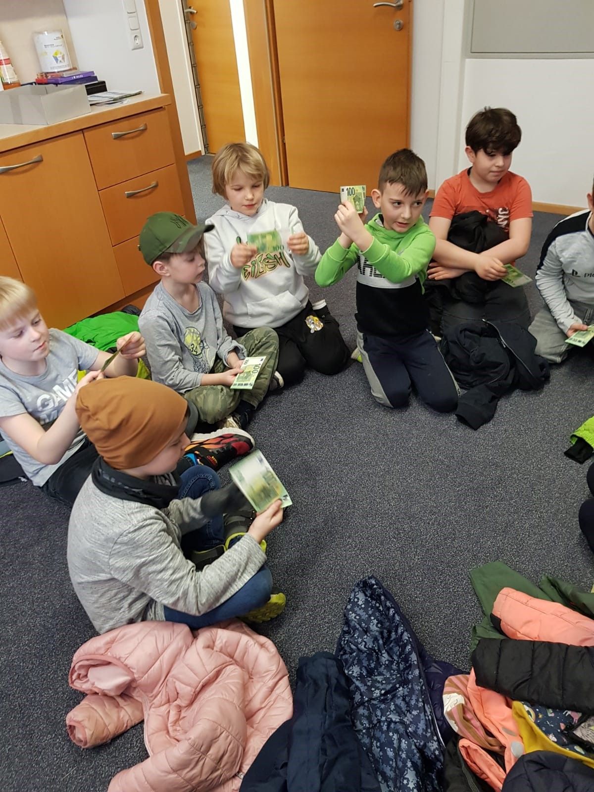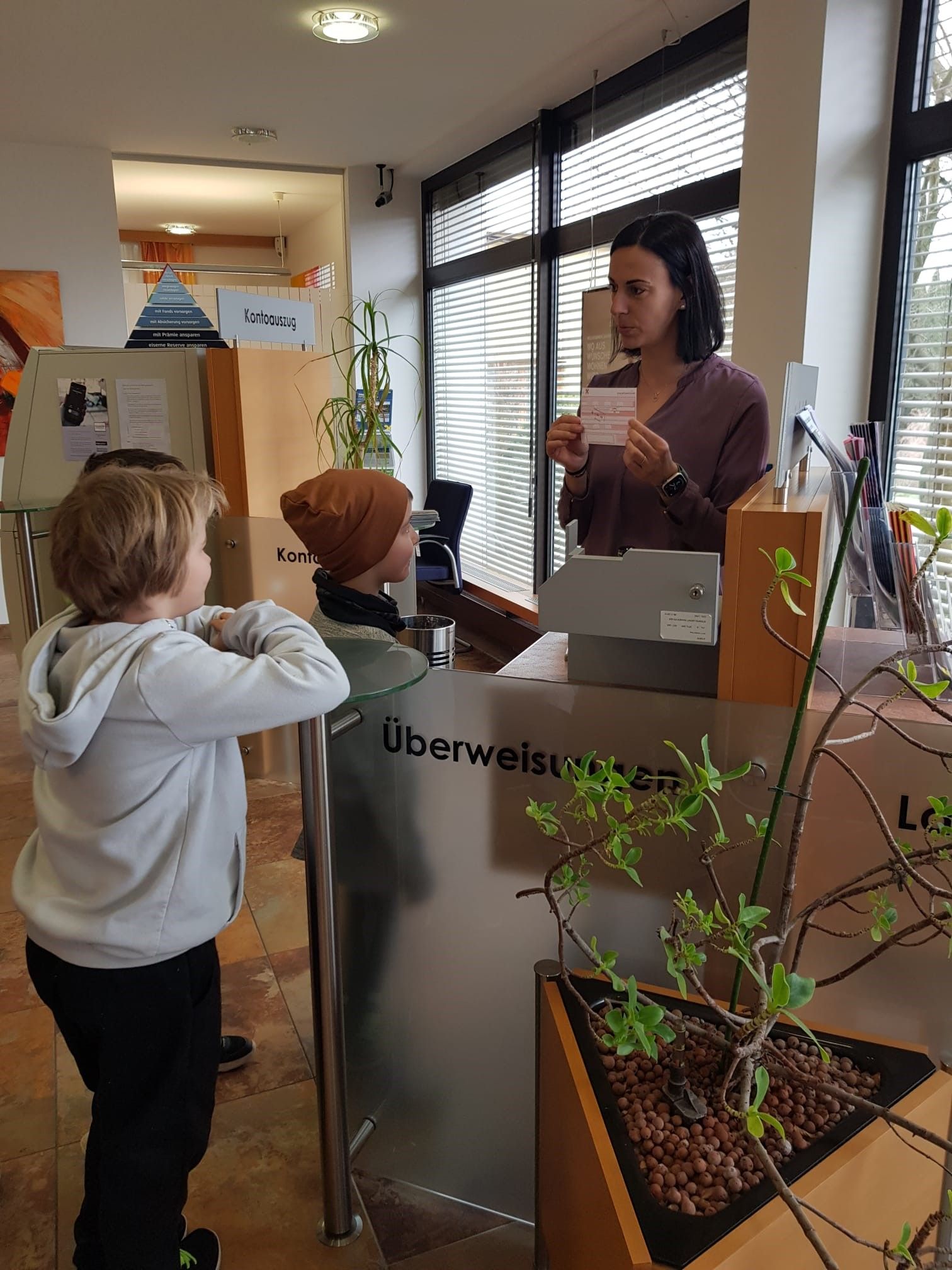 Besonders aufregend war es natürlich in der Bank die Geldscheine auf ihre Sicherheitsmerkmale zu prüfen.