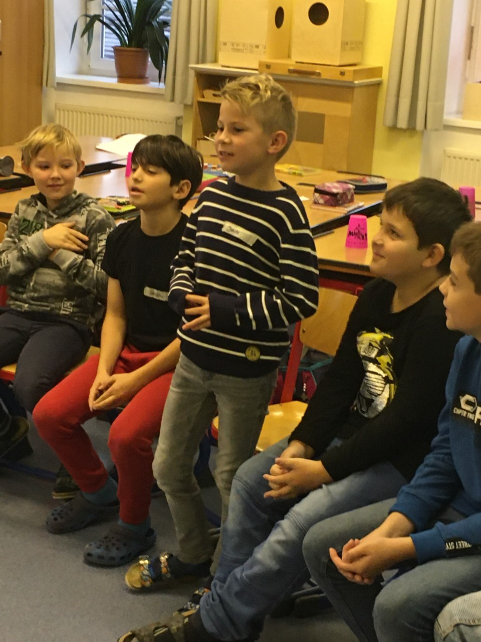 3. Klässler am 13. 11. 2019 erleben. Ein Lehrer der Florianer Sängerknaben studierte mit den Kindern ein Lied ein, Gesangs- und Atemtechniken wurden ausprobiert.