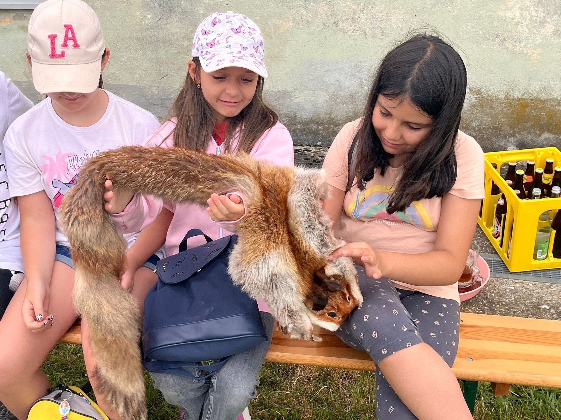 Mit der Jägerschaft Saxen spazierten die Kinder durch den Wald und konnten viele Tiere und Pflanzen bewundern und viel Wissenswertes über die Natur erfahren.