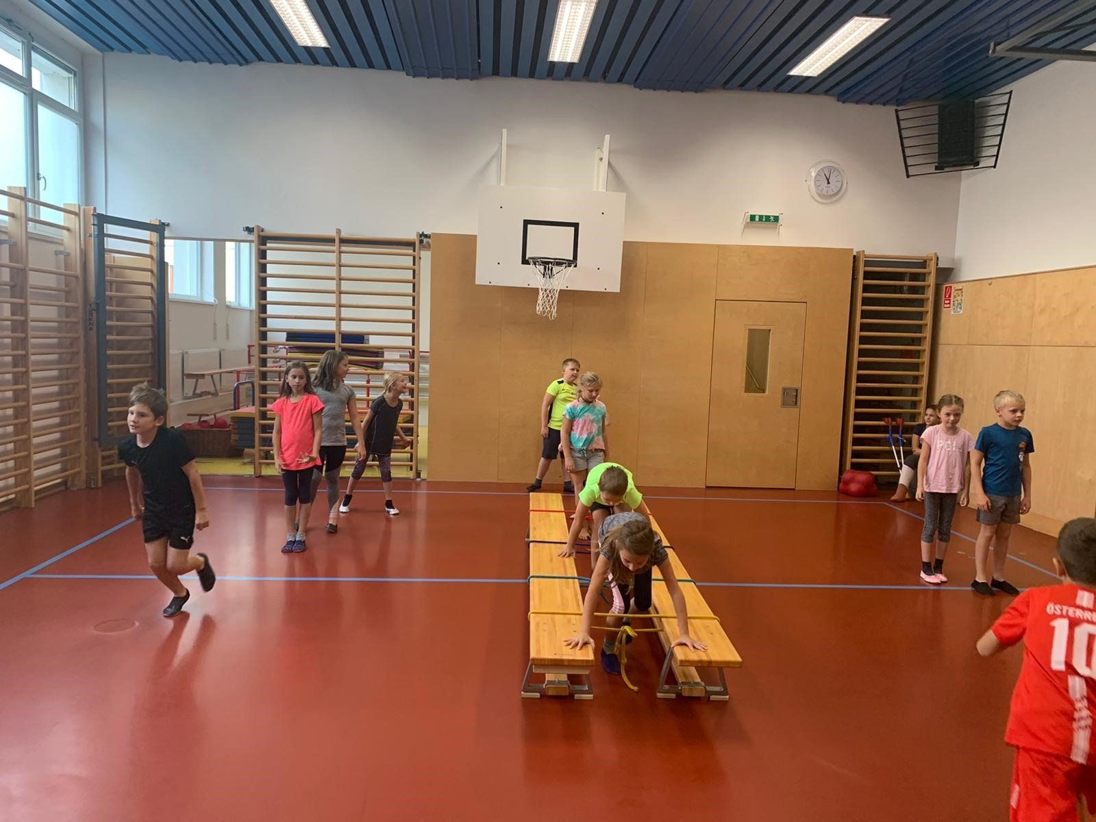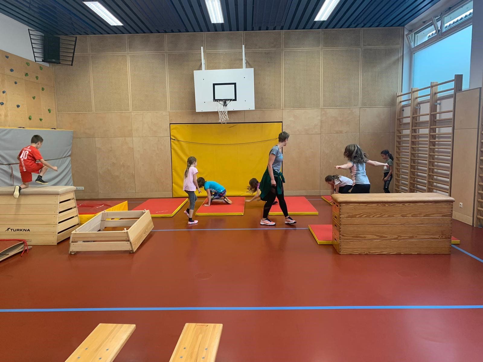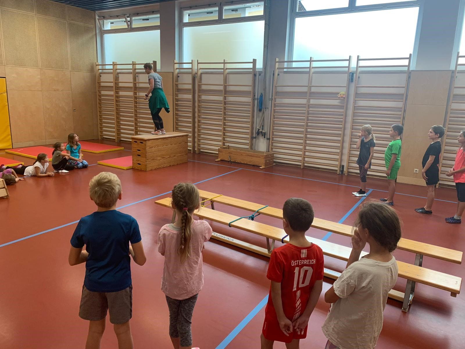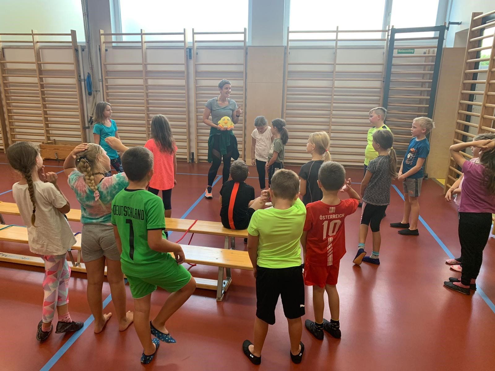 Frau Kathrin Kastner, Bewegungscoach der Sportunion, begeisterte die Kinder mit einem tollen Bewegungsangebot und pfiffigen Ideen.