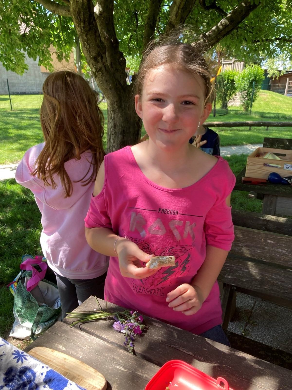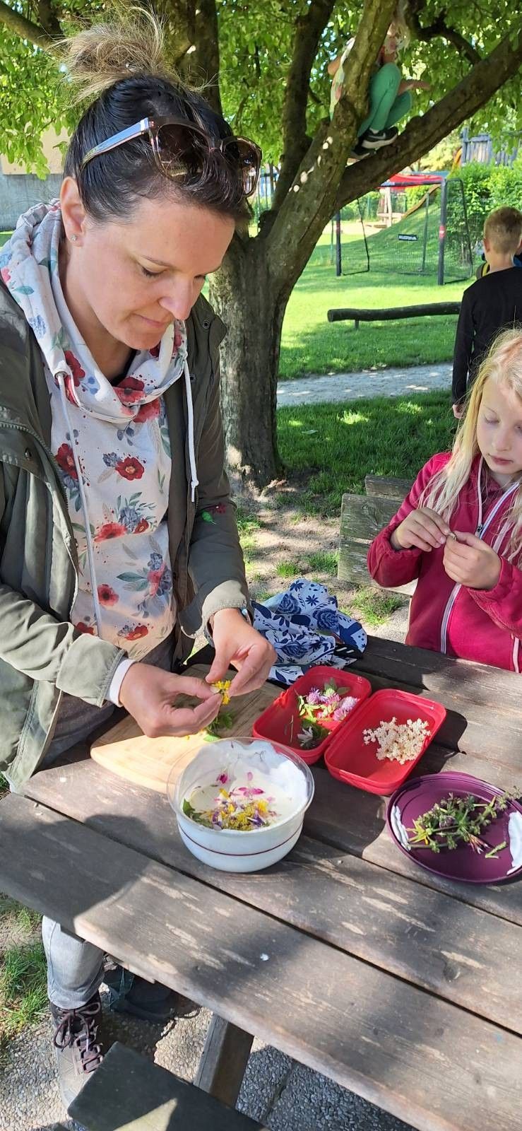 Am 12. Mai 2025 brachen die Kinder der 2. und 3. Klasse zu einer Kräuterwanderung auf. Am Reitberg entdeckten die Kinder mit der Kräuterpädagogin Kathi Mitterhofer aus Arbing eine prächtige Wiese mit vielen Kräutern. Nach vielen Erklärungen wurden einige genießbare Kräuter gepflückt und anschließen wurden diese zu einem herrlichen Kräutertopfen verarbeitet. Die Topfenbrote schmeckten den Kindern sehr gut und in Zukunft wissen nun die Kinder über gesunde und genießbarer Kräuter in der Natur Bescheid.