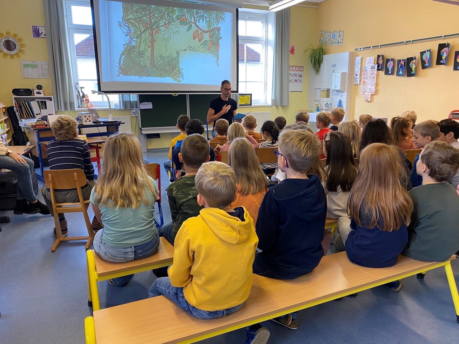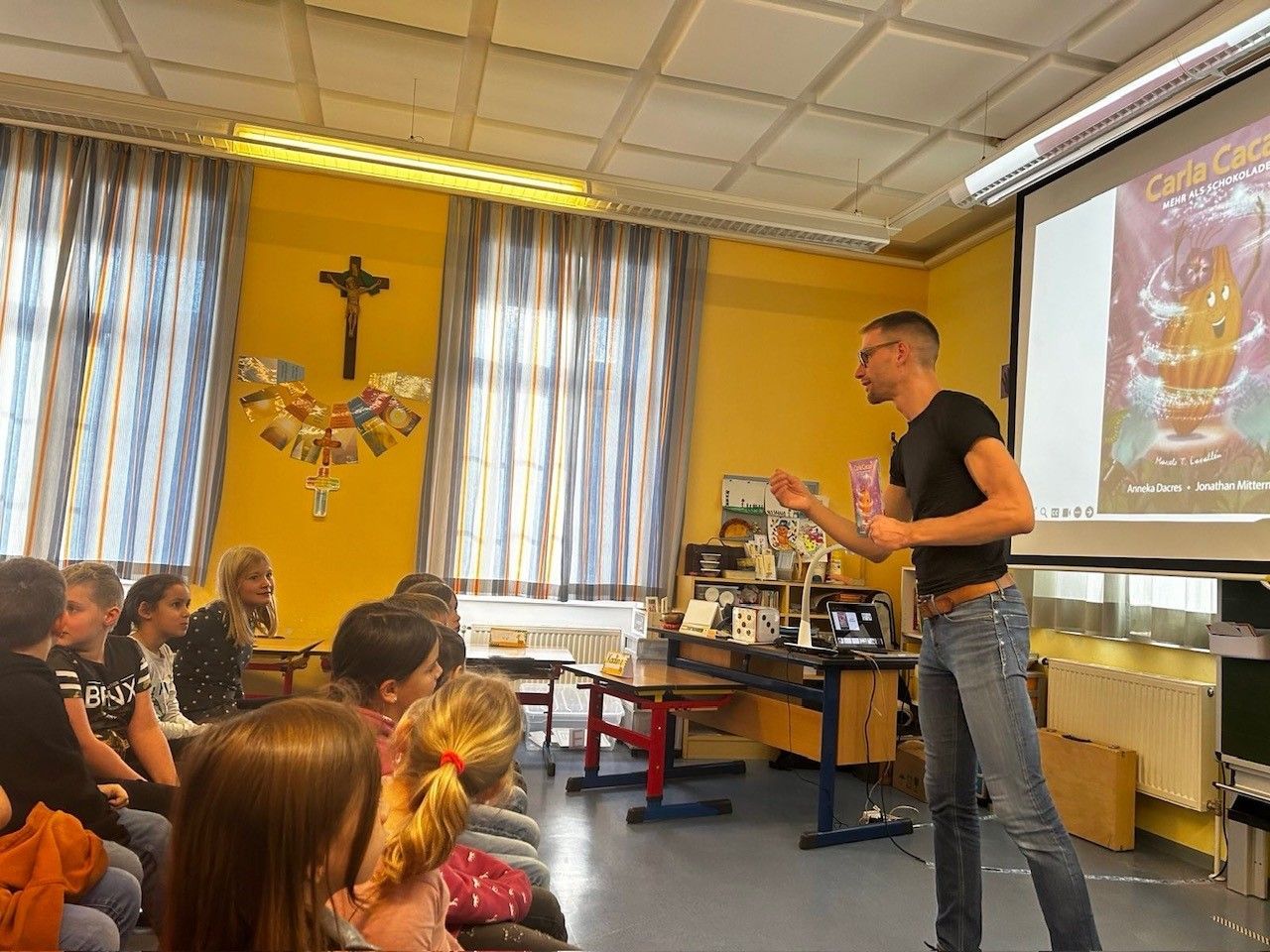 Bereits zum zweiten Mal war der oberösterreichische Autor Jonathan Mittermeier am 8. November 2023 zu Gast in der VS Saxen. Dieses Mal stellte er sein neues Buch " Carla Cacao" vor.