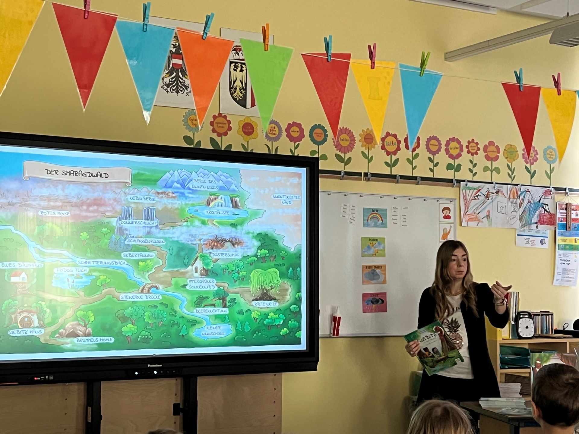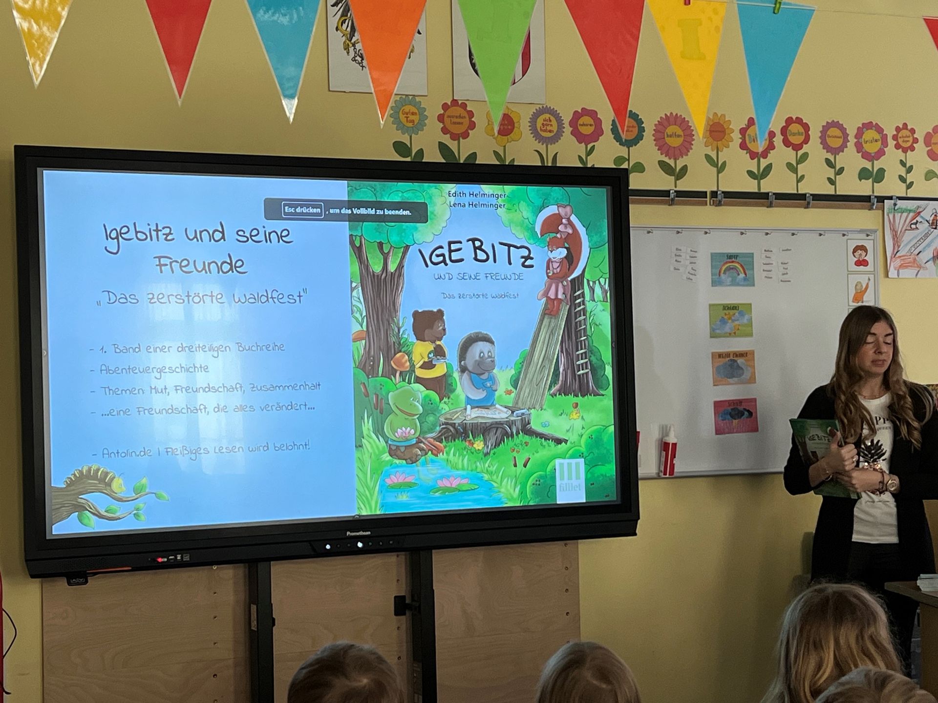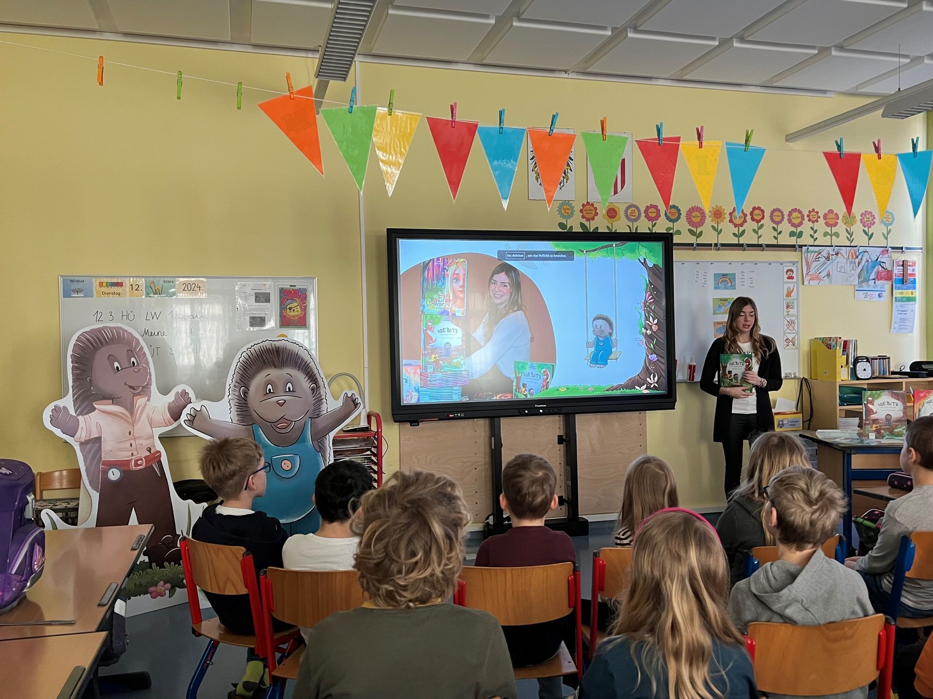 Die Autorin Edith Helminger begeisterte am Mittwoch, 13.März 2024 die Kinder mit ihren Büchern der Igel- Igebitz- Reihe.