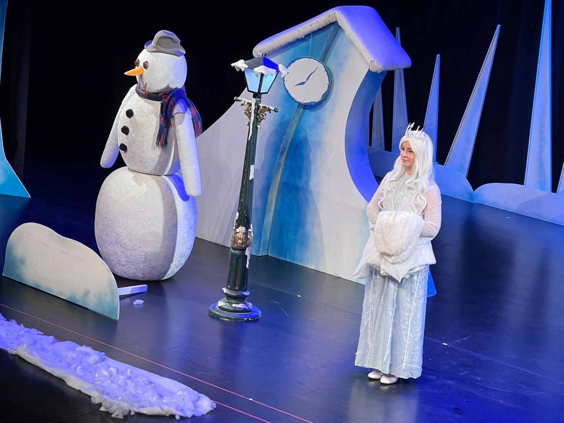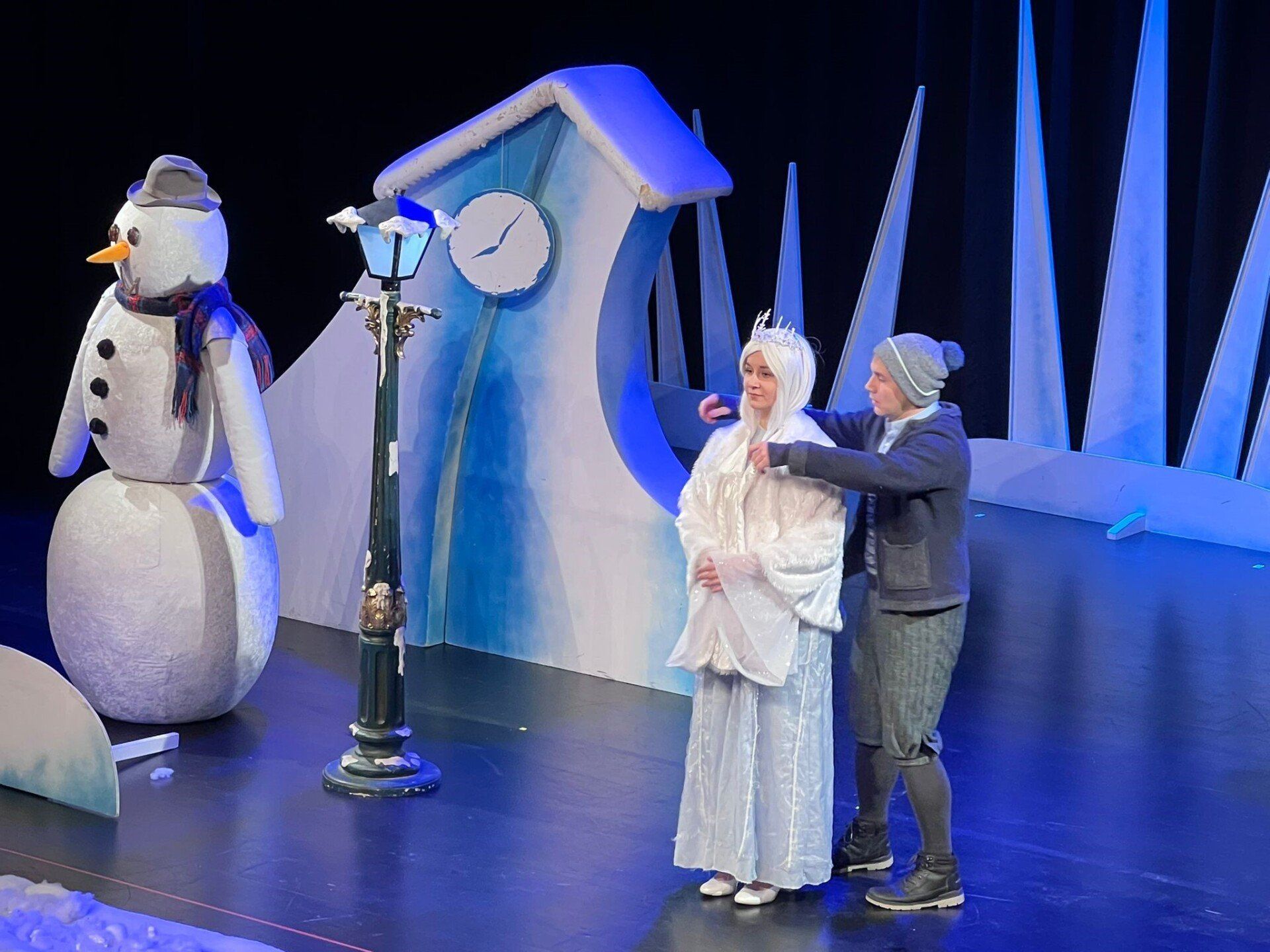 Auf dem schönen winterlichen Bühnenbild tanzten und sangen die Schauspieler und verzauberten die Kinder.