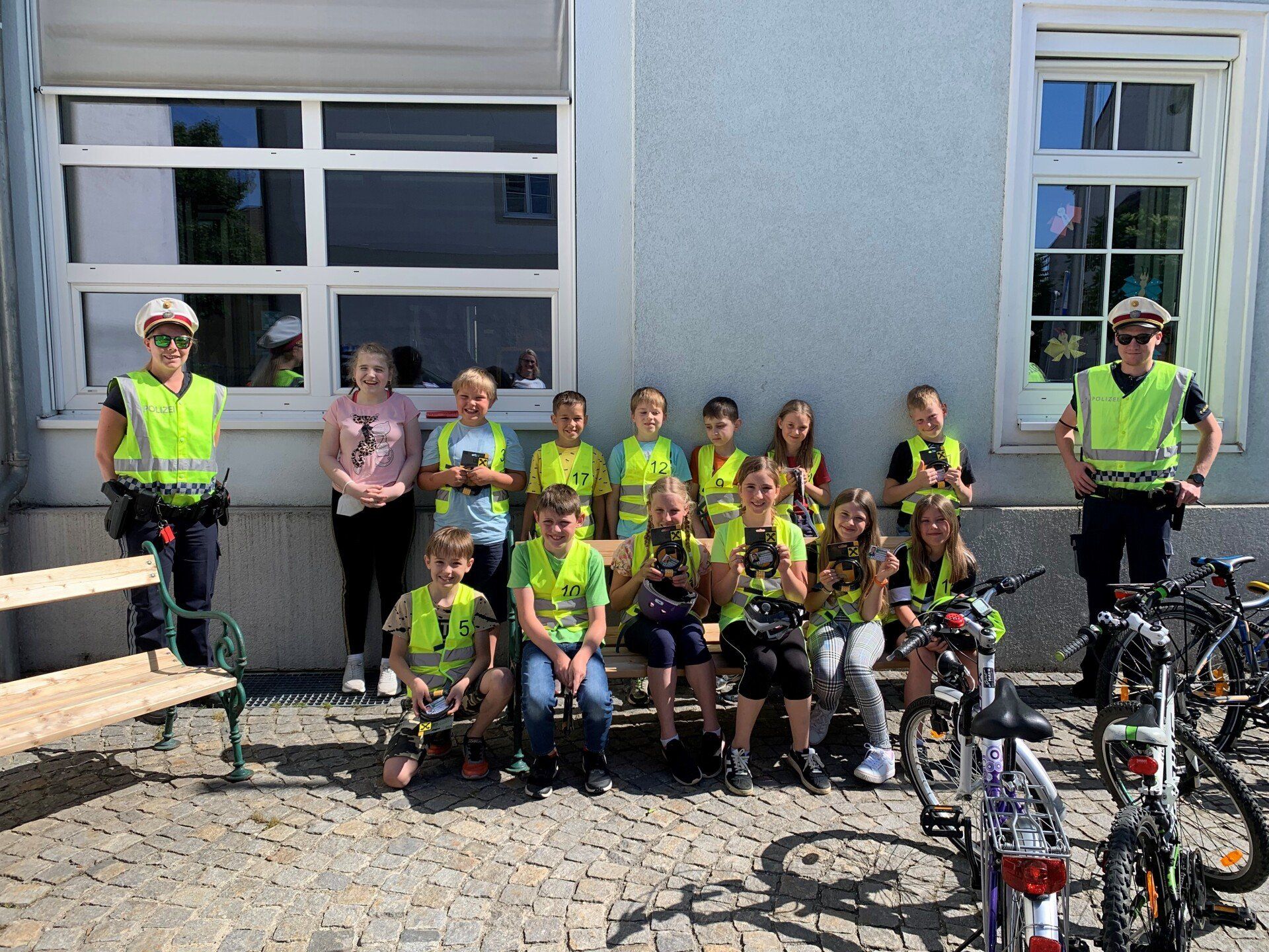 Am 14. Juni legten die Kinder der 4. Klassen erfolgreich die Radfahrprüfung ab.Als Geschenk gab es zum Führerschein ein Fahrradschloss, danke an die Raiffeisenbank Saxen.