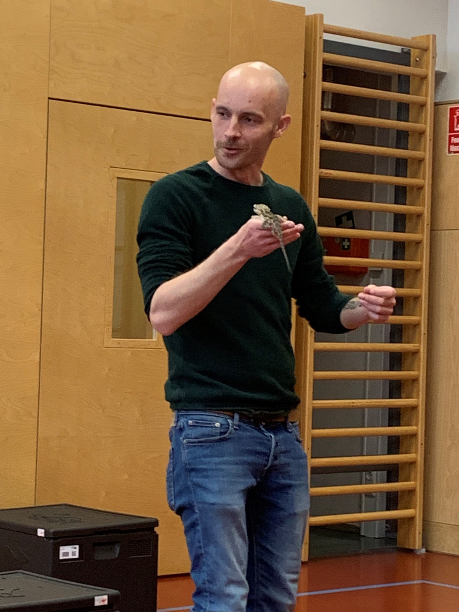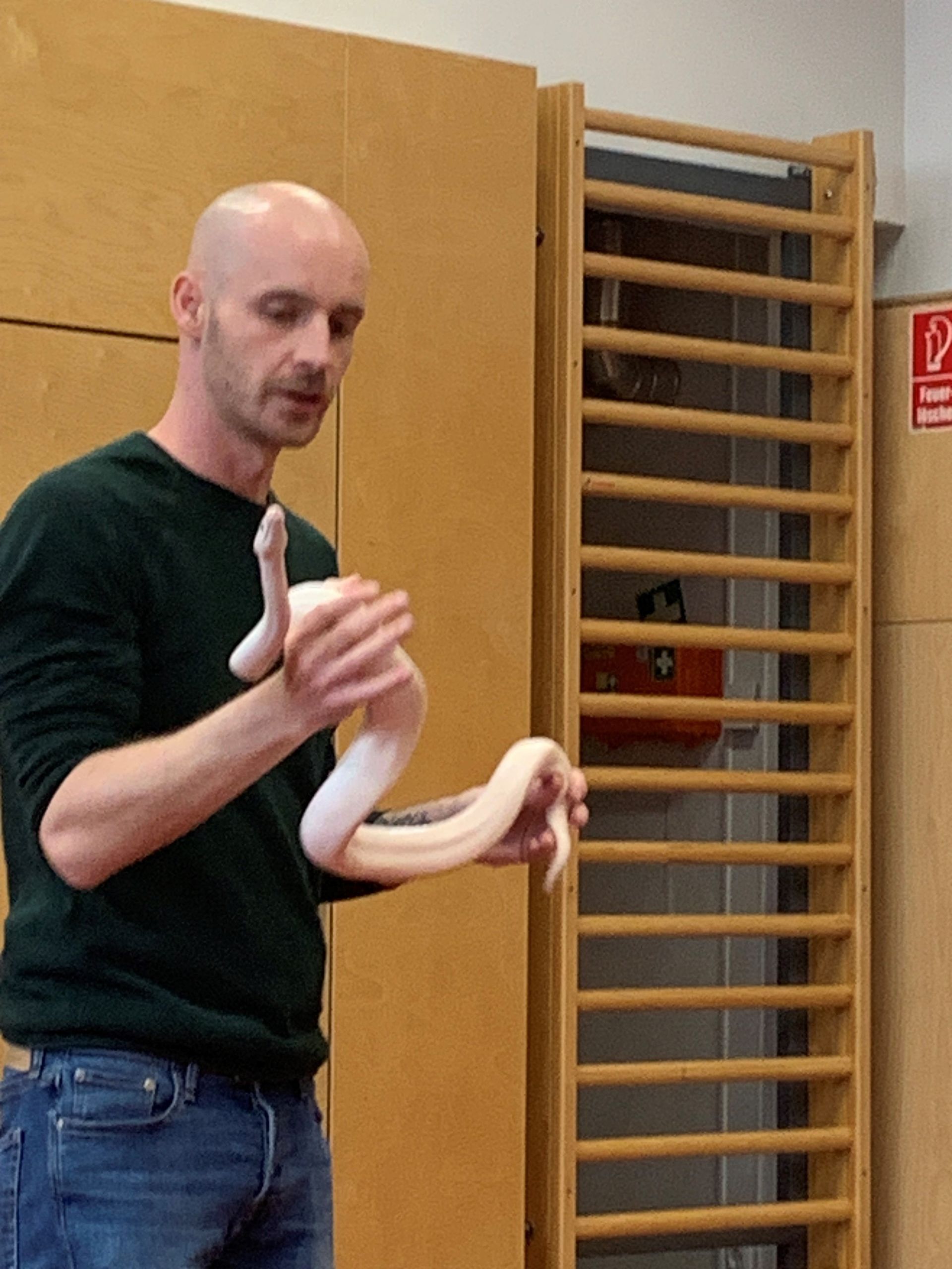 Herr Luttinger betreut ein Auffangstation für Reptilien und ist zertifiziert an Schulen Vorträge über Reptilien zu halten.
