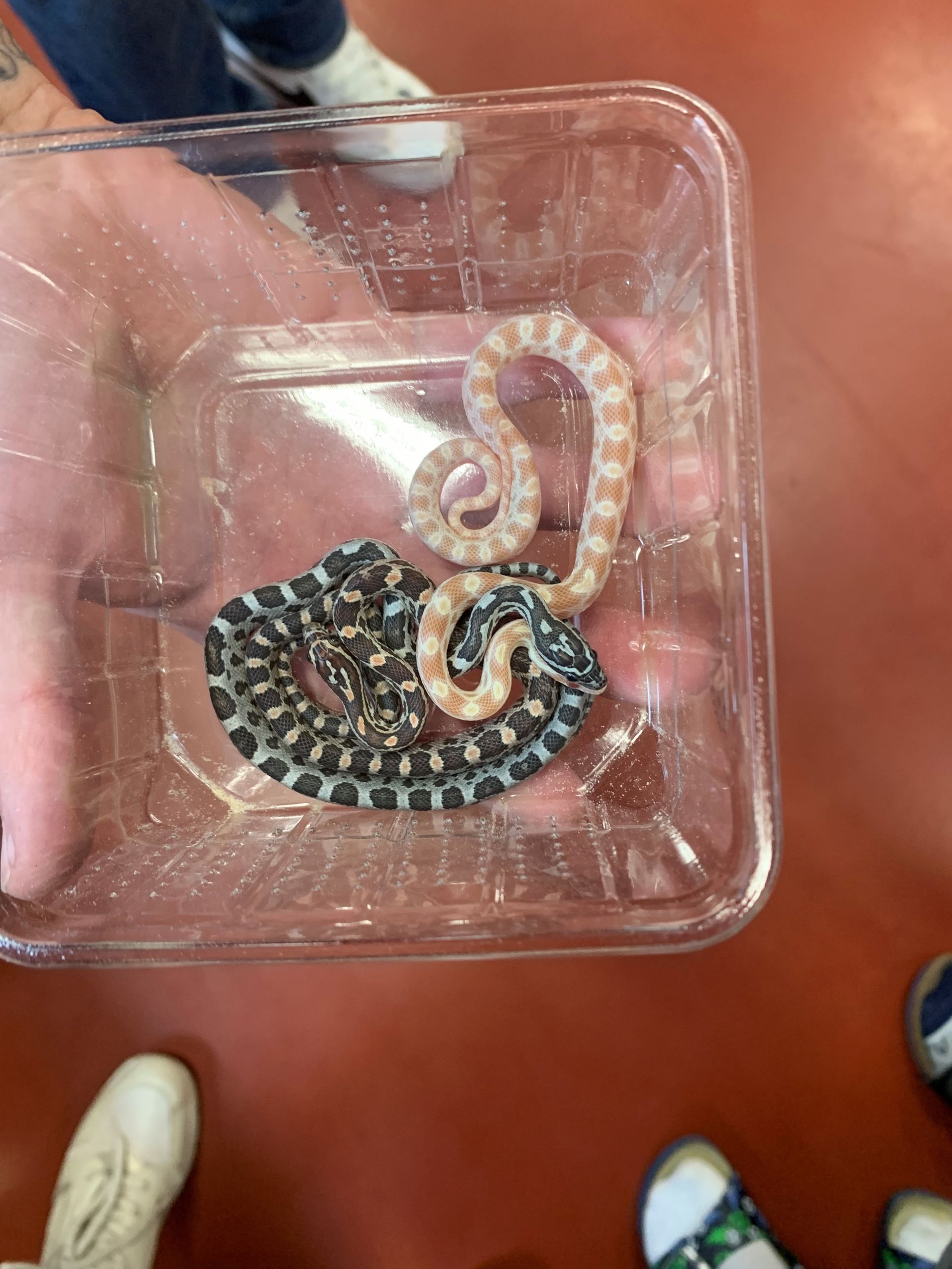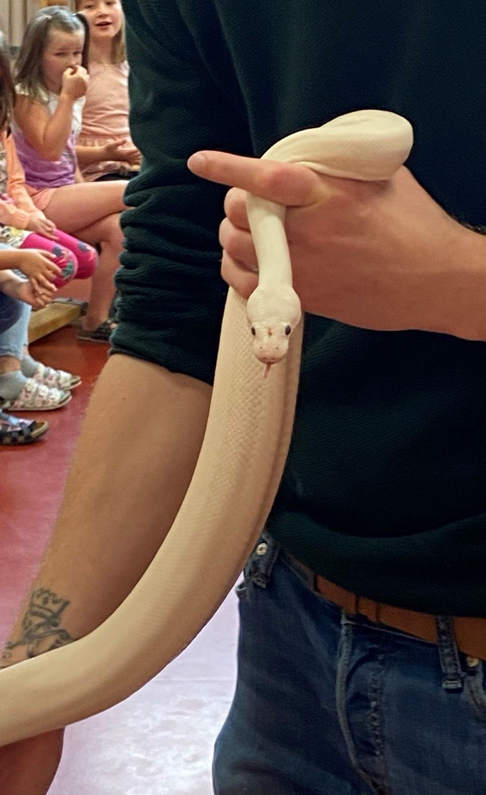 Frisch geschlüpfte 9 Stunden alte Babyschlangen und die Königsnatter Schneewittchen waren für alle ein Erlebnis.