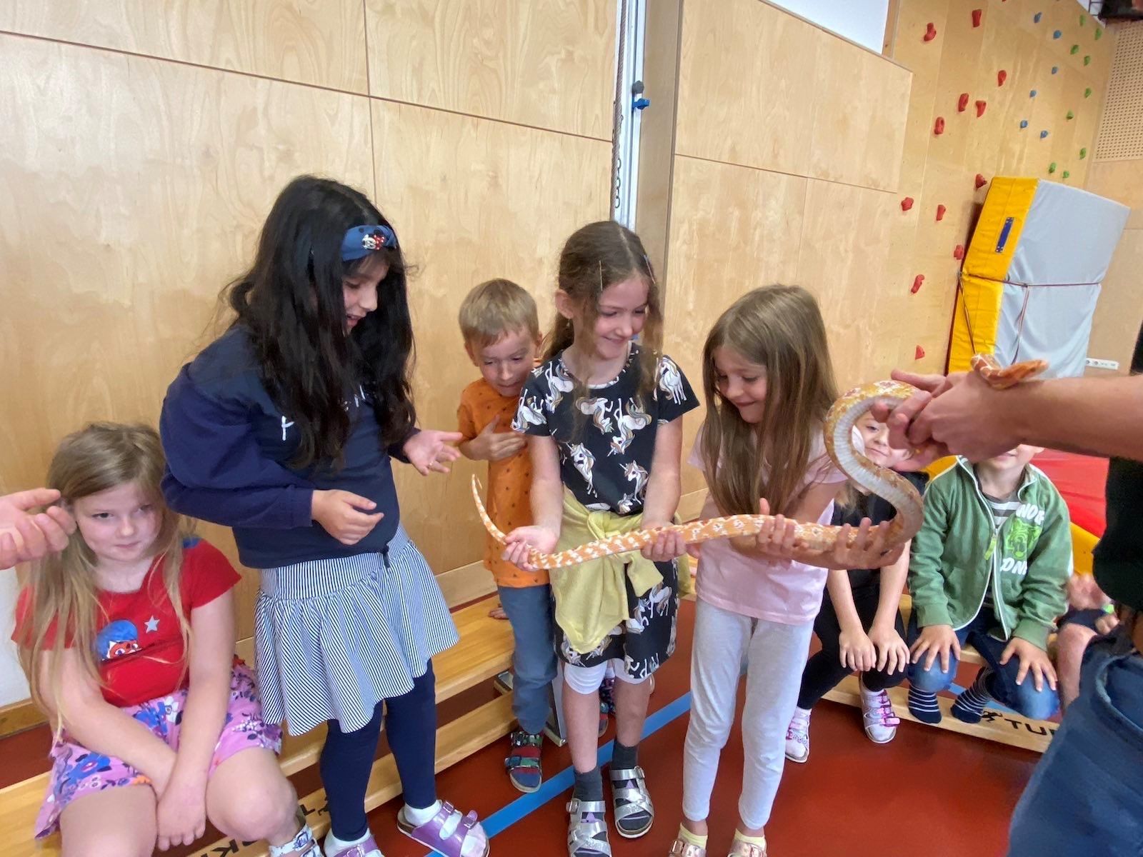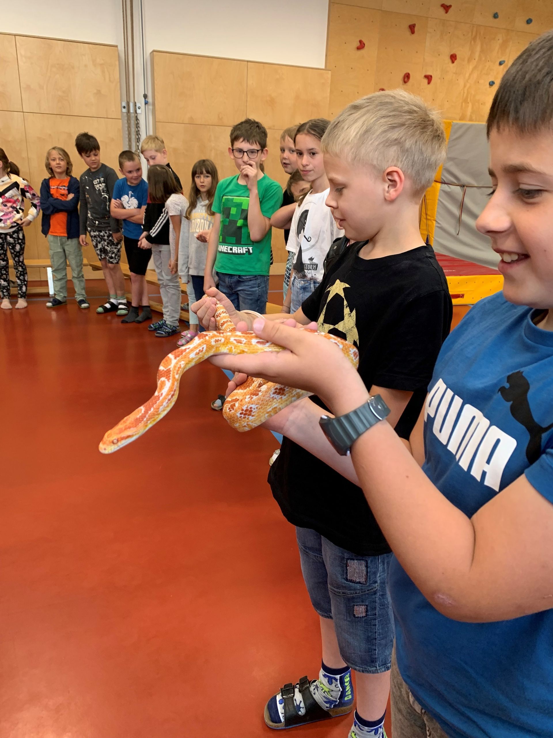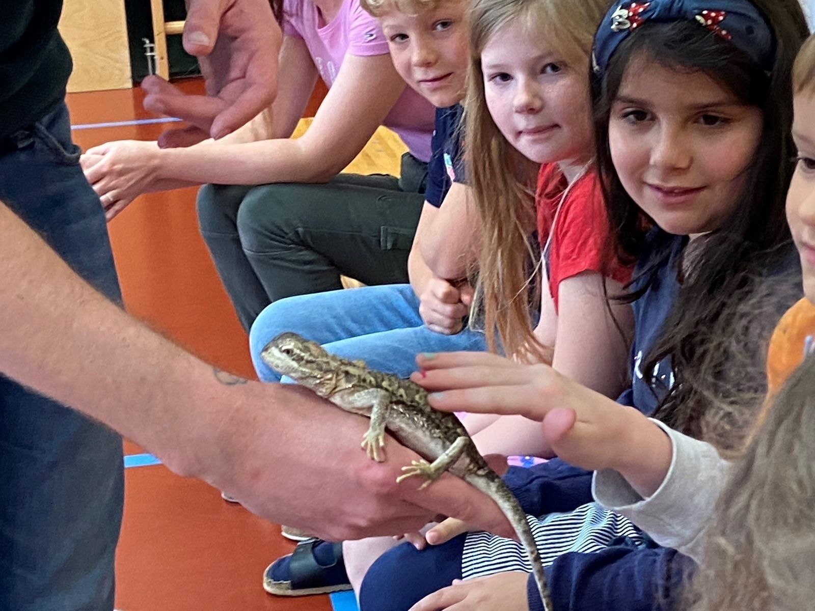 Der Vortrag über Reptilien war für die Kinder sehr lehrreich und konnte bei einigen Kindern die Angst und Scheu vor Reptilien nehmen.