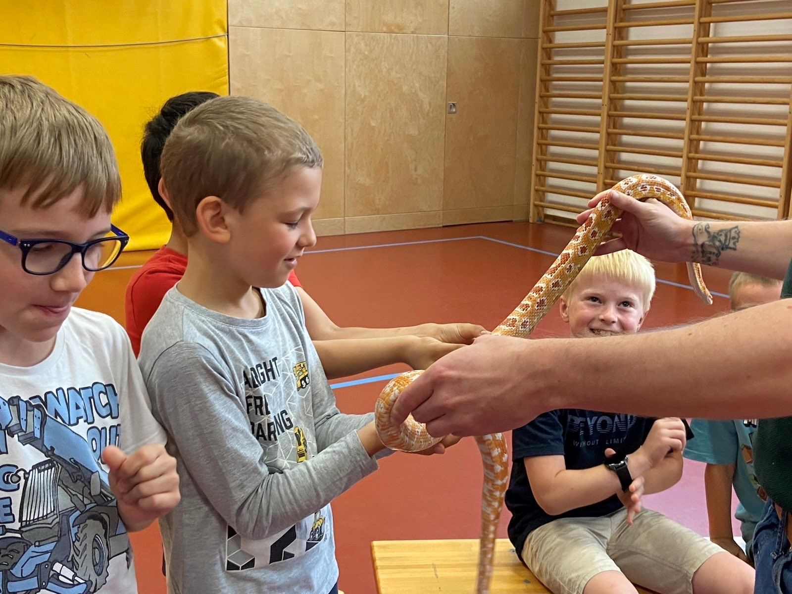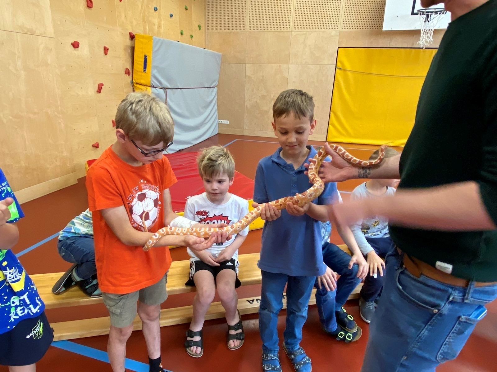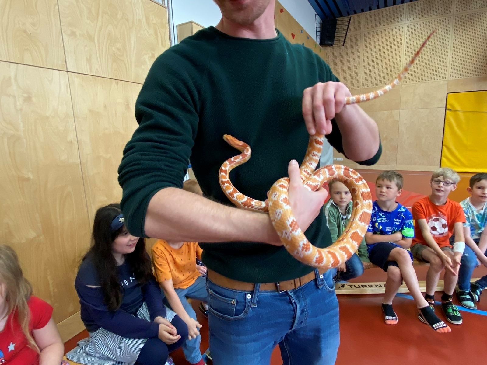 Der Vortrag über Reptilien war für die Kinder sehr lehrreich und konnte bei einigen Kindern die Angst und Scheu vor Reptilien nehmen.