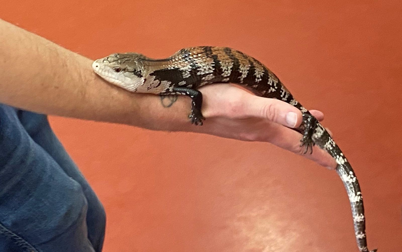 Zuerst durften die Kinder die Bartagame Lilli und den Skink mit der blauen Zunge bewundern und streicheln.