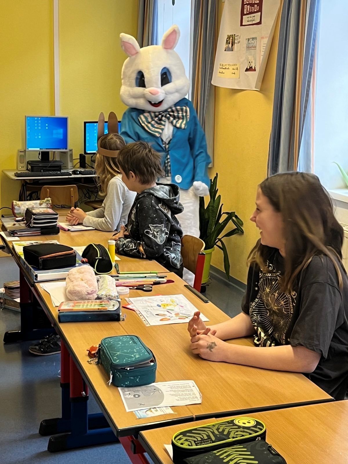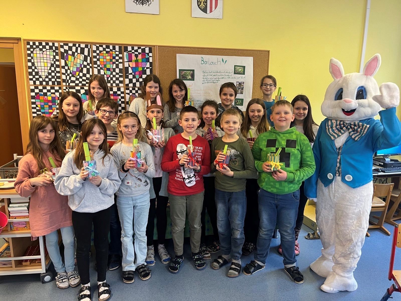 Am Freitag, den 31.3.2023 wollte der Osterhase höchstpersönlich nachsehen, ob auch alle Kinder in der VS Saxen brav lernen.