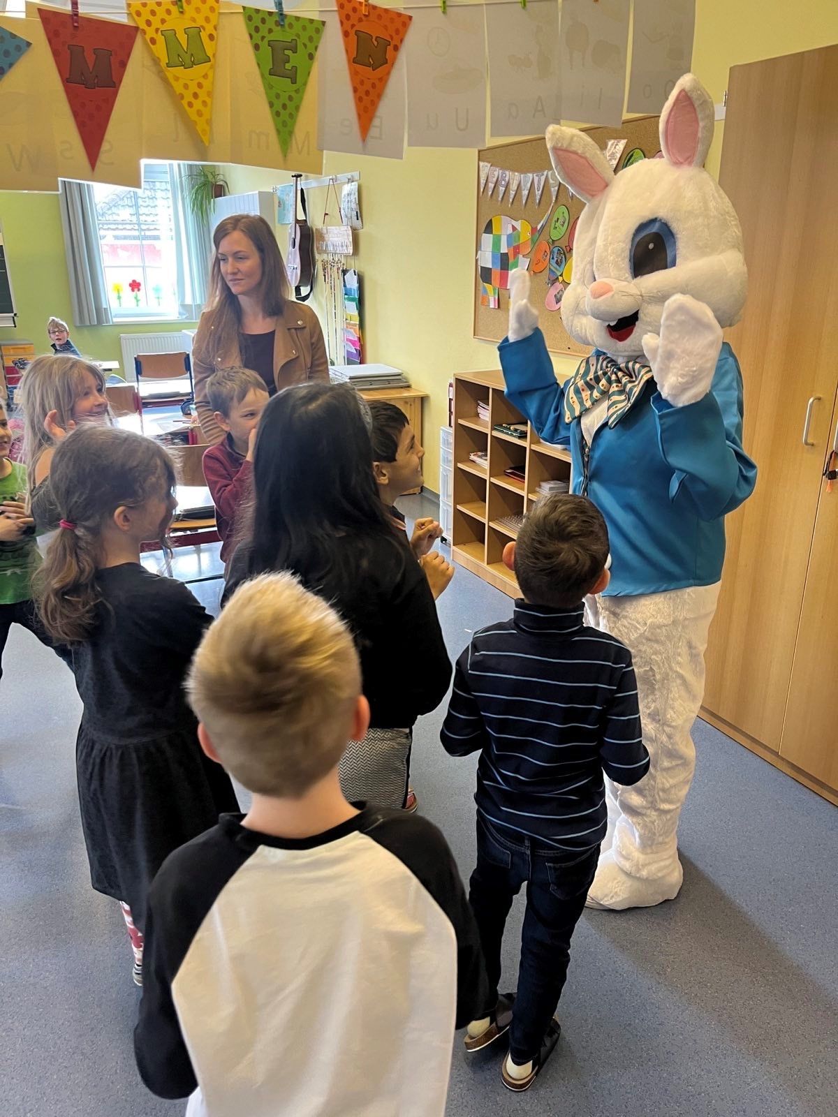 Weil es dem Osterhasen in der Schule so gut gefallen hat, wird er bestimmt im nächsten Jahr wieder zu Besuch kommen.