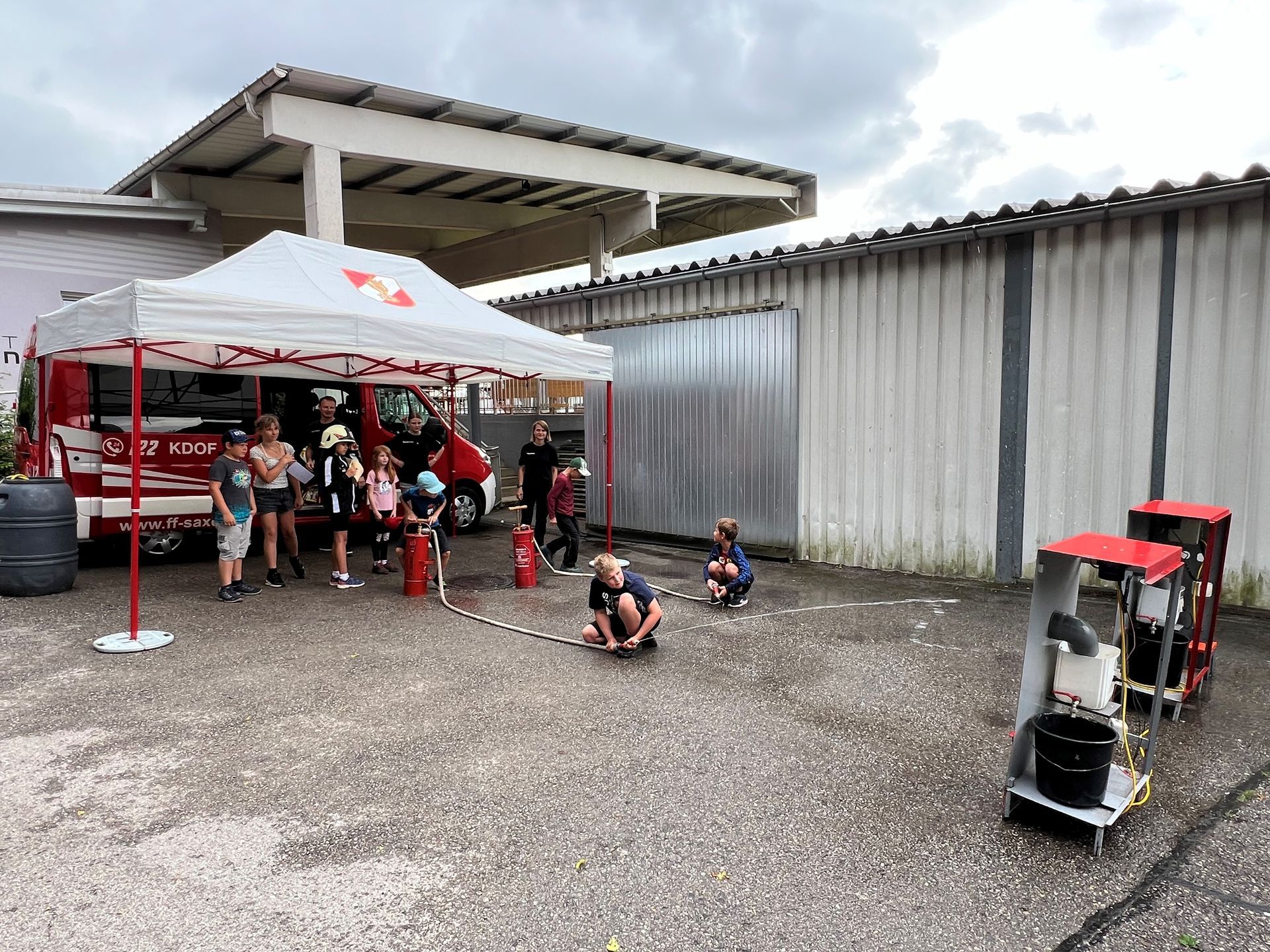 Besonders beliebt war auch die Station der Feuerwehr Saxen, an der sich die Kinder an der Feuerwehrpumpe unter Beweis stellen konnten.