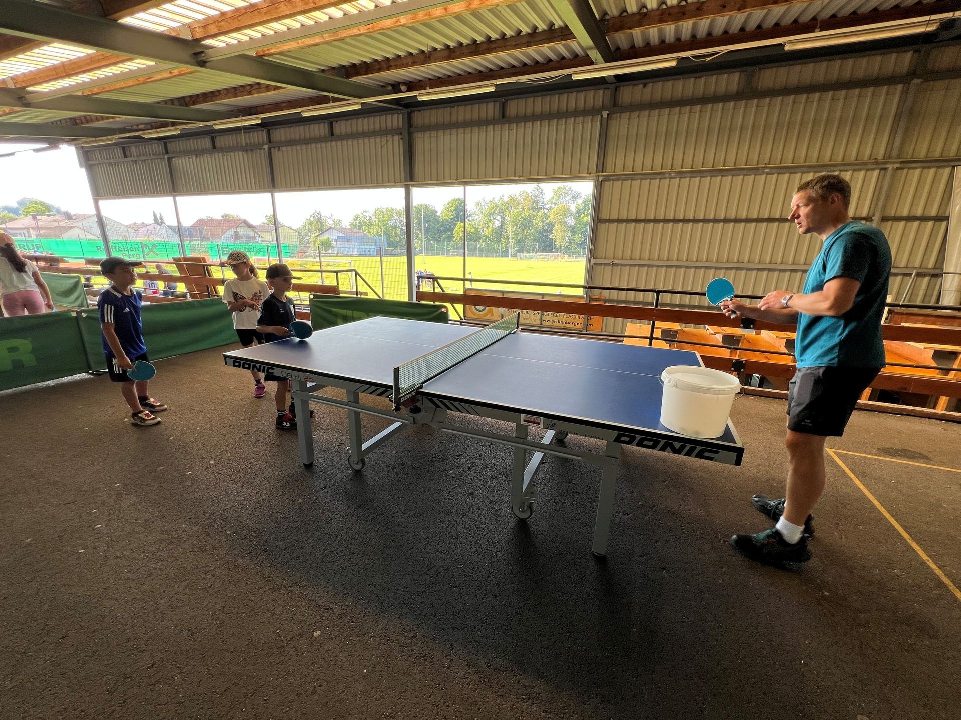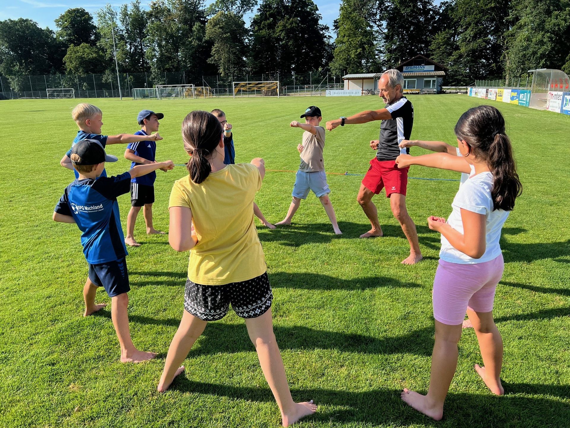 Dankenswerterweise haben sich wieder viele Trainer für die Kinder Zeit genommen, so konnten Taekwondo, Fußball, Tischtennis, Feuerwehr- Sport, Tennis, Stockschießen, Cornhole und Federball ausprobiert werden.