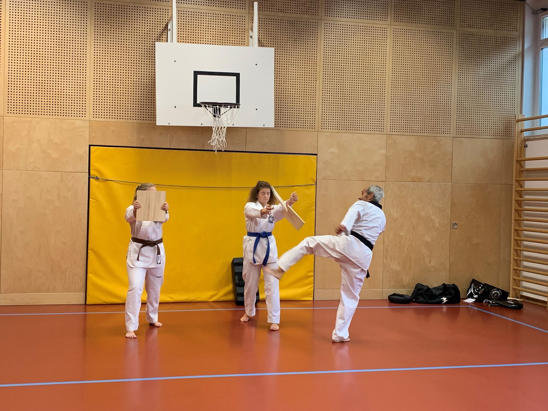Durch gekonnte Tritte wurden sogar Holzplatten gespalten.