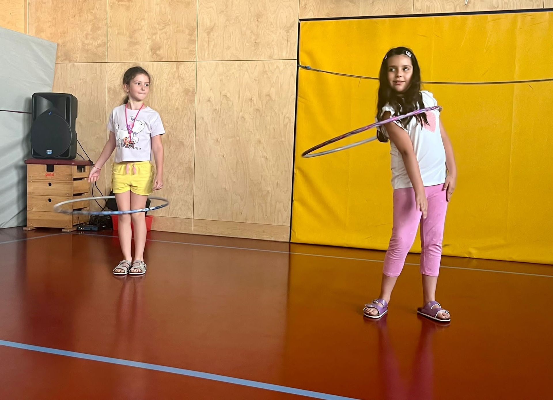 Susanne sang uns spielte mit ihrer Ziehharmonika, Amelie zeigte uns gleich drei Beiträge (Gesang, Saxophon und Taekwondo), Elisa und Sara führten Kunststücke mit dem Reifen vor, Jakob und Elias erzählten Witze und Jonas fuhr gekonnt mit dem Hoverboard.