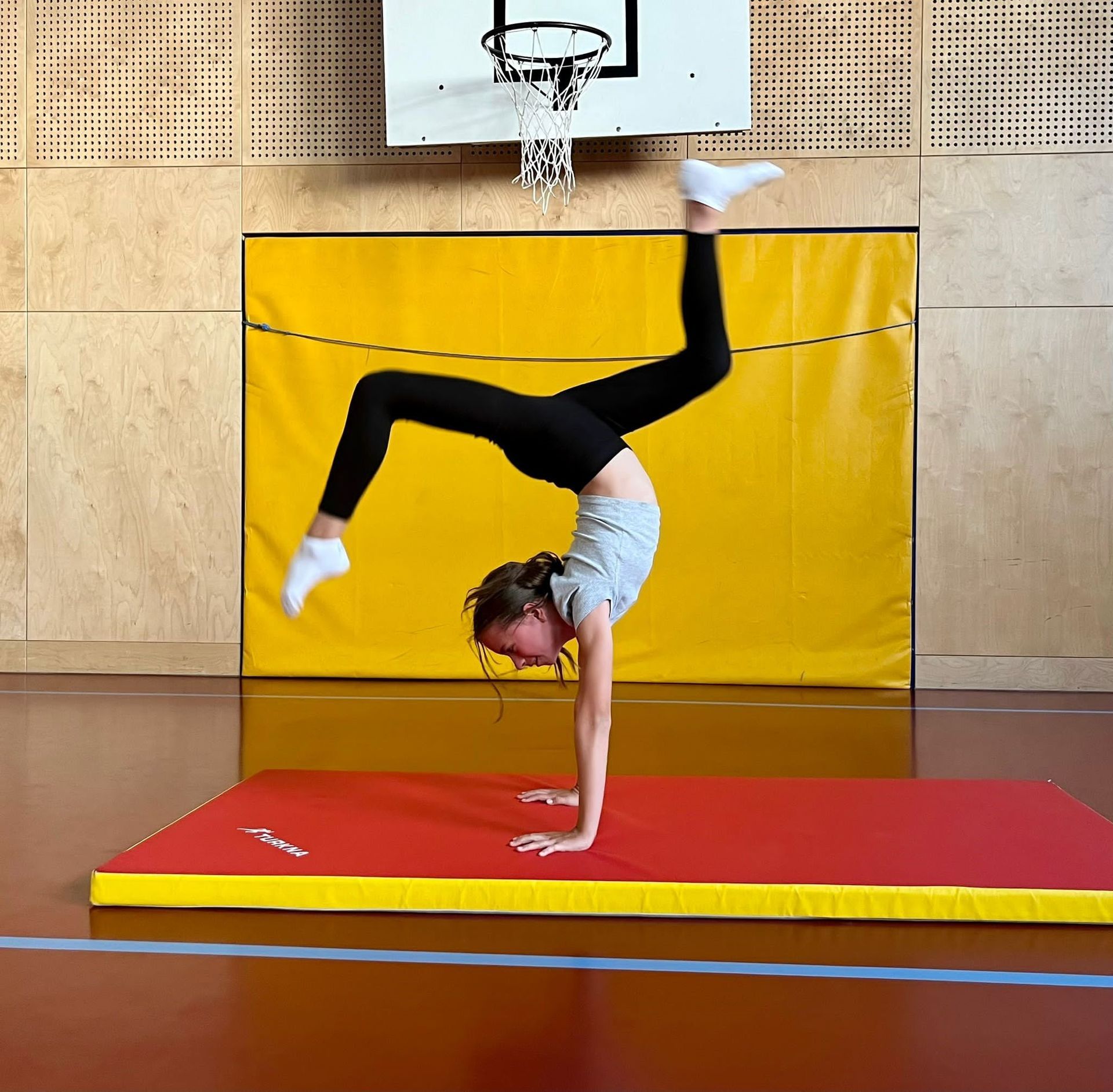 Jana zeigte ihr Bewegungstalent mit spektakulären Rädern und Überschlägen. Die Partnerübungen mit Felix waren ebenfalls sehenswert.