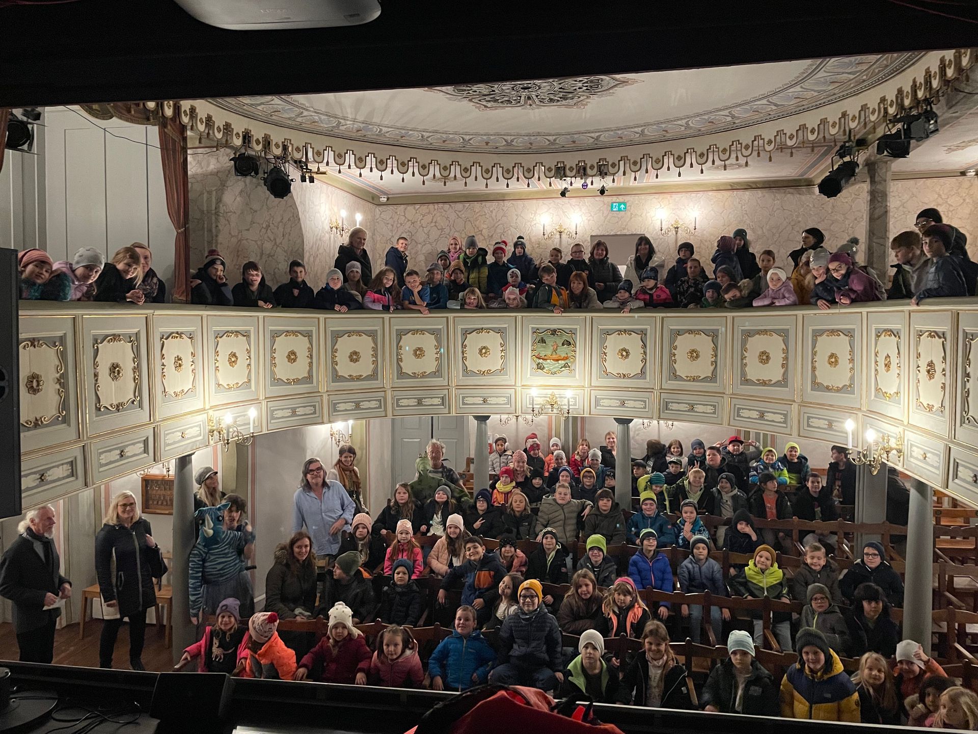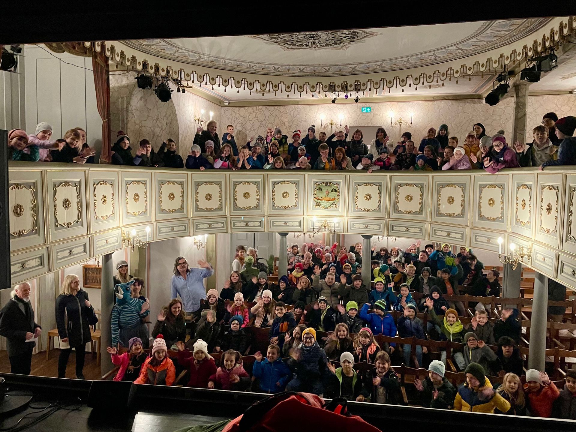 Am Freitag, 1.März 2024, fuhren alle Klassen der VS Saxen mit dem Zug nach Grein, um im neu renovierten "alten Theater" in Grein das Musical "Almas Welt" zu besuchen.