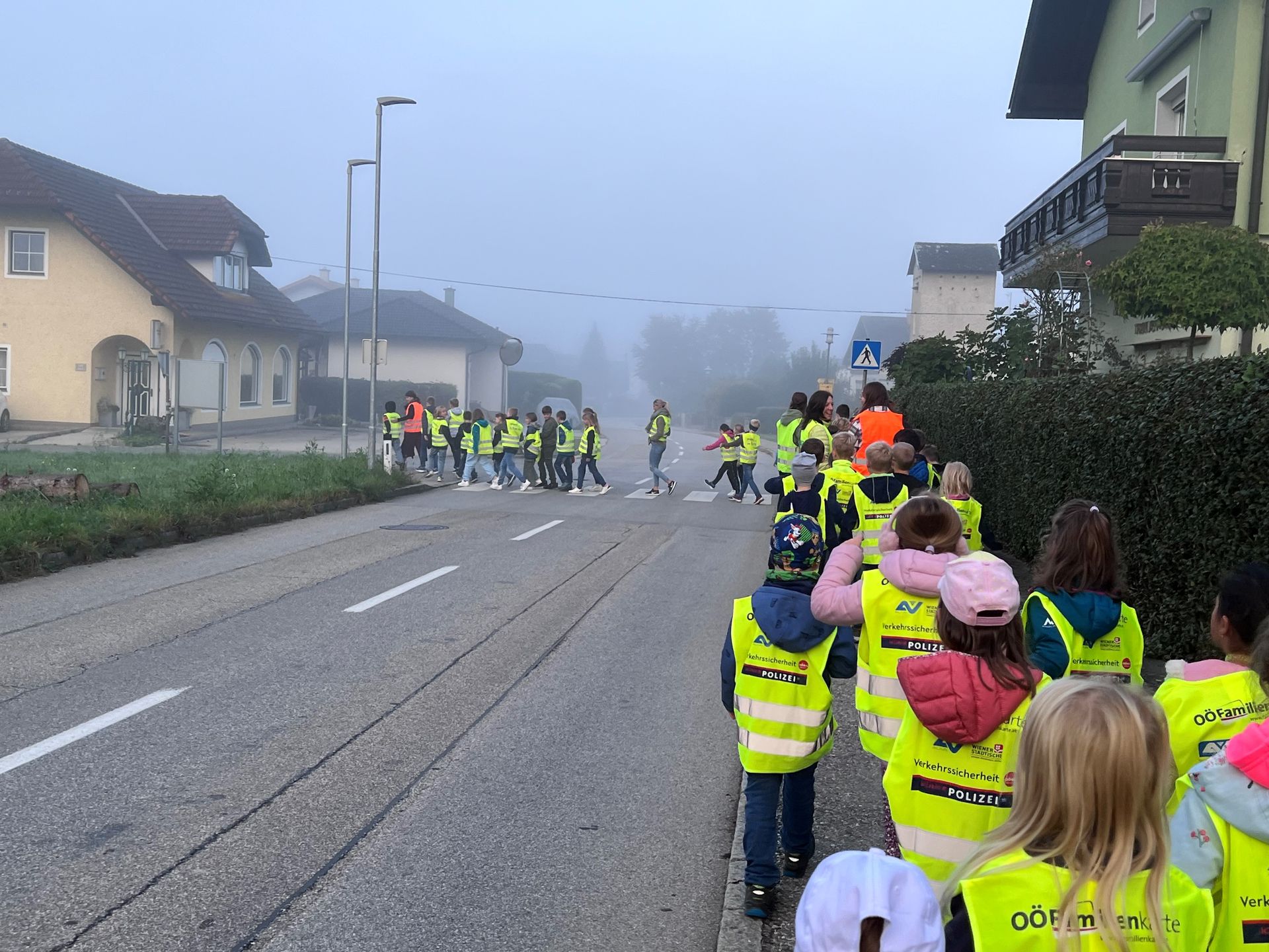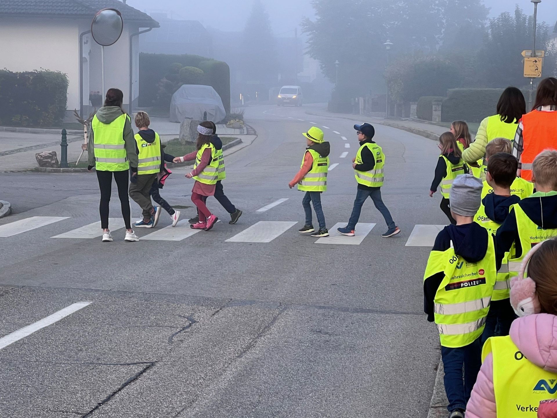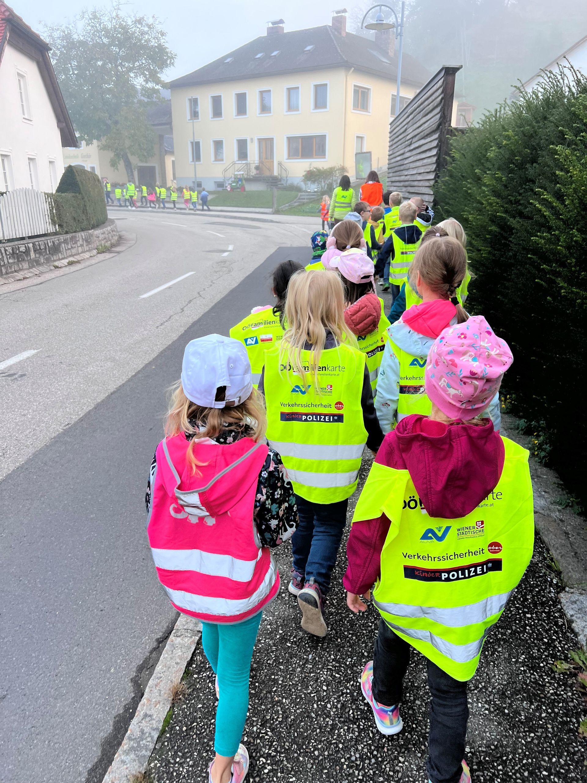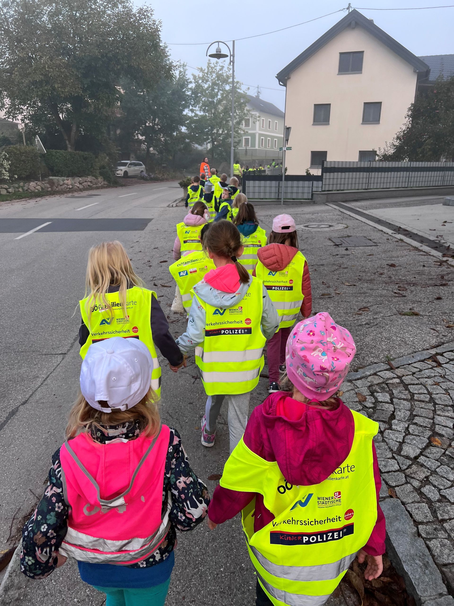 Die Bedeutsamkeit sich "gut sichtbar" zu machen konnten alle Kinder an diesem nebeligen Tag gut verstehen. Auch auf den Fotos ist dies sehr gut zu erkennen.