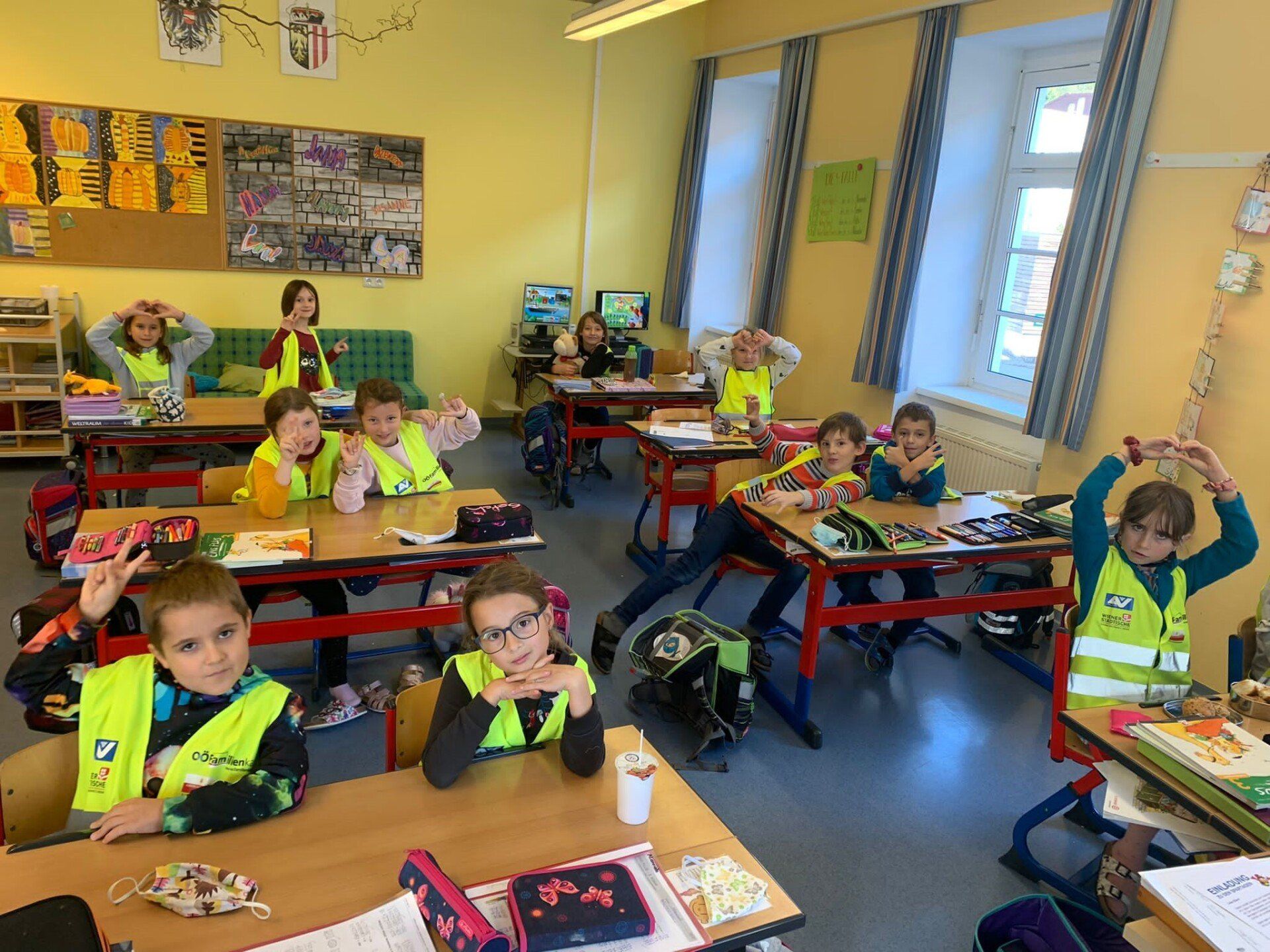 Die Warnweste soll natürlich täglich getragen werden, damit die Kinder am Schulweg gut sichtbar sind und somit sicher in die Schule kommen.