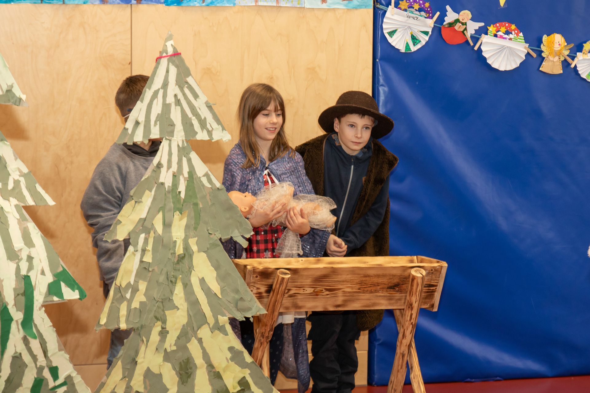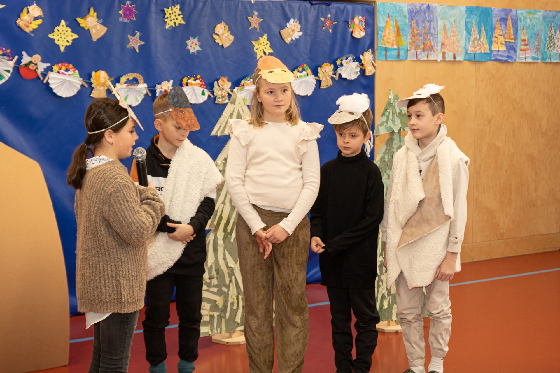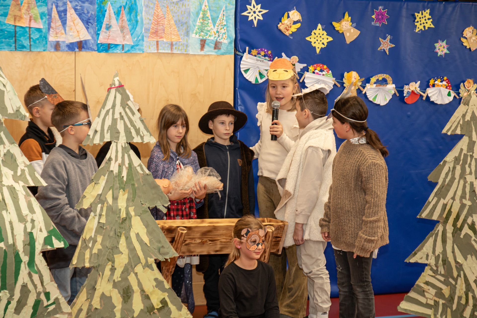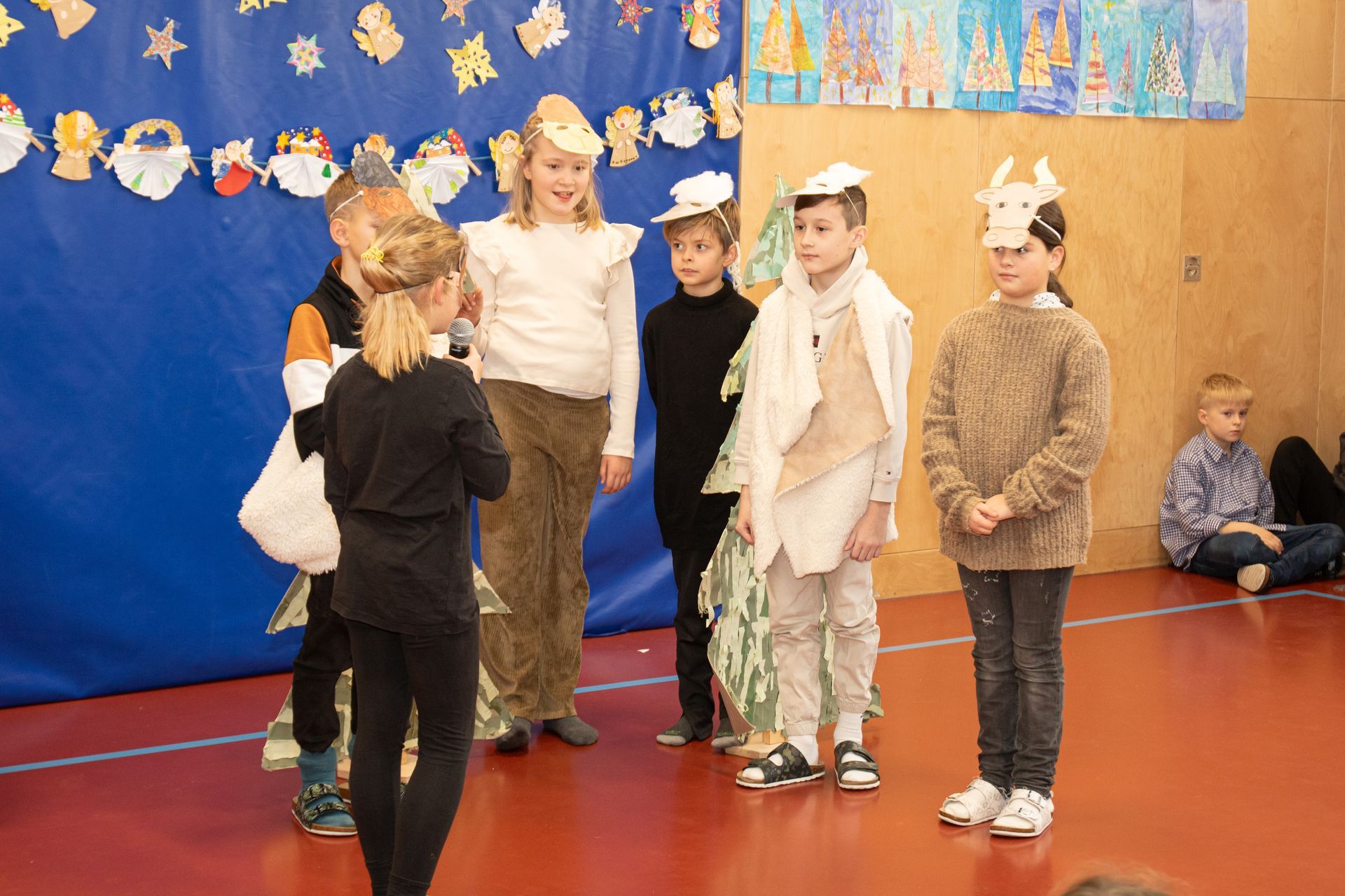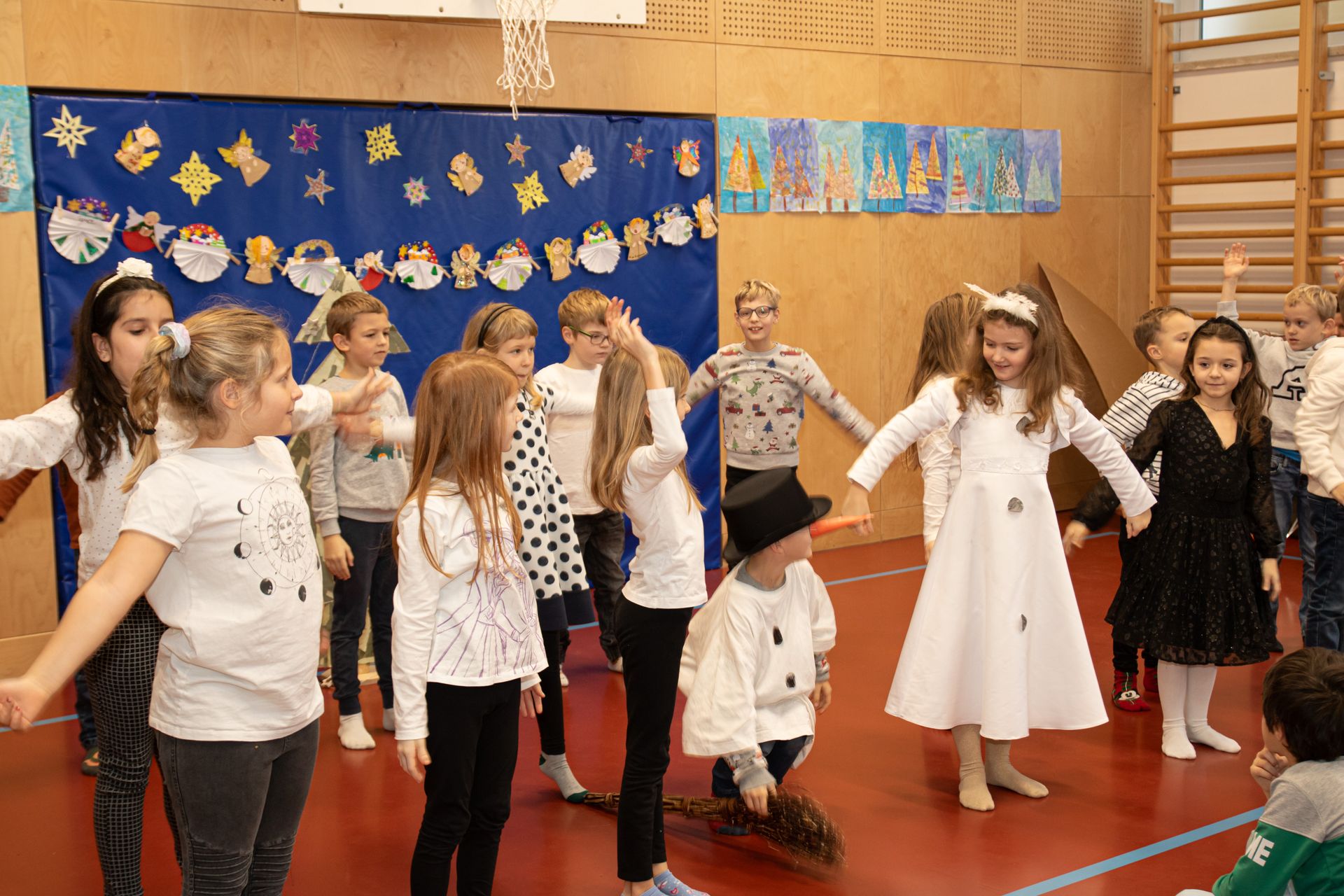 Die Kinder der 3. und 4. Klasse zeigten das Mini- Musical "Ein Dorf feiert Weihnachten", die 1. Klasse sang "In der Weihnachtsbäckerei", die 2. Klasse tanzte zum Schneemannlied. Das Hirtenspiel zeigte die 3. Klasse.