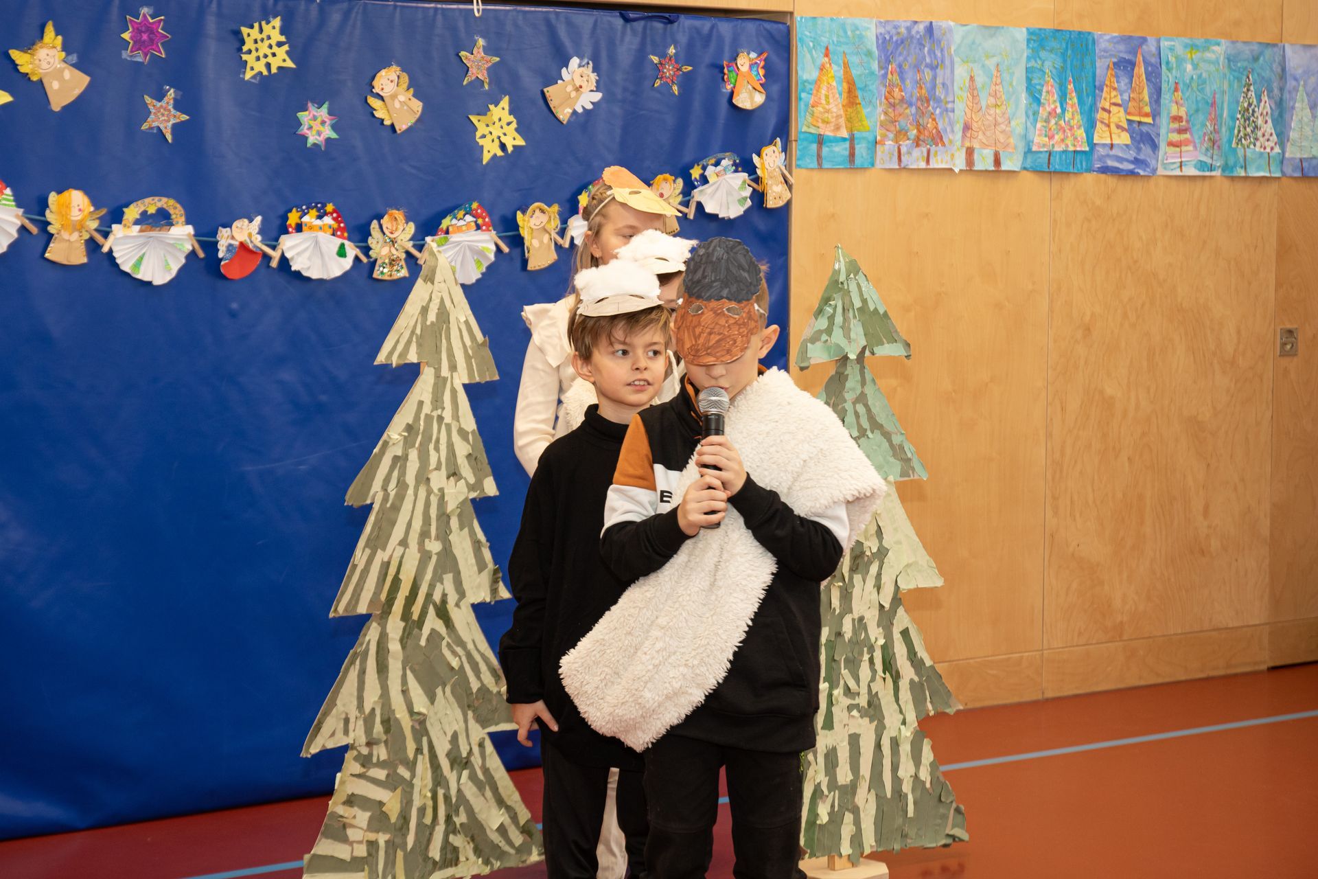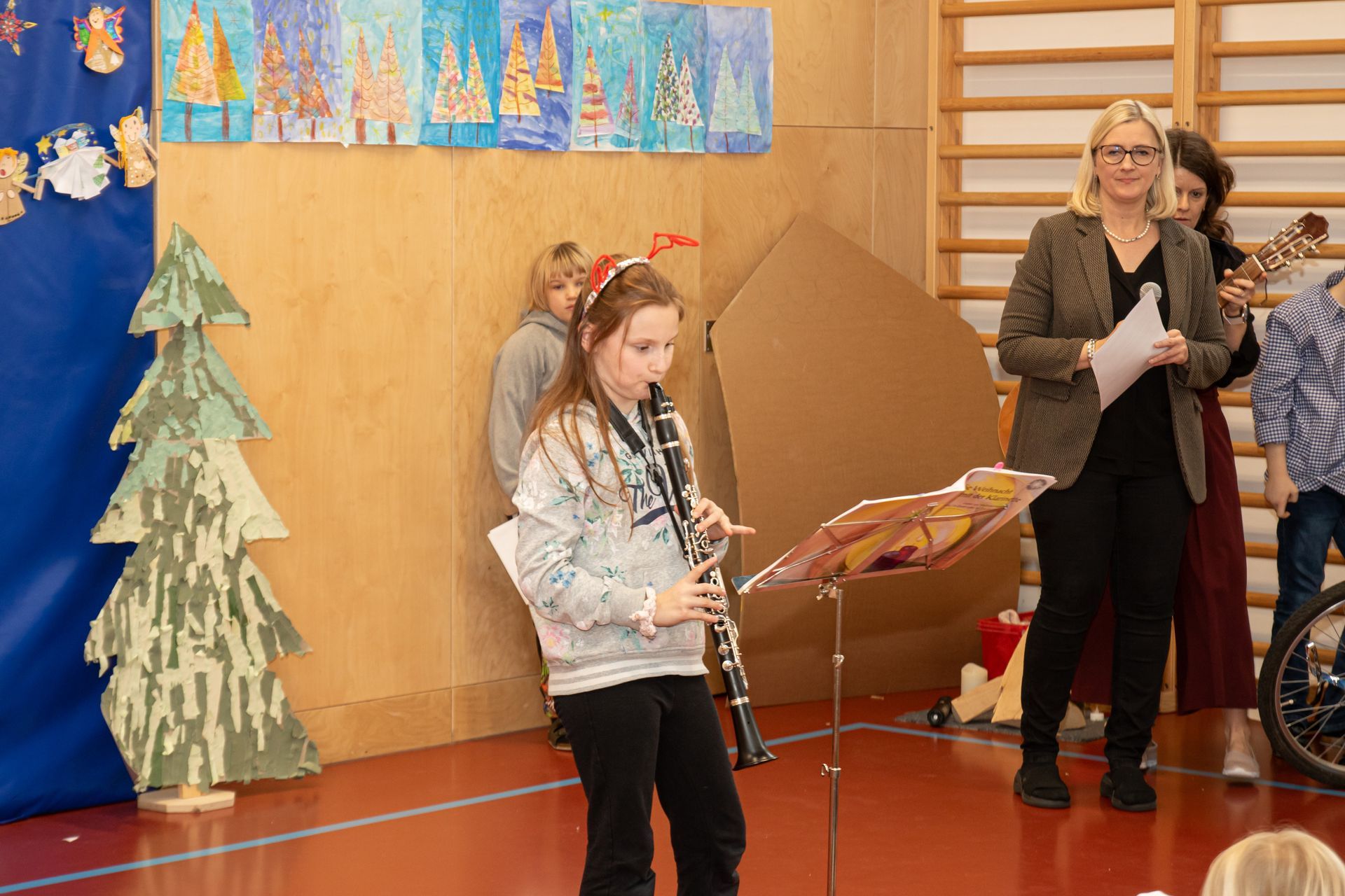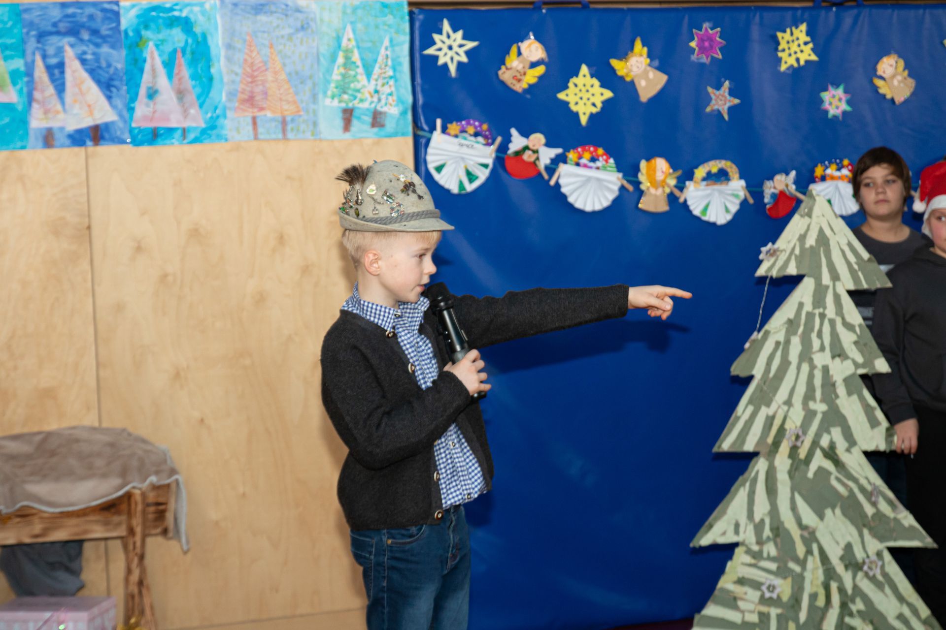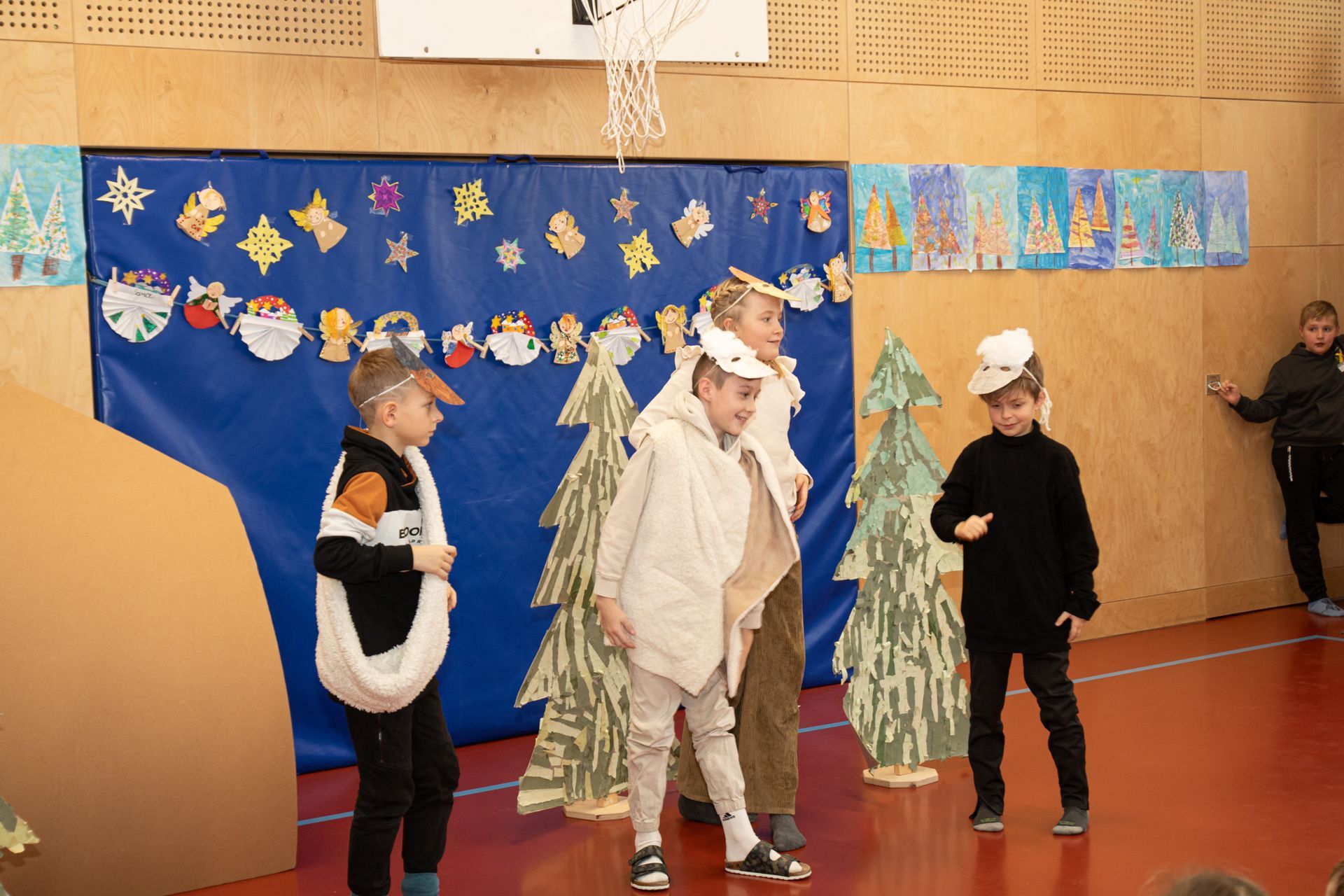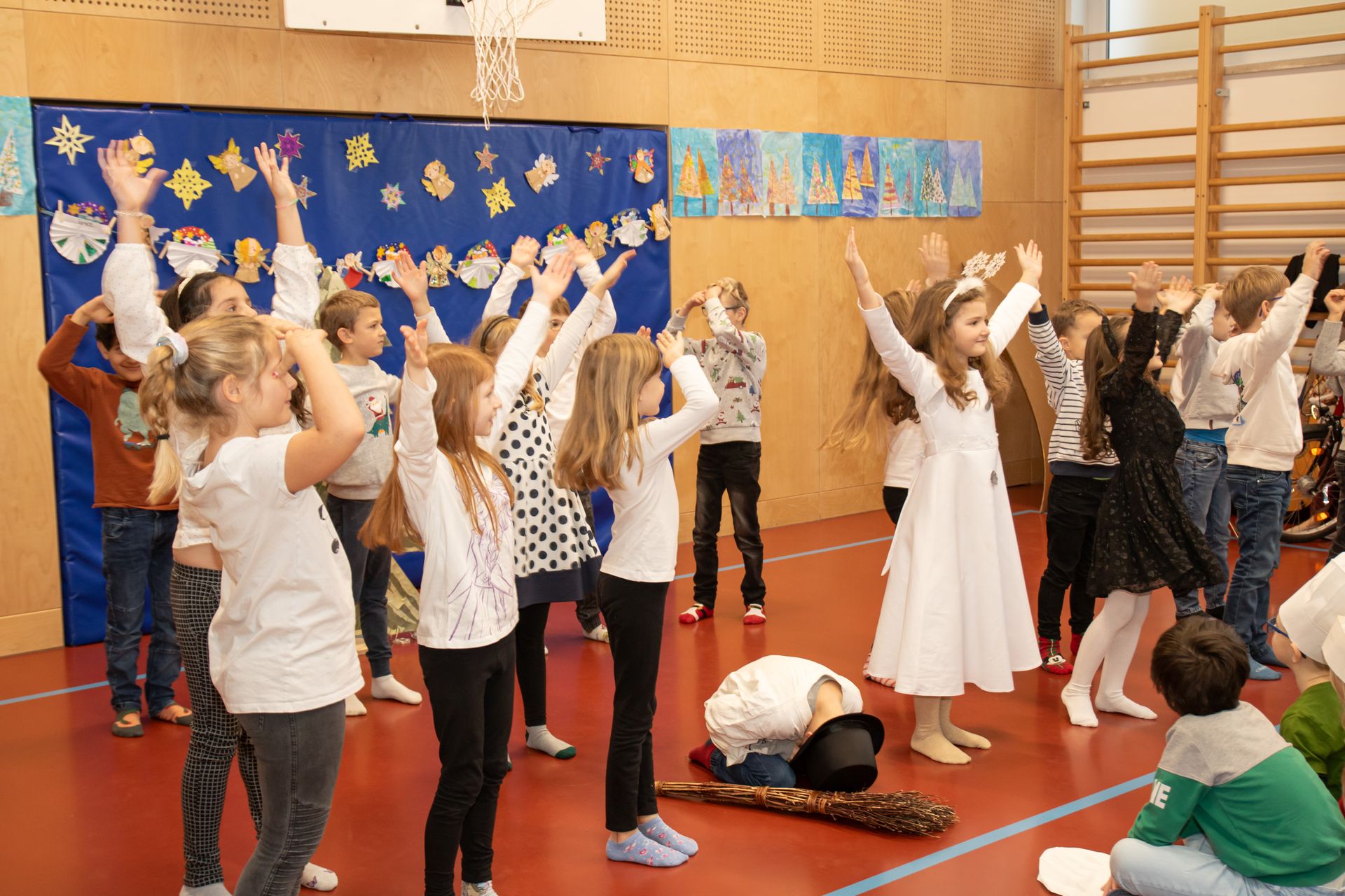 Die Kinder der 3. und 4. Klasse zeigten das Mini- Musical "Ein Dorf feiert Weihnachten", die 1. Klasse sang "In der Weihnachtsbäckerei", die 2. Klasse tanzte zum Schneemannlied. Das Hirtenspiel zeigte die 3. Klasse.