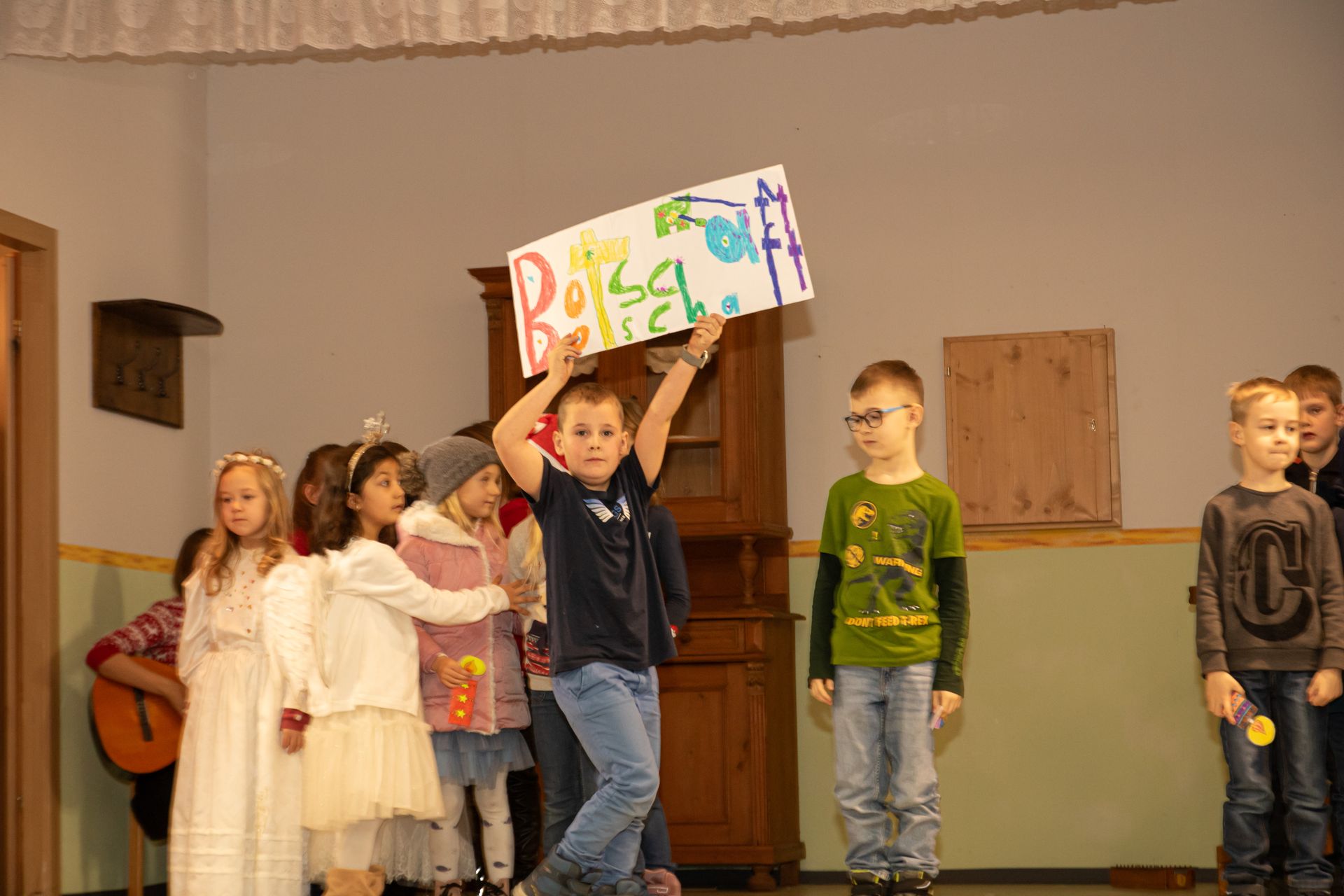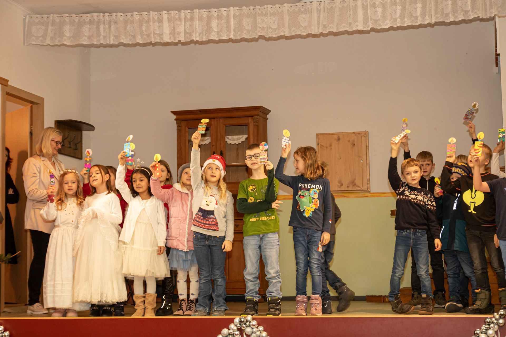 Die Schülerlotsen und Lesepatinnen waren die Ehrengäste der Kinder, sie erhielten als Dank einen selbst gebastelten Krippenanhänger.