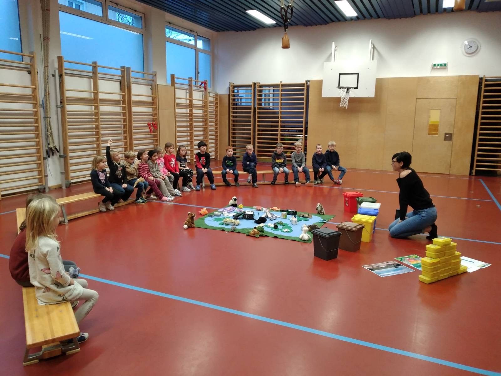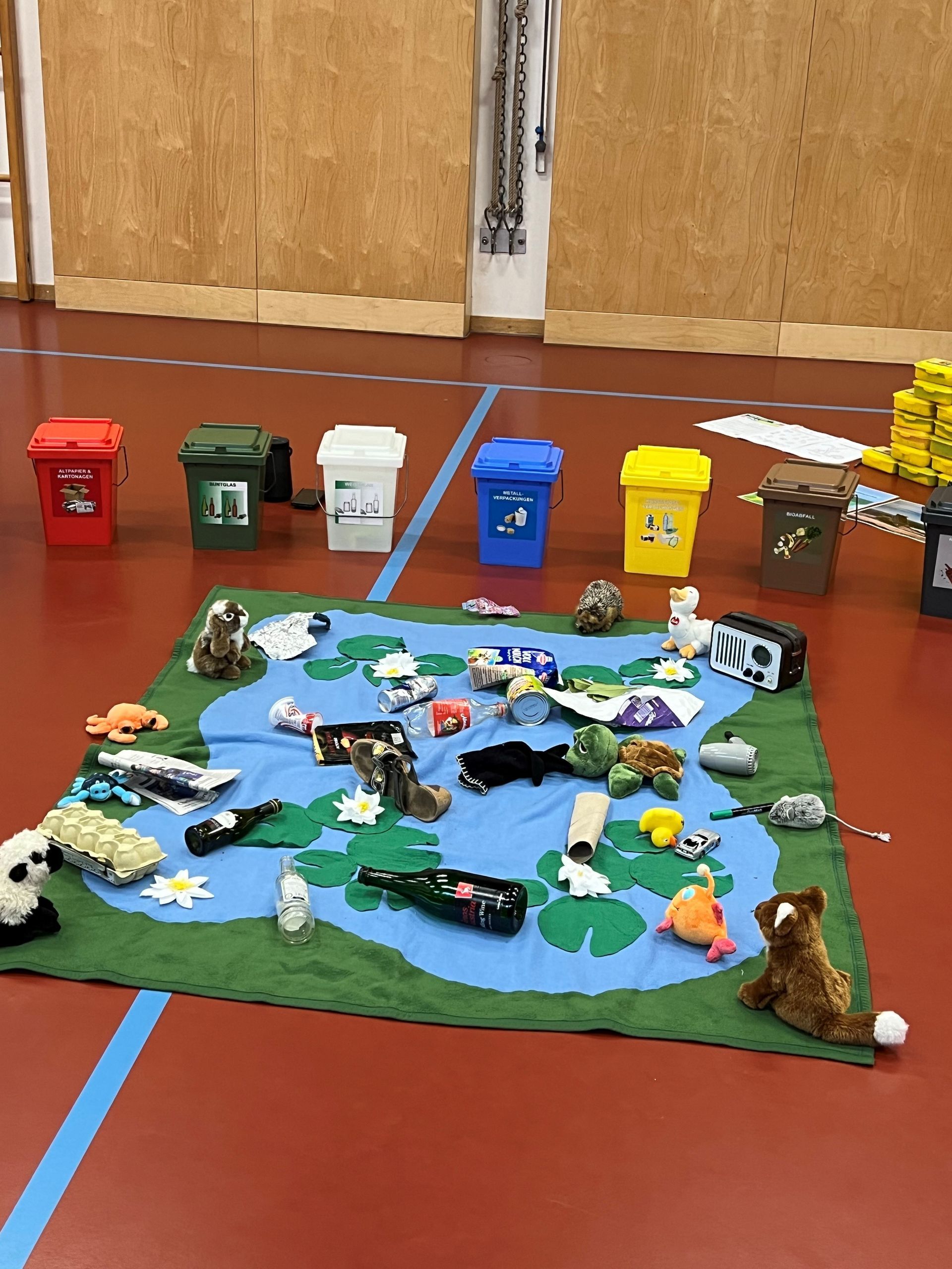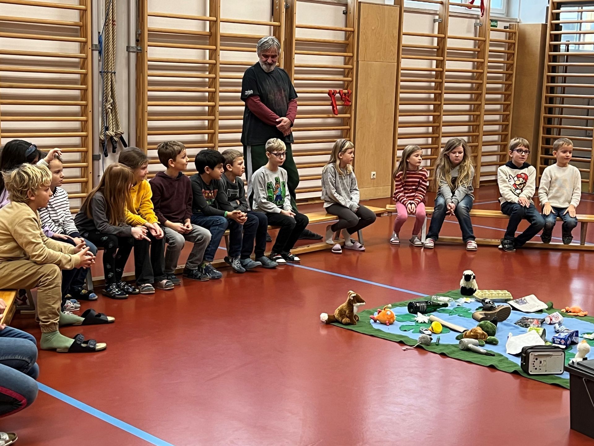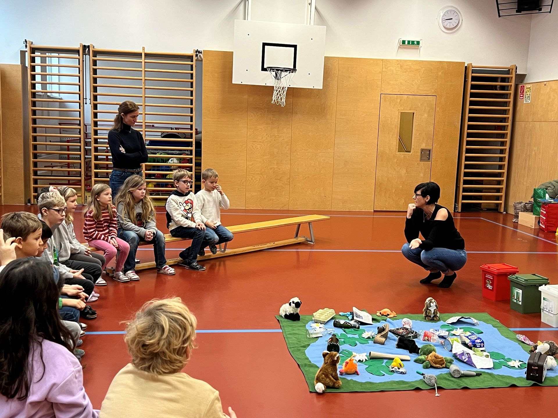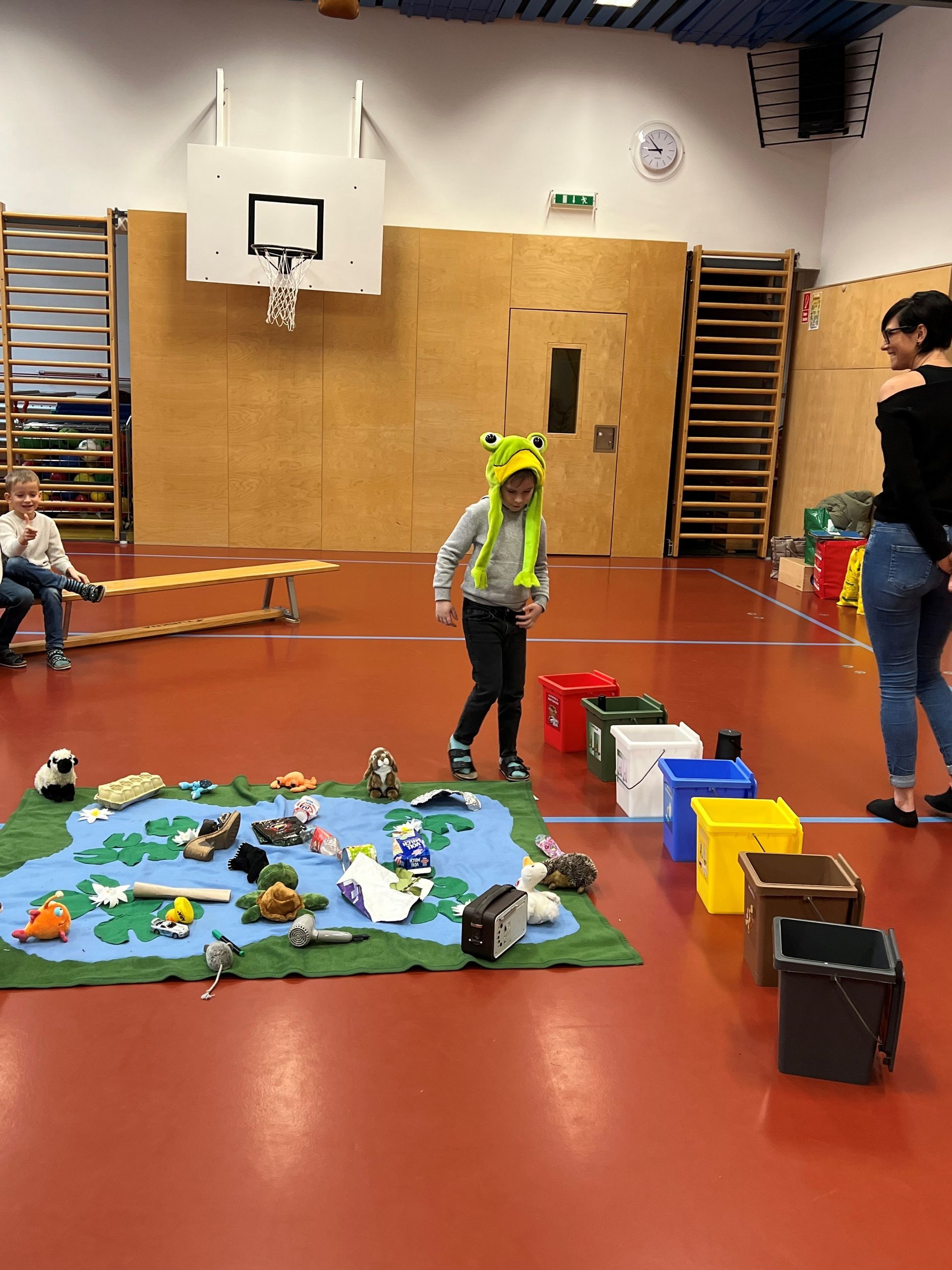 Damit die Kinder richtige Mülltrennung auf spielerische Weise erlernen, fand eine Workshop des Abfallverbandes Perg am Montag. 11.12.23 an der VS Saxen statt.
