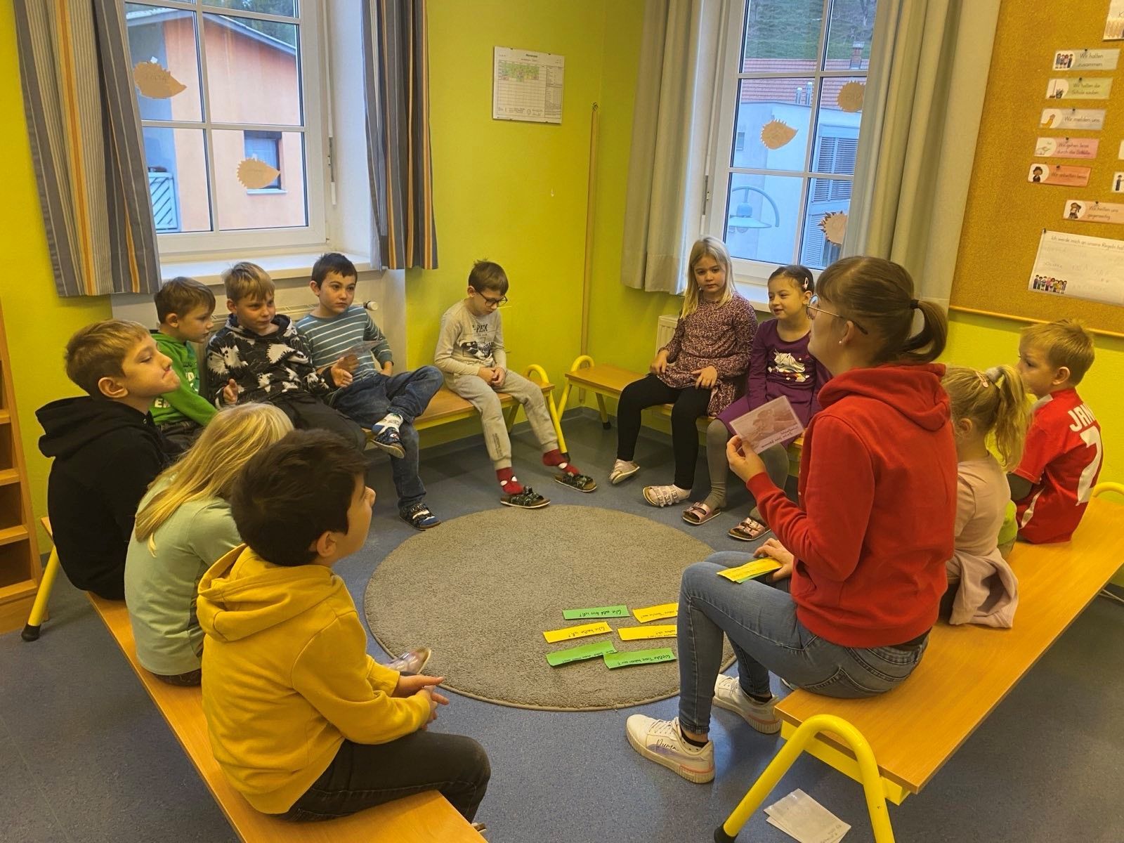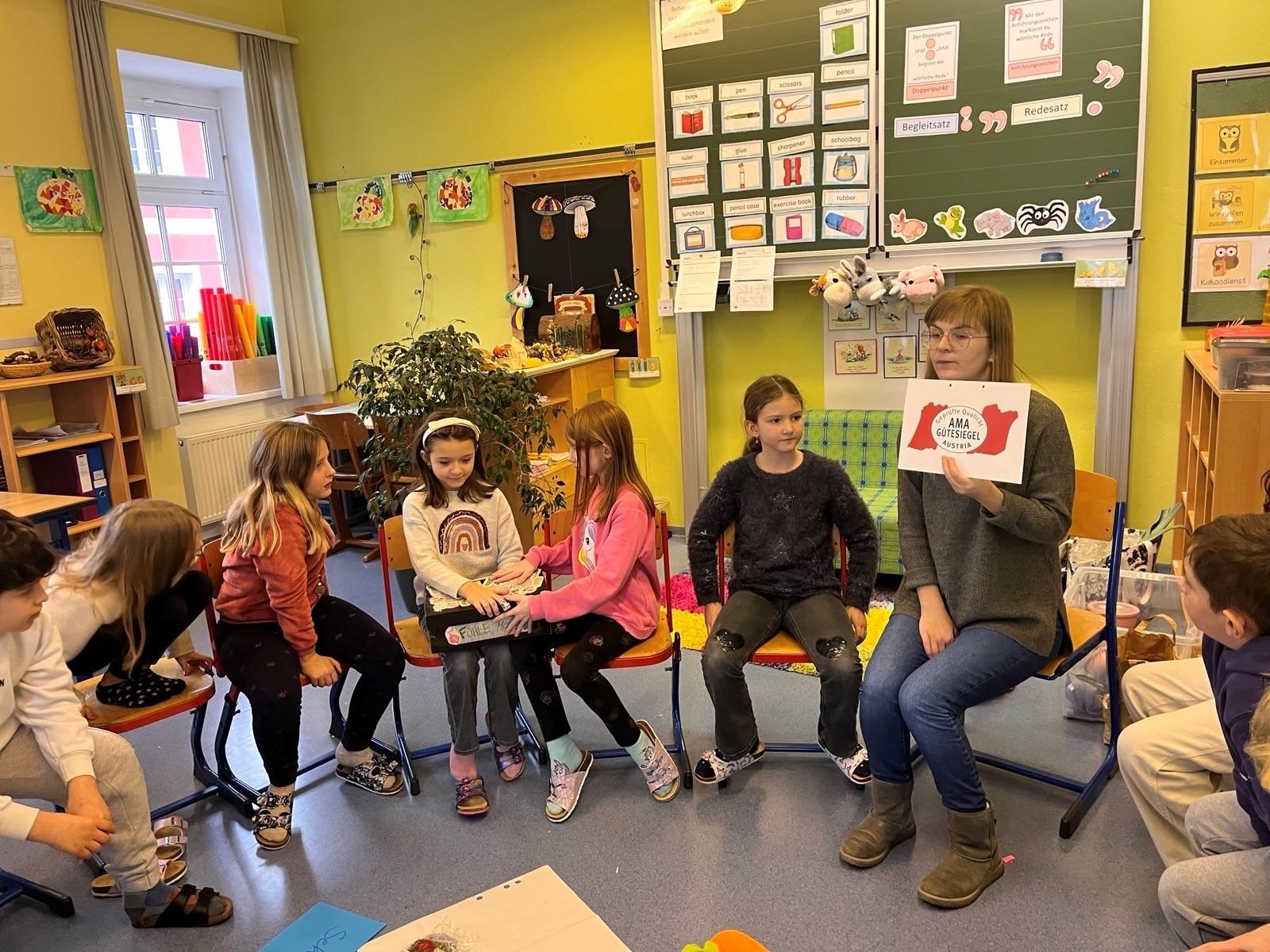 Am Dienstag, 12.11.2024 lernten die Kinder der 1. und 2. Klasse von der Seminarbäuerin Frau Zeiml, wie man am besten mit Köpfchen einkauft.