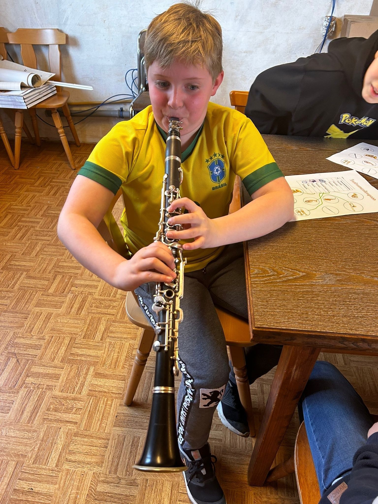 In drei Gruppen konnten die Holzblasinstrumente, das Schlagwerk und die Blechblasinstrumente ausprobiert werden.
