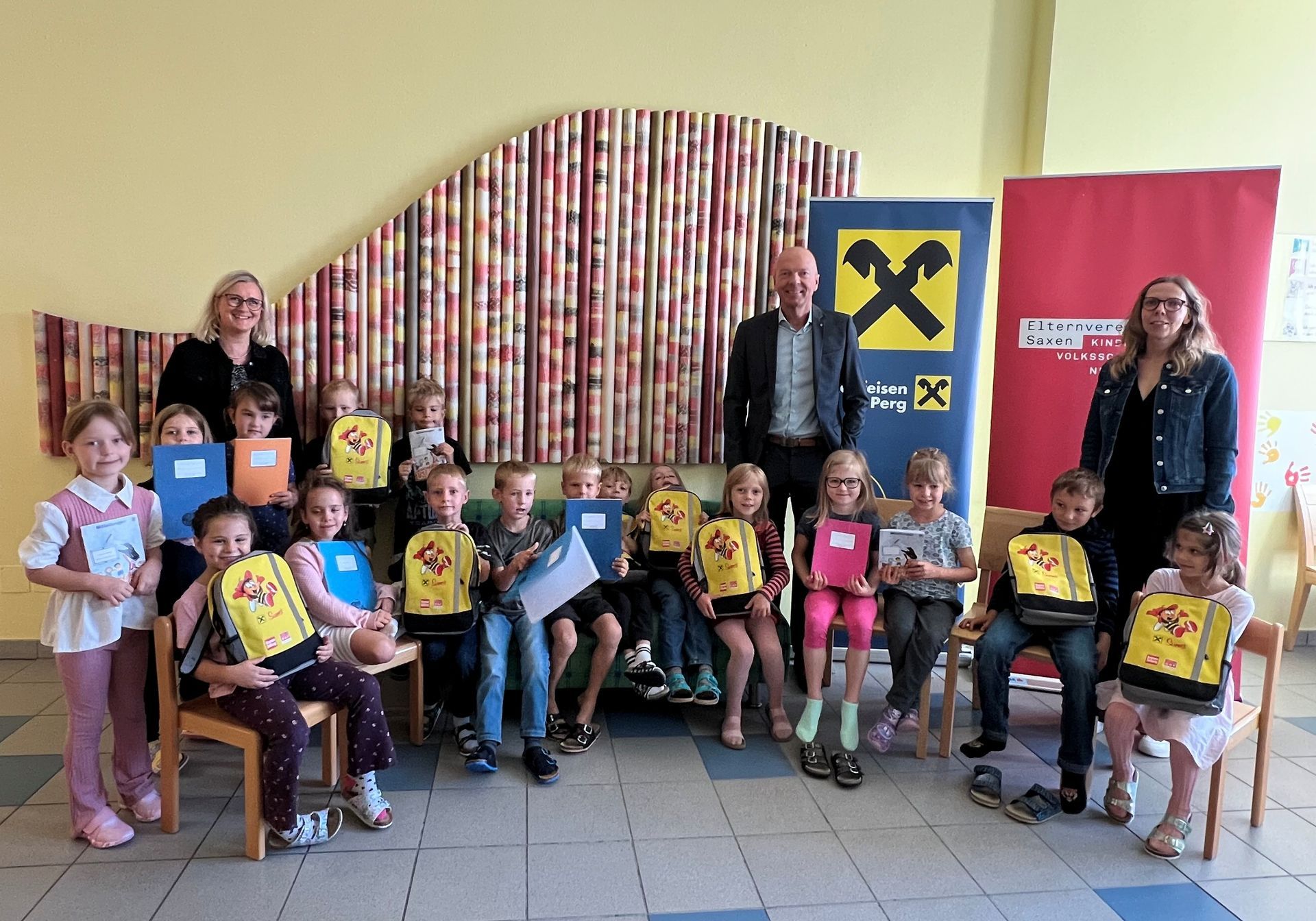 Zu Schulbeginn wurden die Kinder und Eltern der VS Saxen vom Elternverein Saxen mit einer 3€ Spende pro Kind bezüglich Heftkosten unterstützt. Außerdem bedanken wir uns herzlich bei Herrn Lumetsberger der Raiffeisenbank, der ebenfalls den Elternverein mit der Finazierung des Mitteilungsheftes unterstütze.
