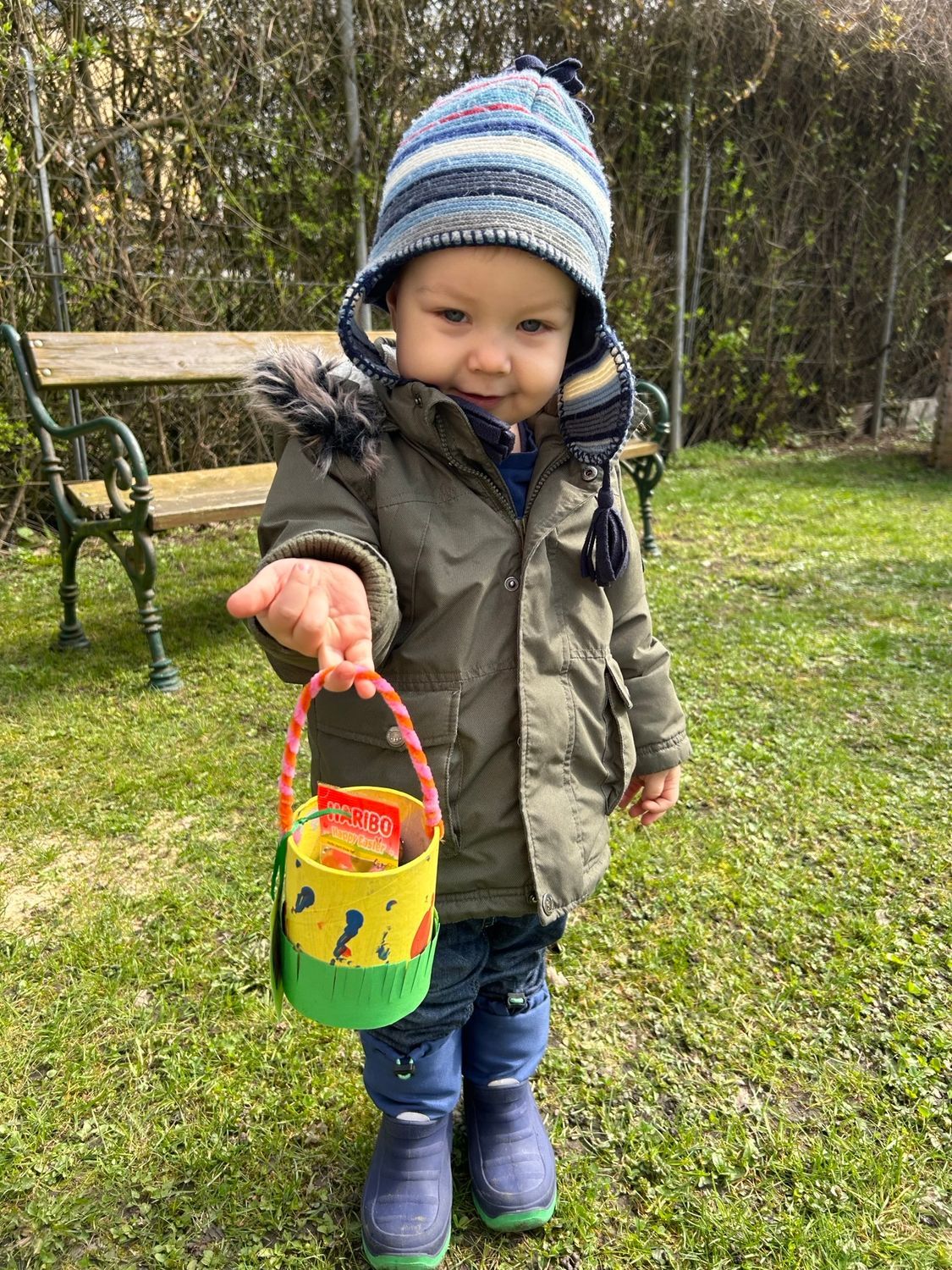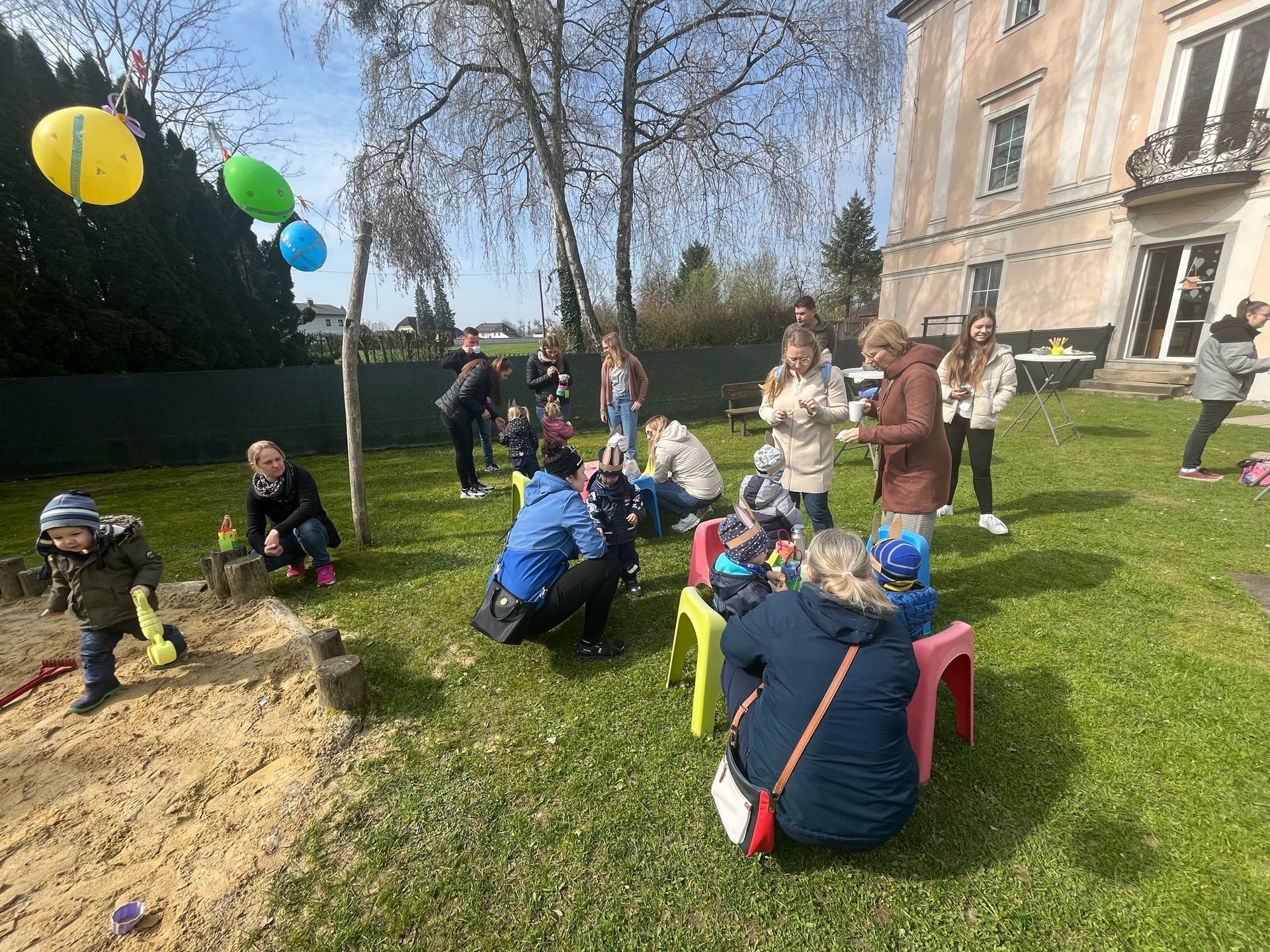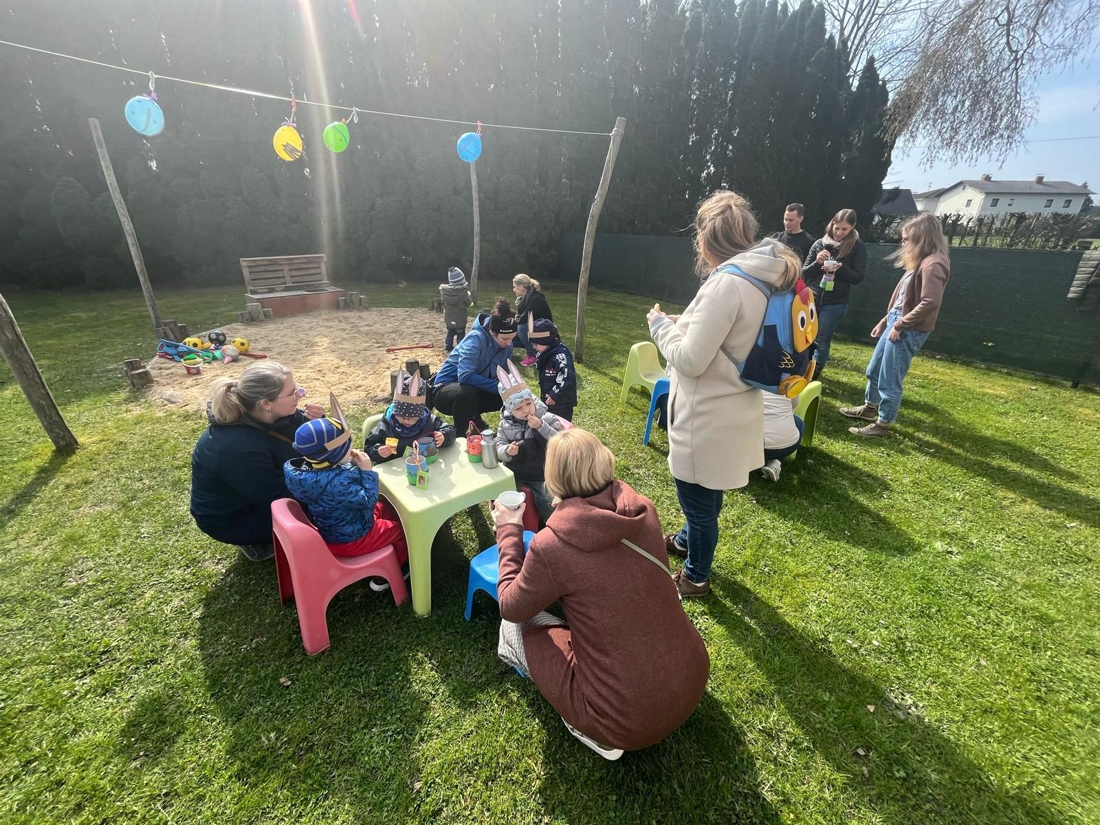 Die Krabbelstube lud in diesem Jahr erstmals alle Familien zum gemeinsamen Osternesterl-Suchen mit anschließender gemütlicher Osterjause ein. Bei perfektem Frühlingswetter präsentierten wir den Eltern und Großeltern unsere Osterlieder, bevor die gemeinsame Nesterl-Suche im Garten der Krabbelstube losging. Die Aufregung war groß - der Osterhase war da!