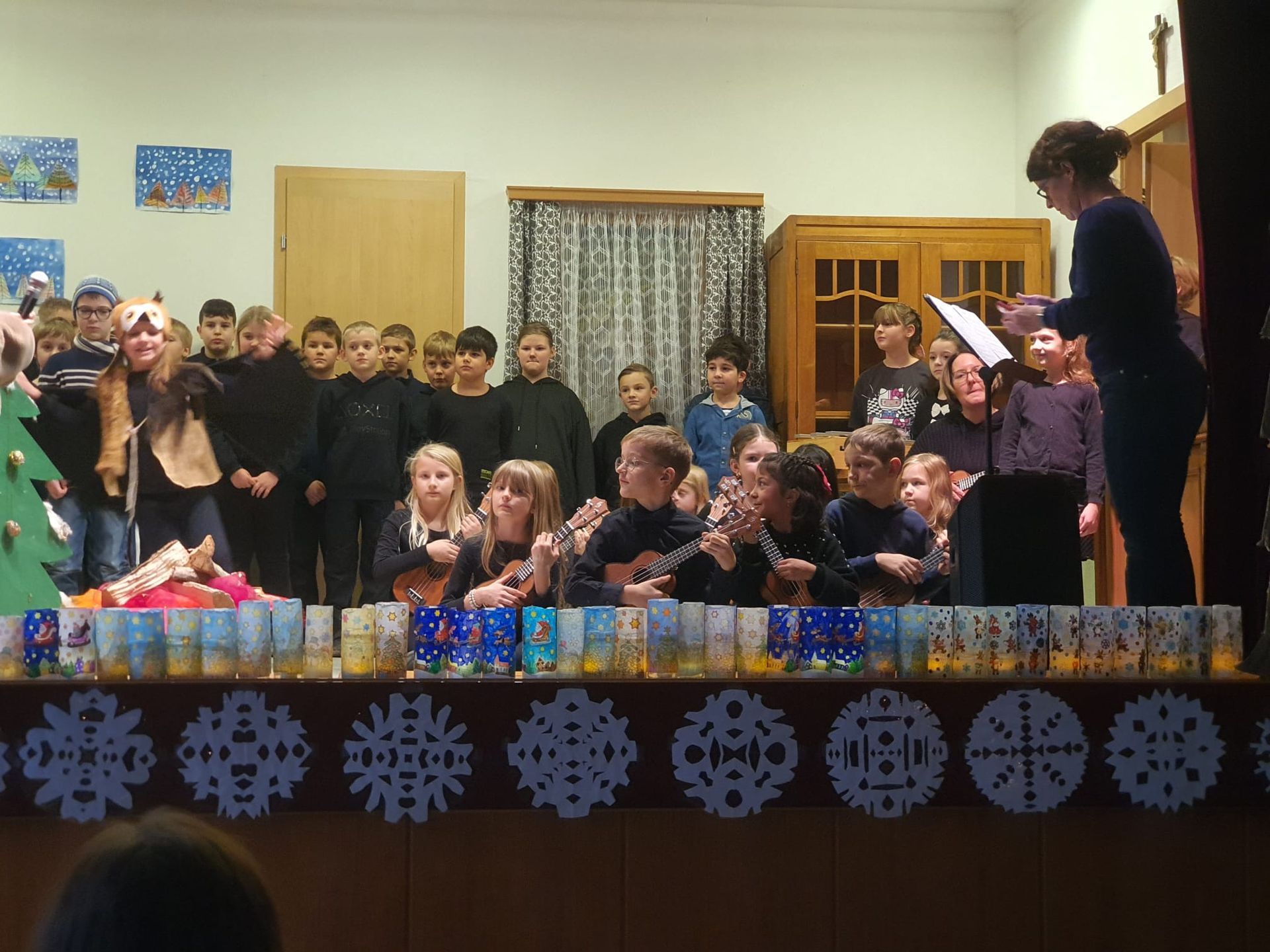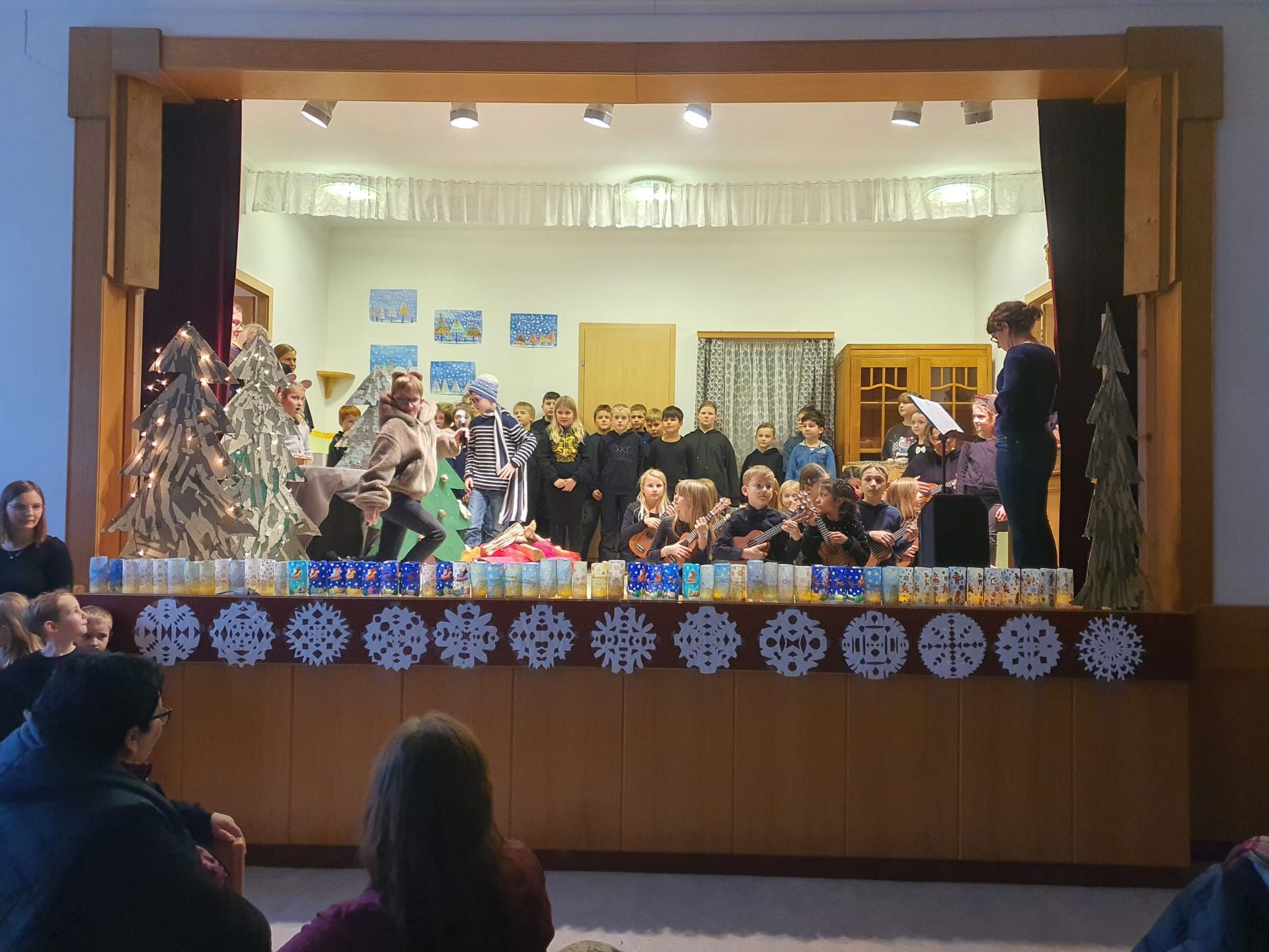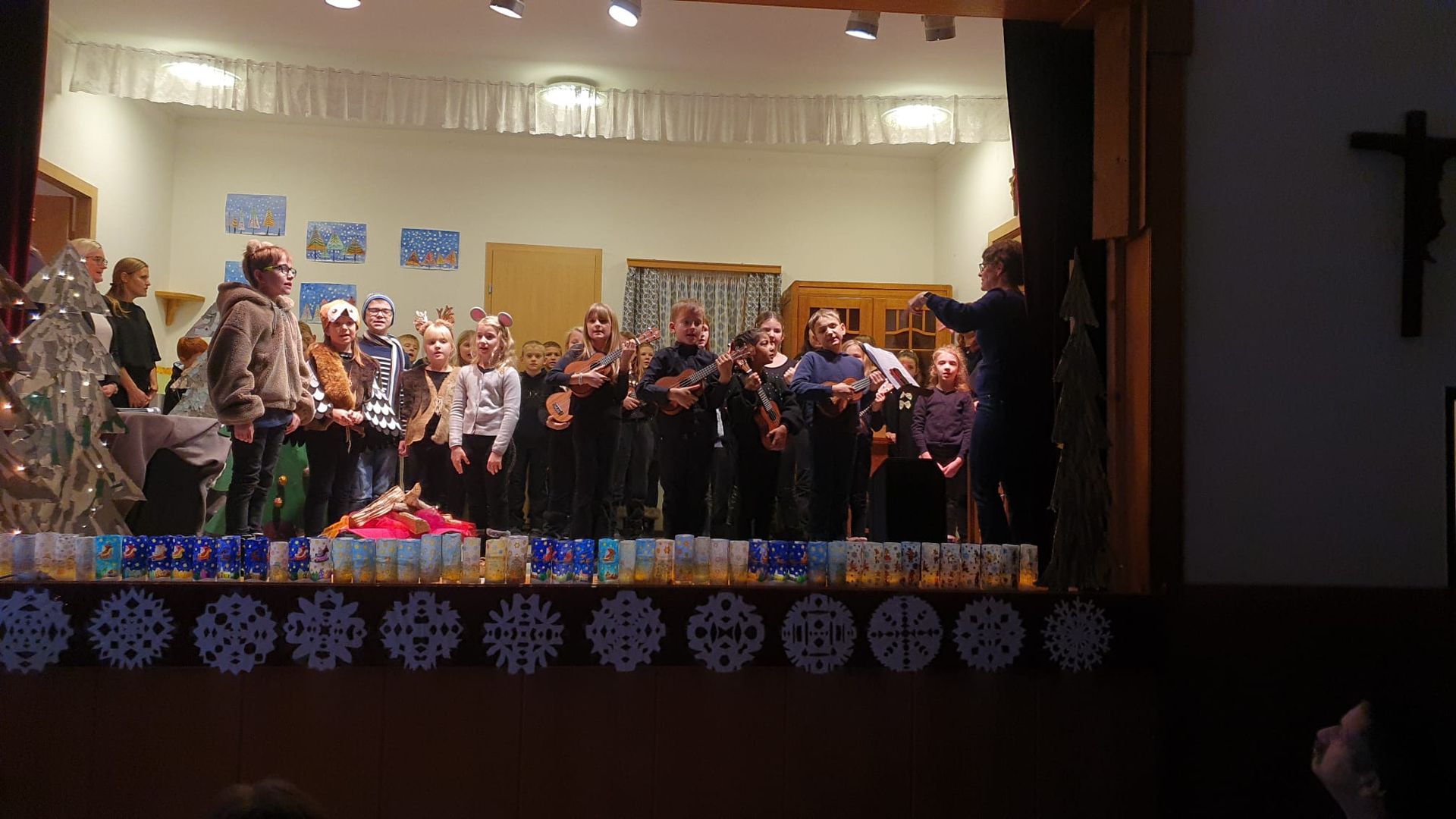 Nach jeder Szene des Theaterstückes "Der kleine Bär und das Weihnachtswunder" war ein traditionelles Weihnachtslied zu hören. Die Ukulele- Gruppe begleitete Lieder wie "Kling, Glöckchen klingelingeling" und "Leise rieselt der Schnee".