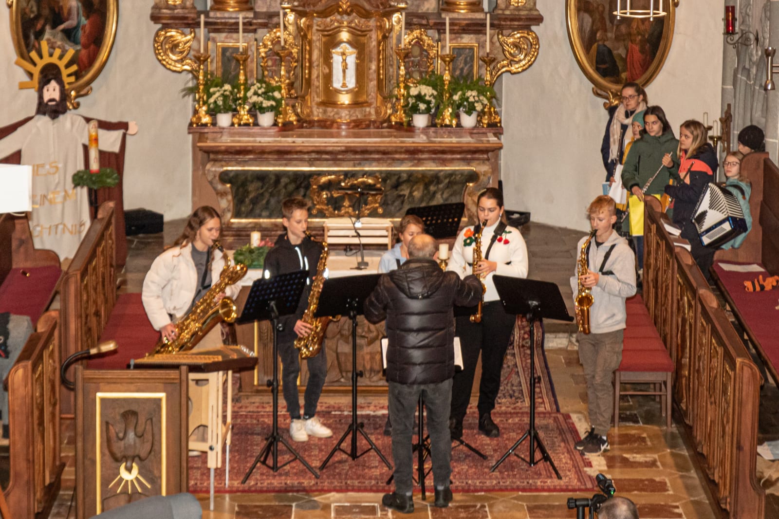 Die Pfarre Saxen veranstaltete am 26. November 2022 einen Adventmarkt rund um die Kirche. Wir durften die Adventkranzweihe mit einem Hirtenspiel und musikalischen Beiträgen von unseren Ensembles bereichern.