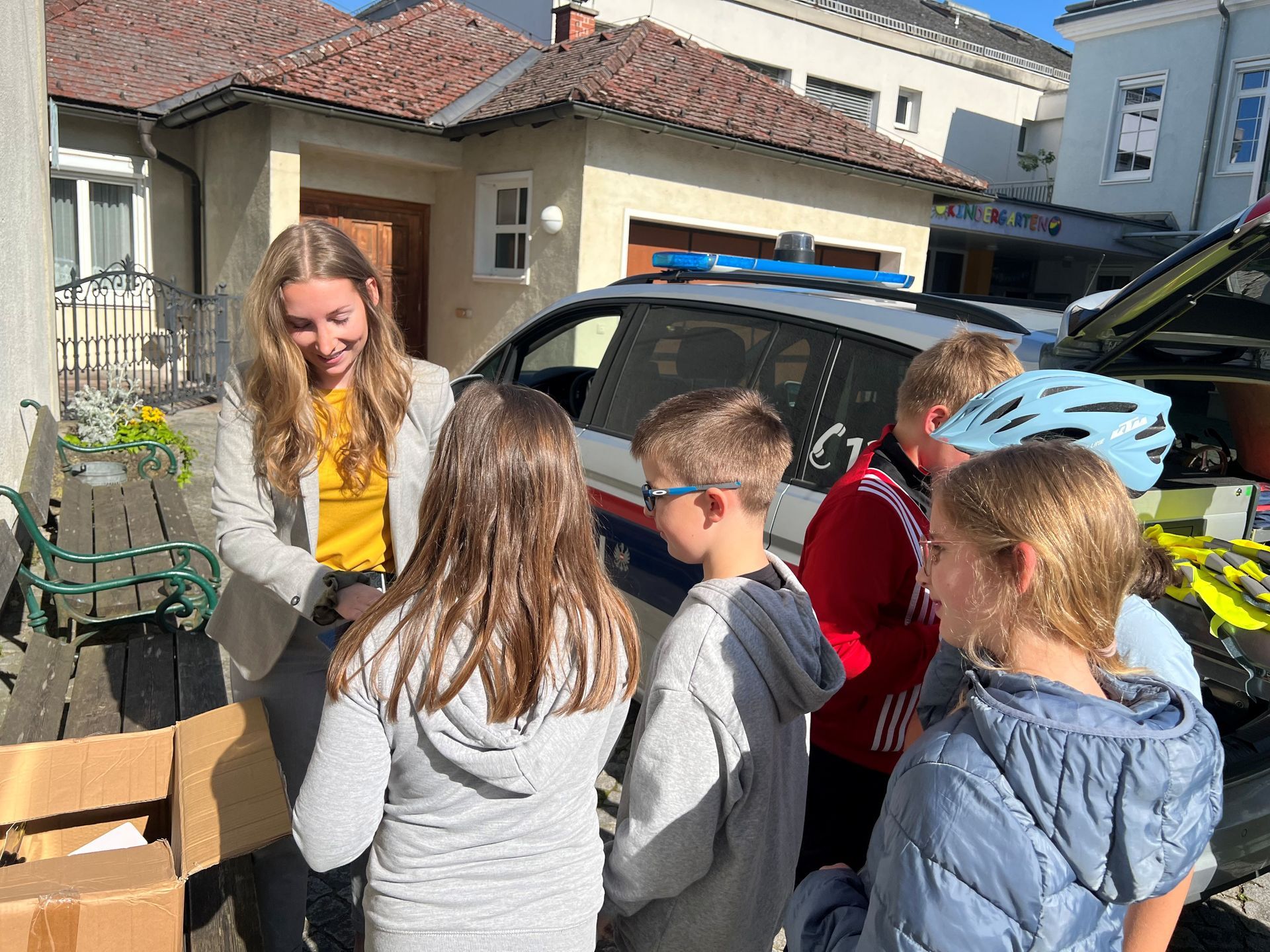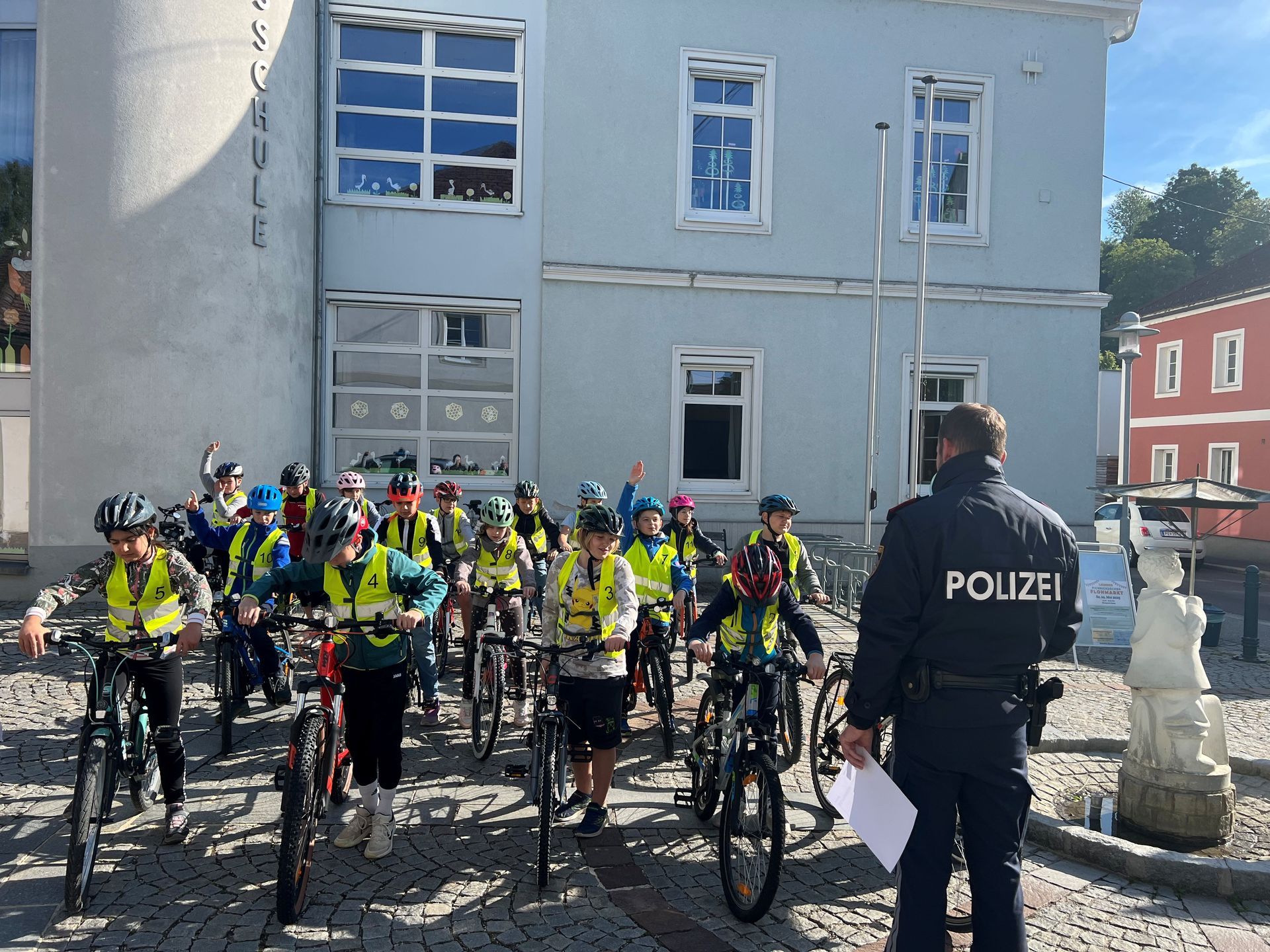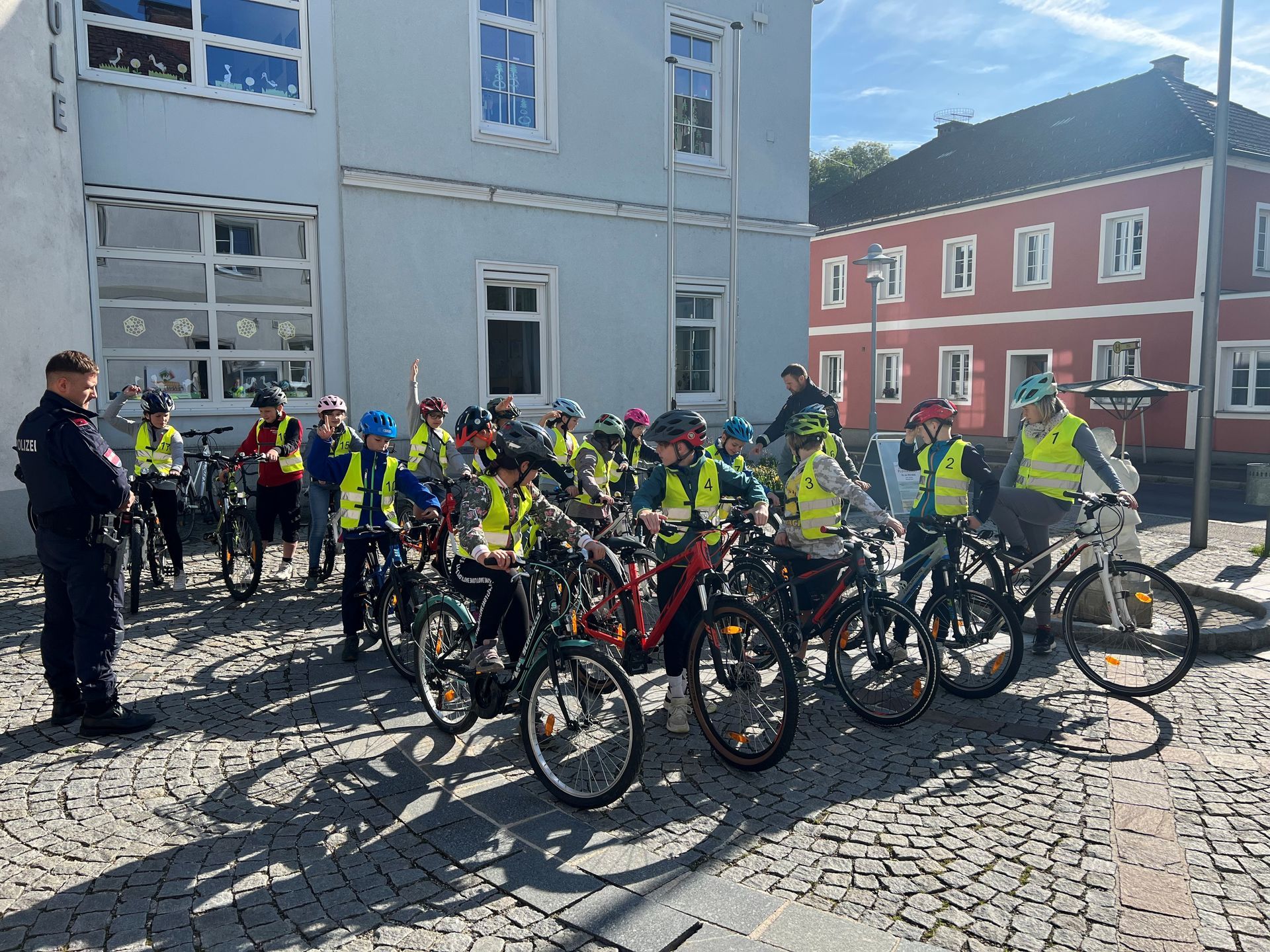 Nach der Besprechung fuhren die Kinder zwei Runden im Ortsgebiet von Saxen. Alle Teilnehmer:innen konnten die Polizisten von ihrem Können überzeugen und somit schafften alle die Radfahrprüfung.