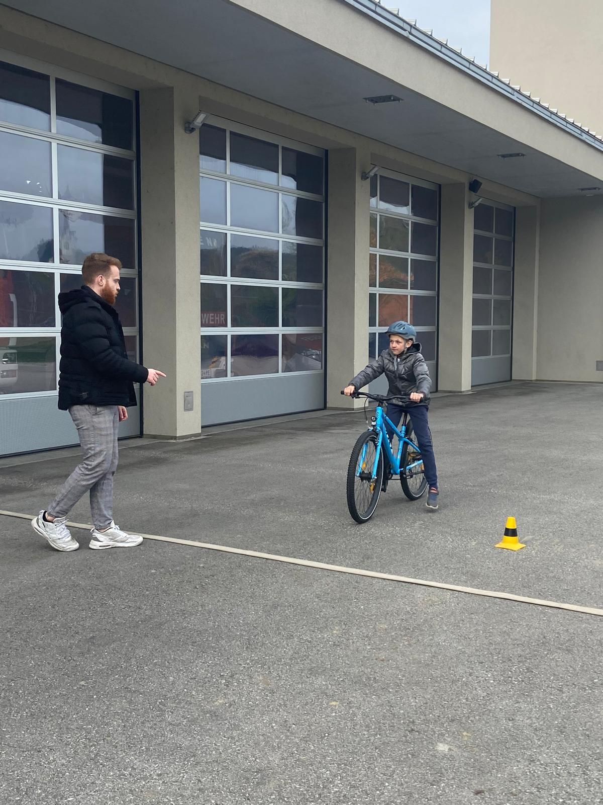 Das Training fand am Vorplatz der Feuerwehr statt, wo die Kinder unter realitätsnahen Bedingungen üben konnten.