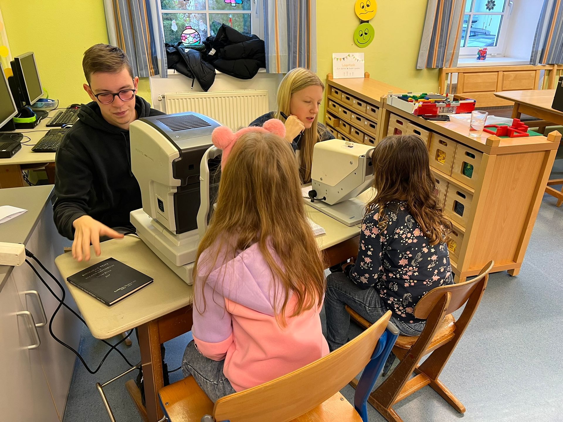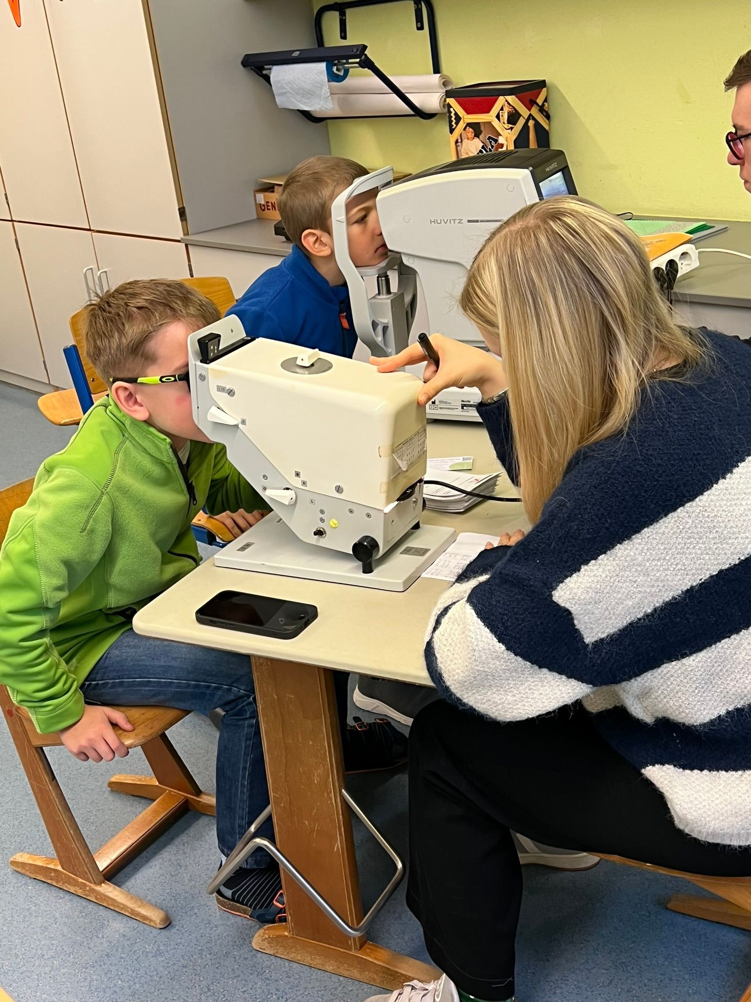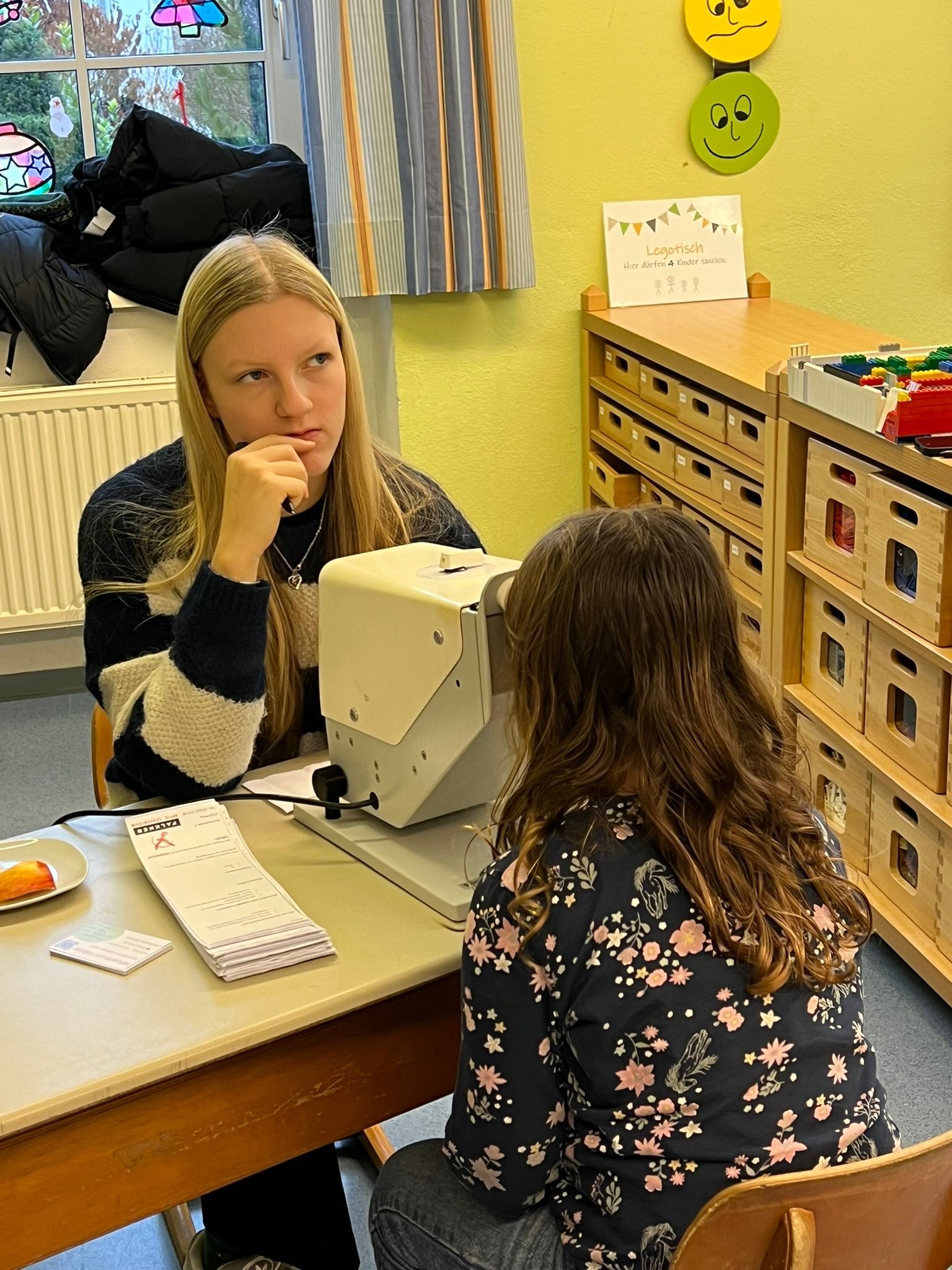 Die Augen wurden genau untersucht und mögliche Sehschwächen konnten bei einem Sehtest festgestellt werden. Außerdem wurde geprüft, ob die Kinder alle Farben sehen können.