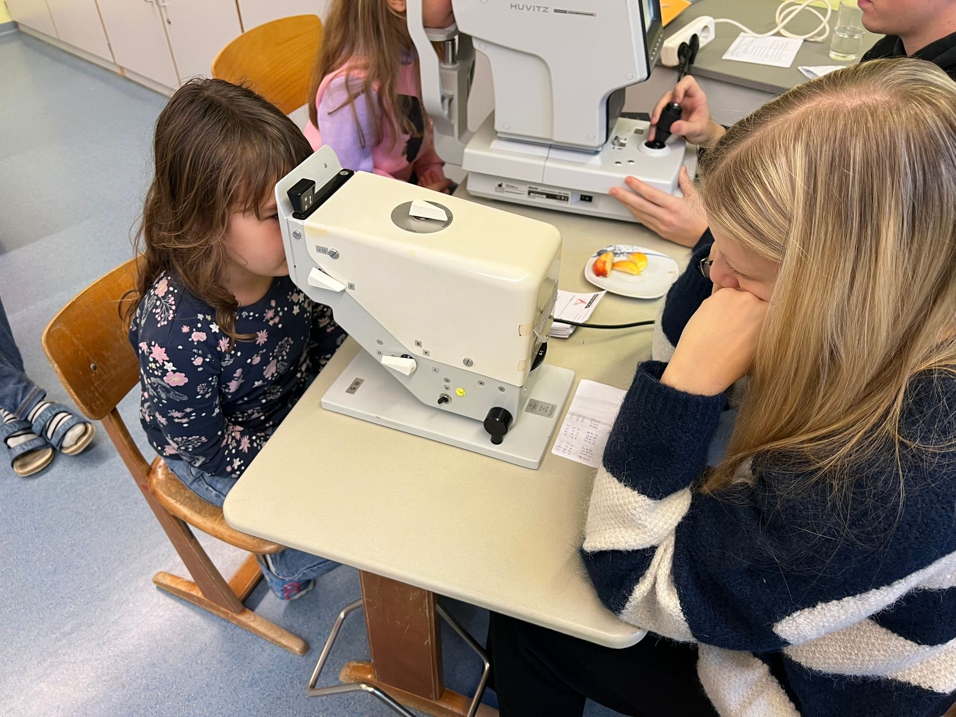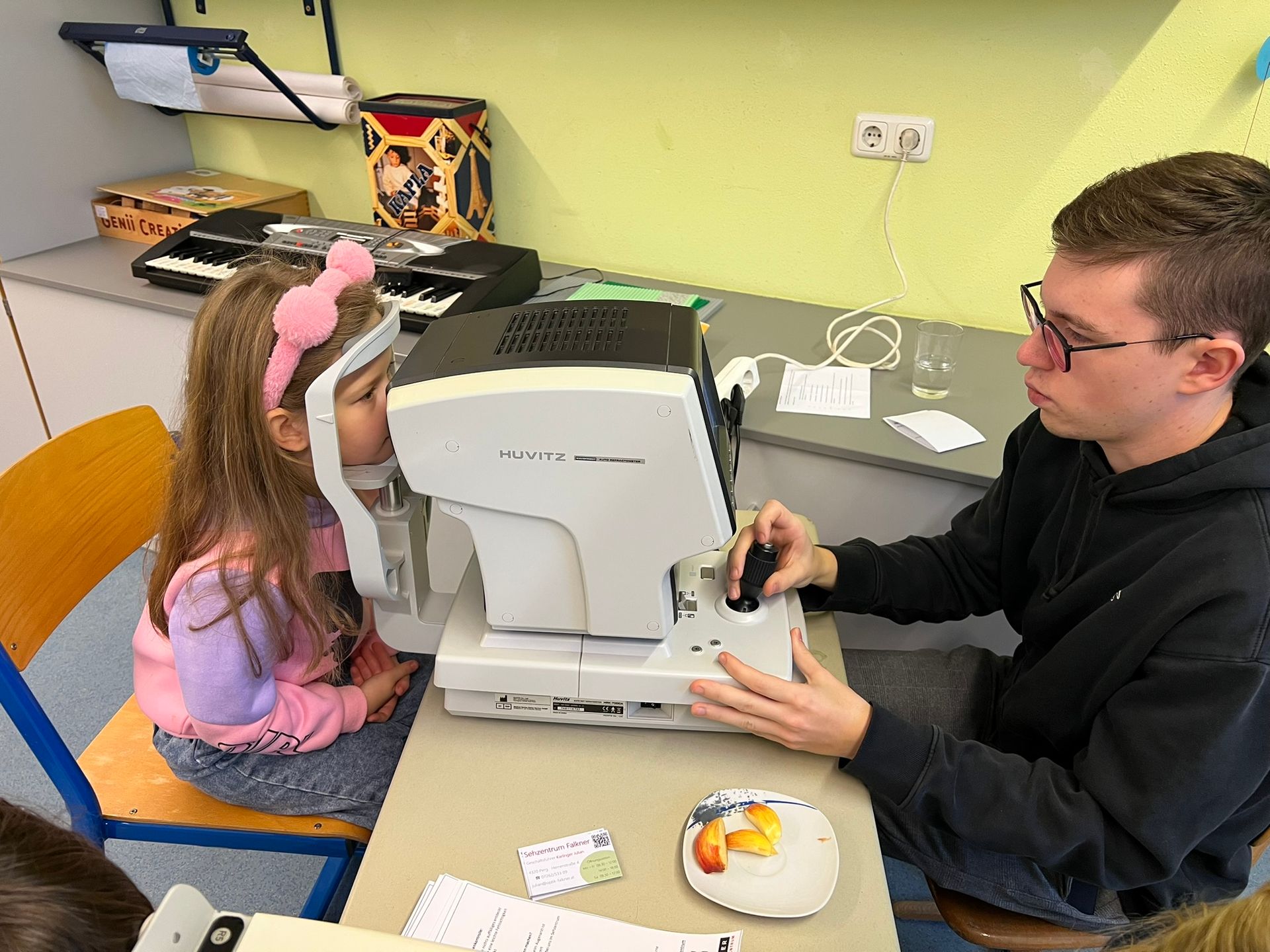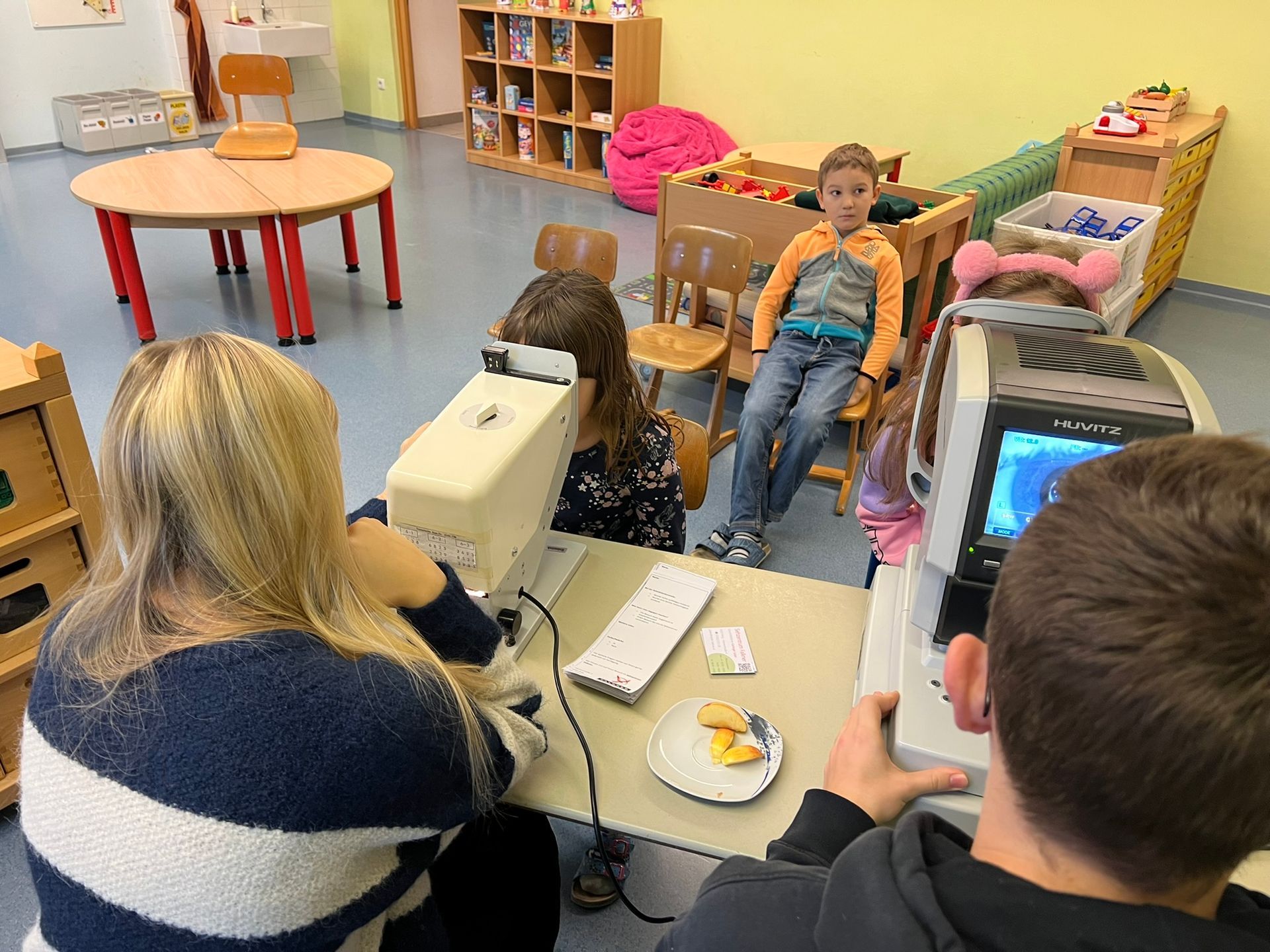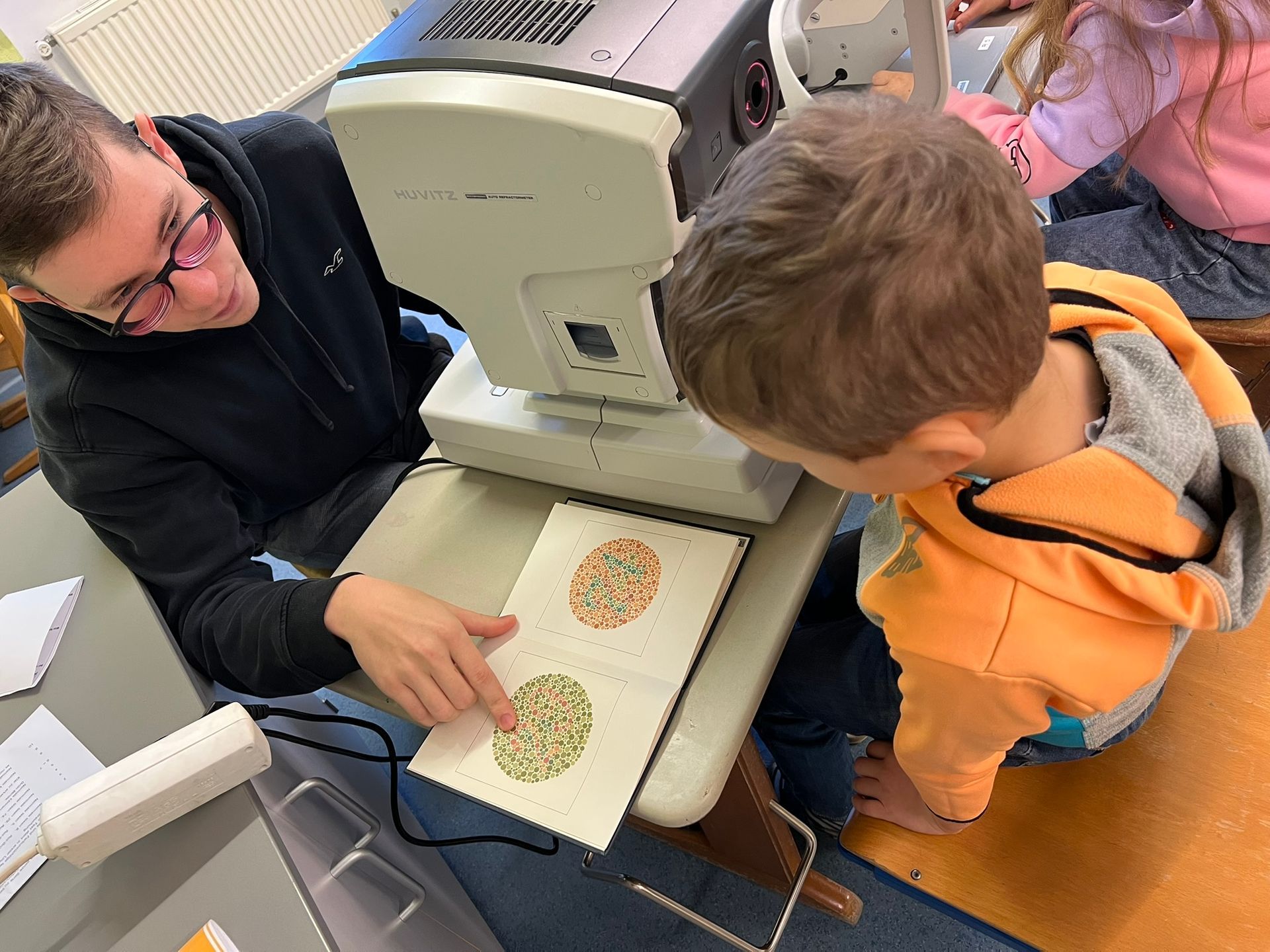 Die Augen wurden genau untersucht und mögliche Sehschwächen konnten bei einem Sehtest festgestellt werden. Außerdem wurde geprüft, ob die Kinder alle Farben sehen können.
