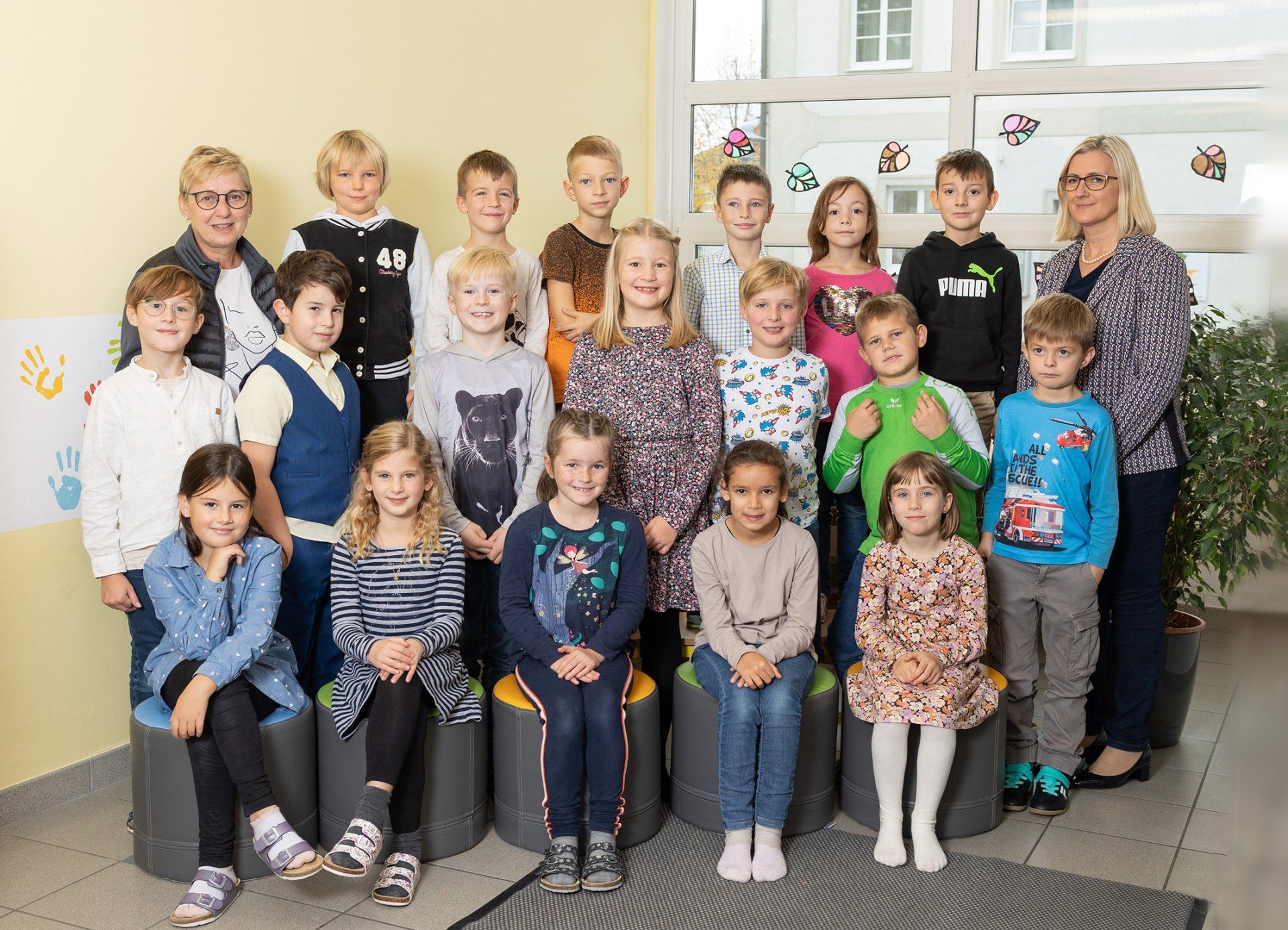 Am letzten Schultag verabschiedeten sich die Kinder und Eltern im Schulgarten feierlich von ihrer Klassenlehrerin Frau Prof. Margit Obermayr.
