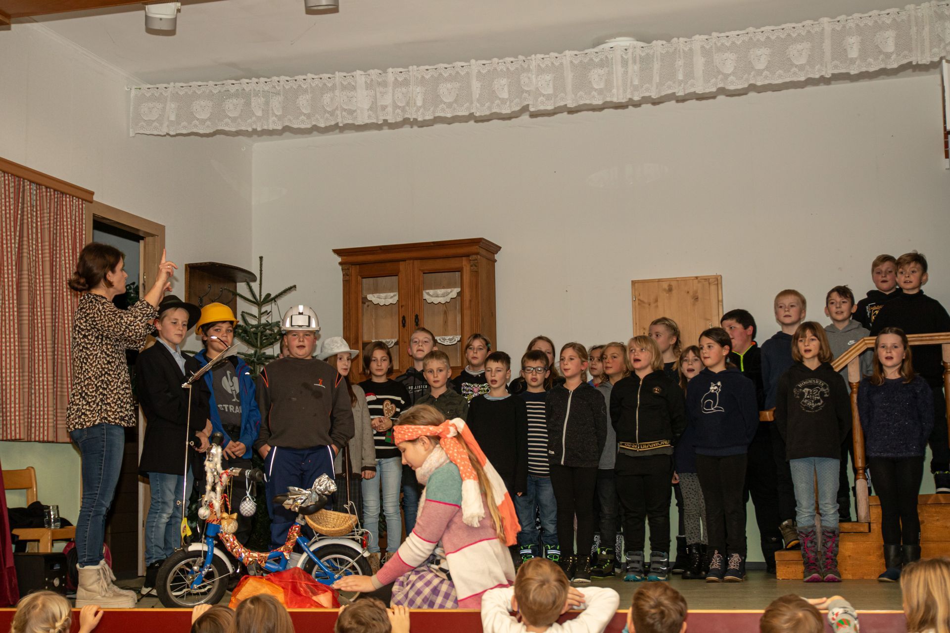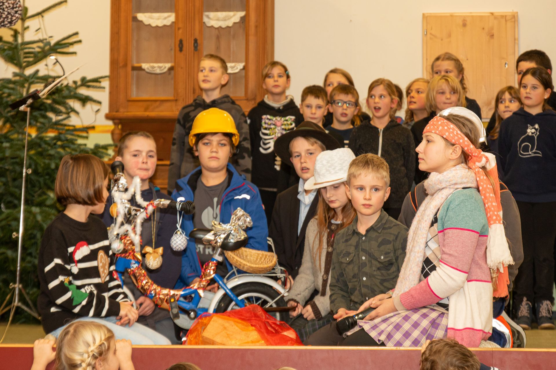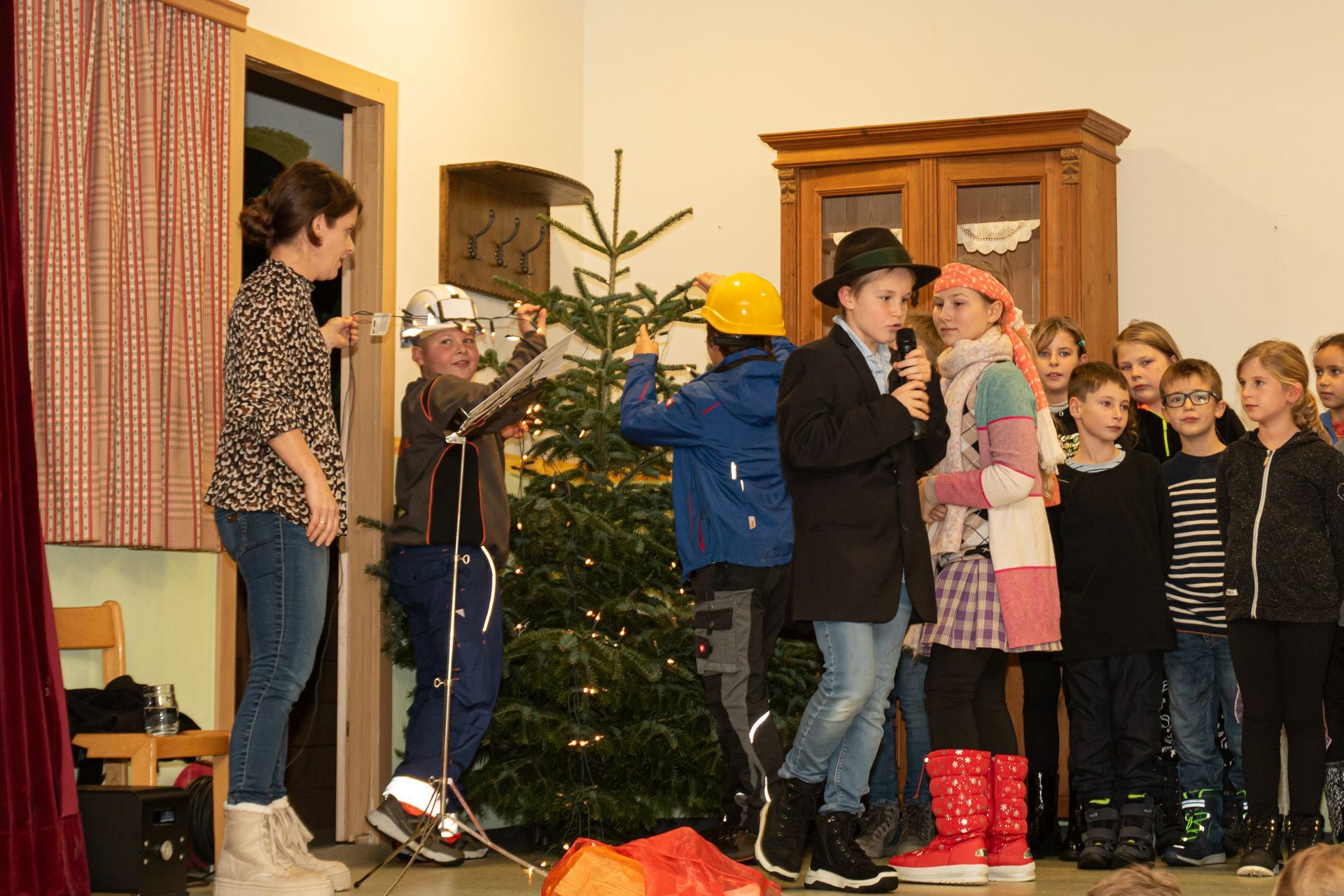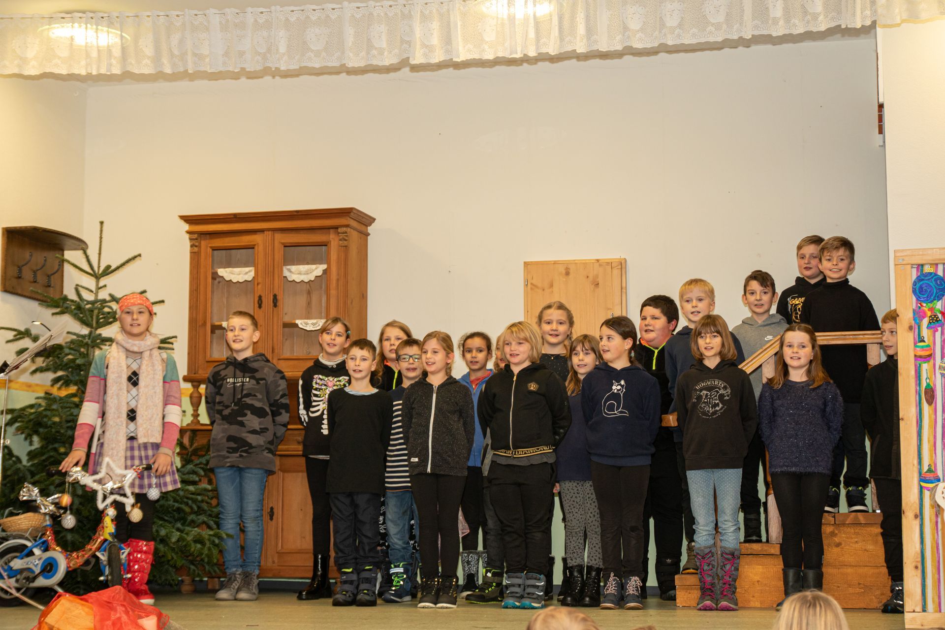 Die Kinder der 3. und 4. Klasse zeigten ein musikalisches Theaterstück mit dem Titel "Ein Dorf findet Weihnachten". Zuerst wollte im Dorf keine Weihnachtsstimmung aufkommen, alle Bewohner waren gestresst und hektisch. Doch ein kleines lustiges Mädchen namens Charlie schaffte es, die Menschen auf das wirklich Wichtige im Leben zu besinnen: Freundschaft, Gemeinschaft und Naturschutz. Besonders beeindrucken waren die gesanglichen Beiträge der Kinder.