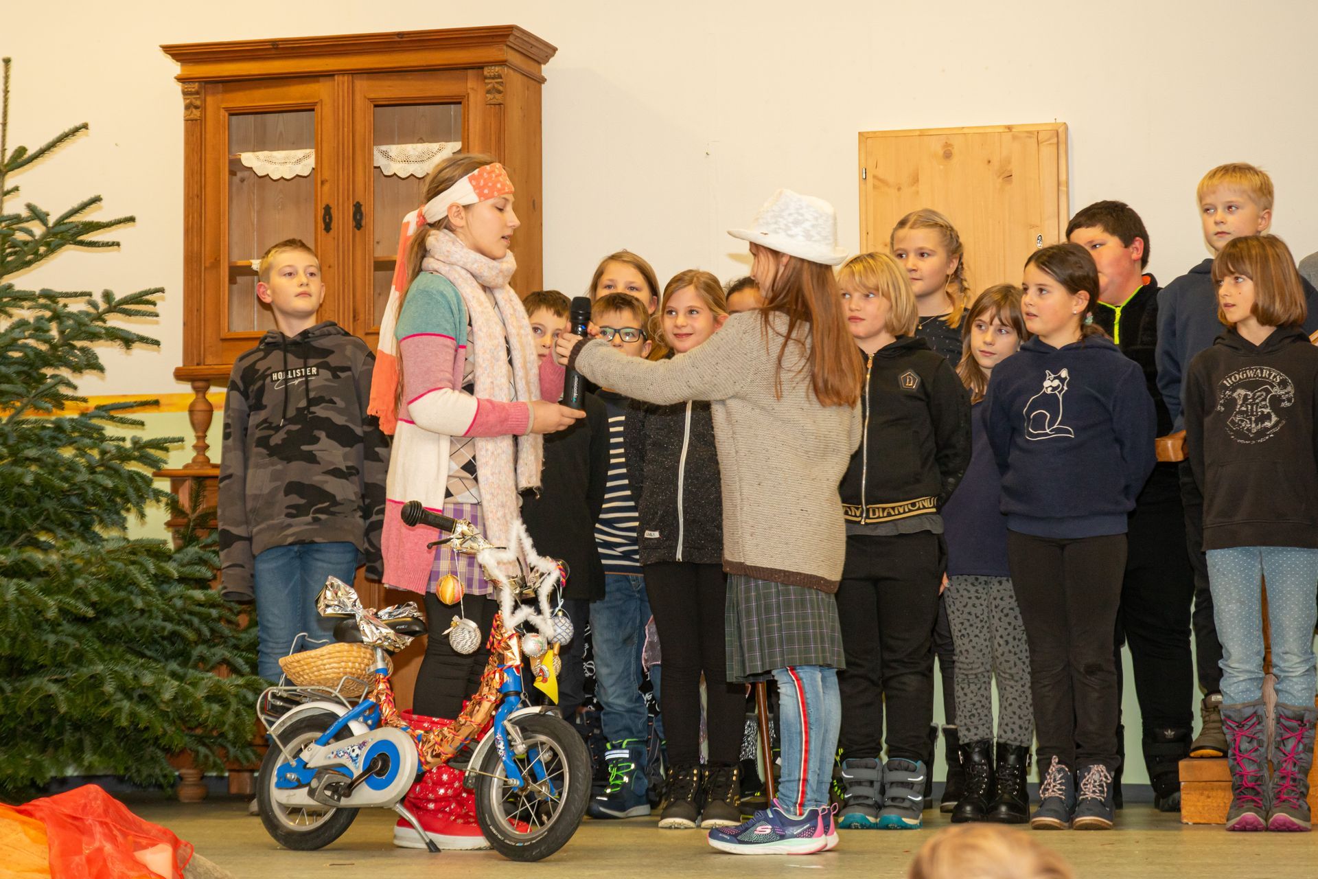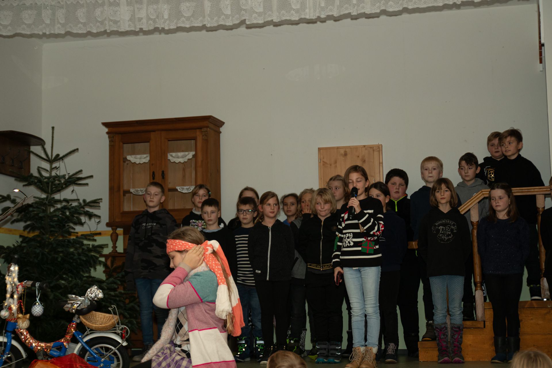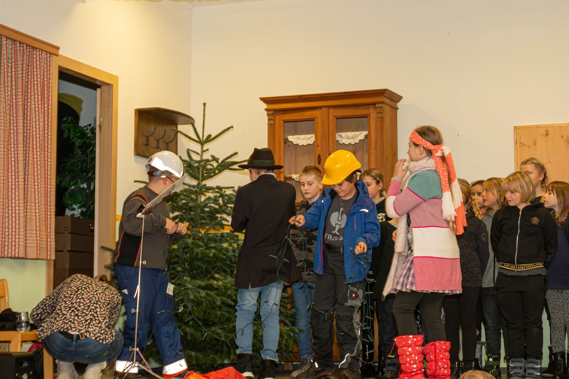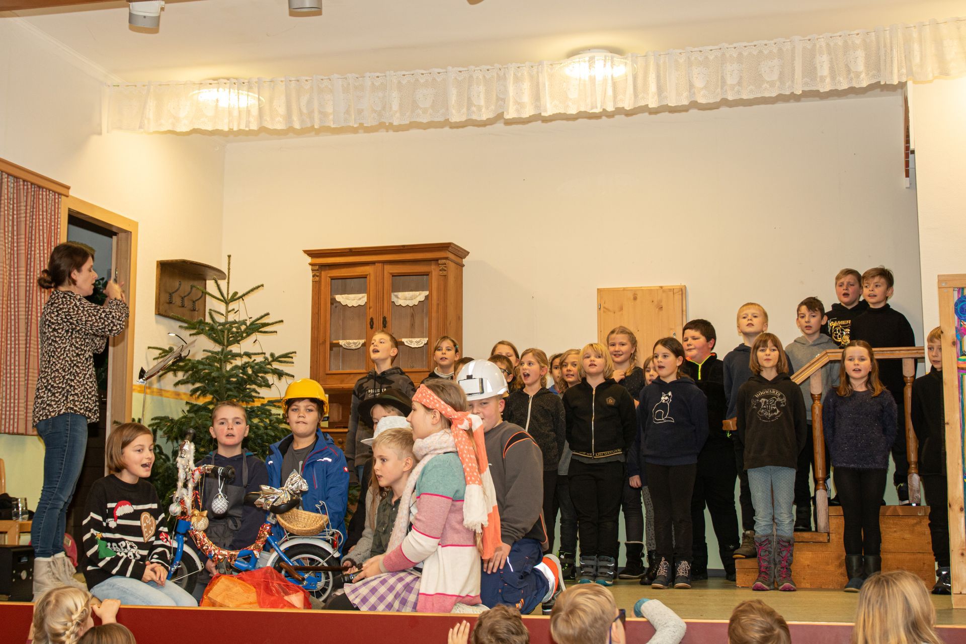 Die Kinder der 3. und 4. Klasse zeigten ein musikalisches Theaterstück mit dem Titel "Ein Dorf findet Weihnachten". Zuerst wollte im Dorf keine Weihnachtsstimmung aufkommen, alle Bewohner waren gestresst und hektisch. Doch ein kleines lustiges Mädchen namens Charlie schaffte es, die Menschen auf das wirklich Wichtige im Leben zu besinnen: Freundschaft, Gemeinschaft und Naturschutz. Besonders beeindrucken waren die gesanglichen Beiträge der Kinder.
