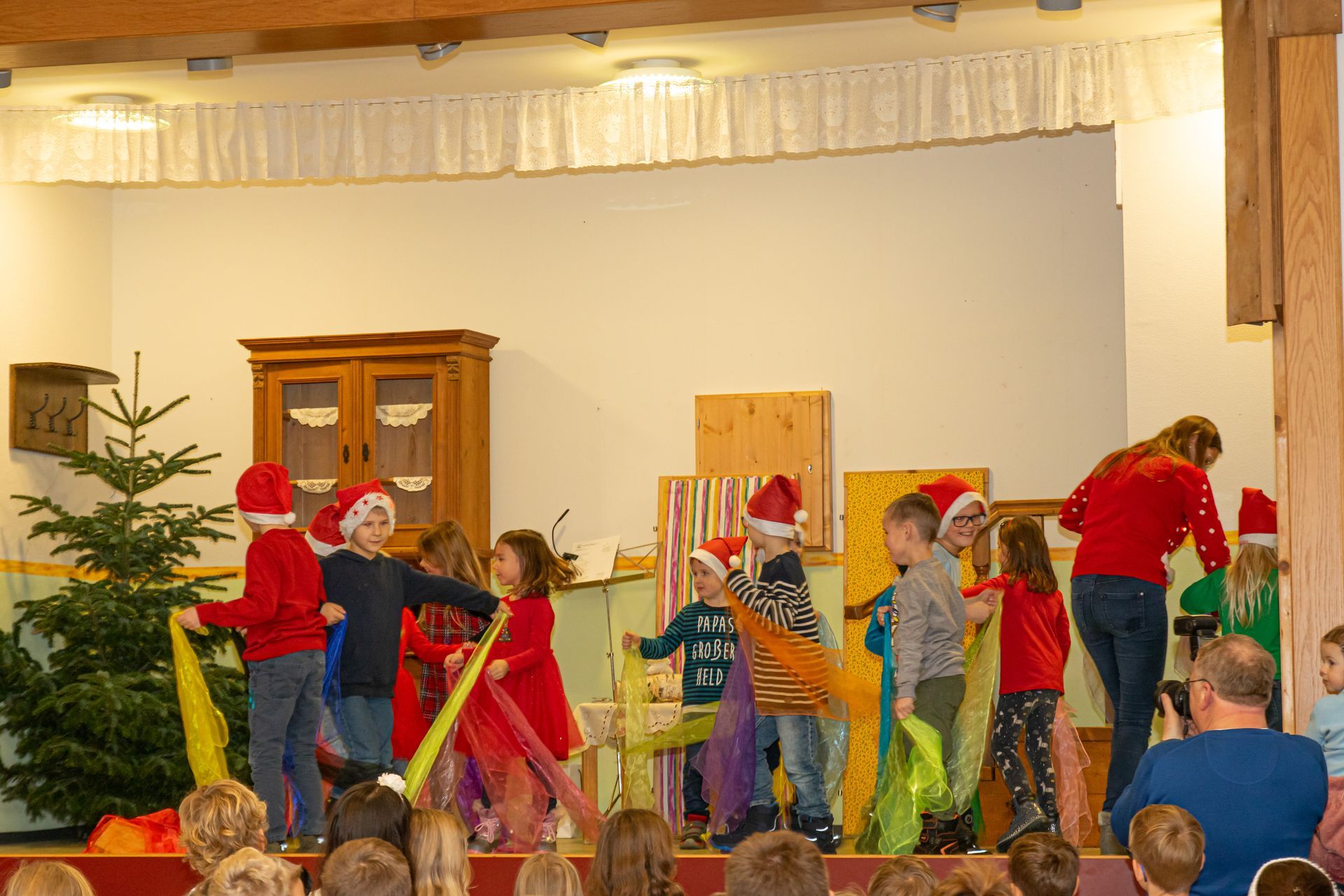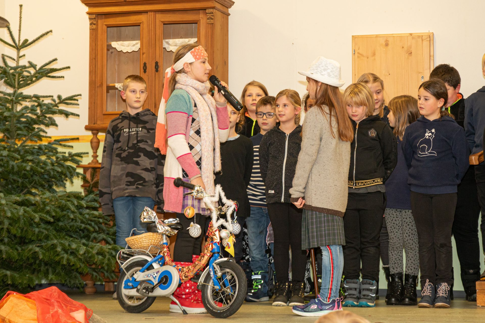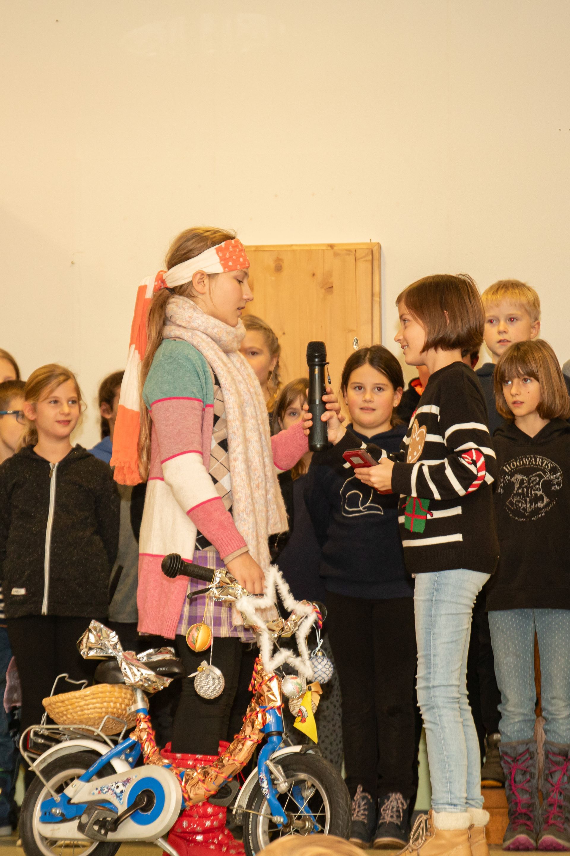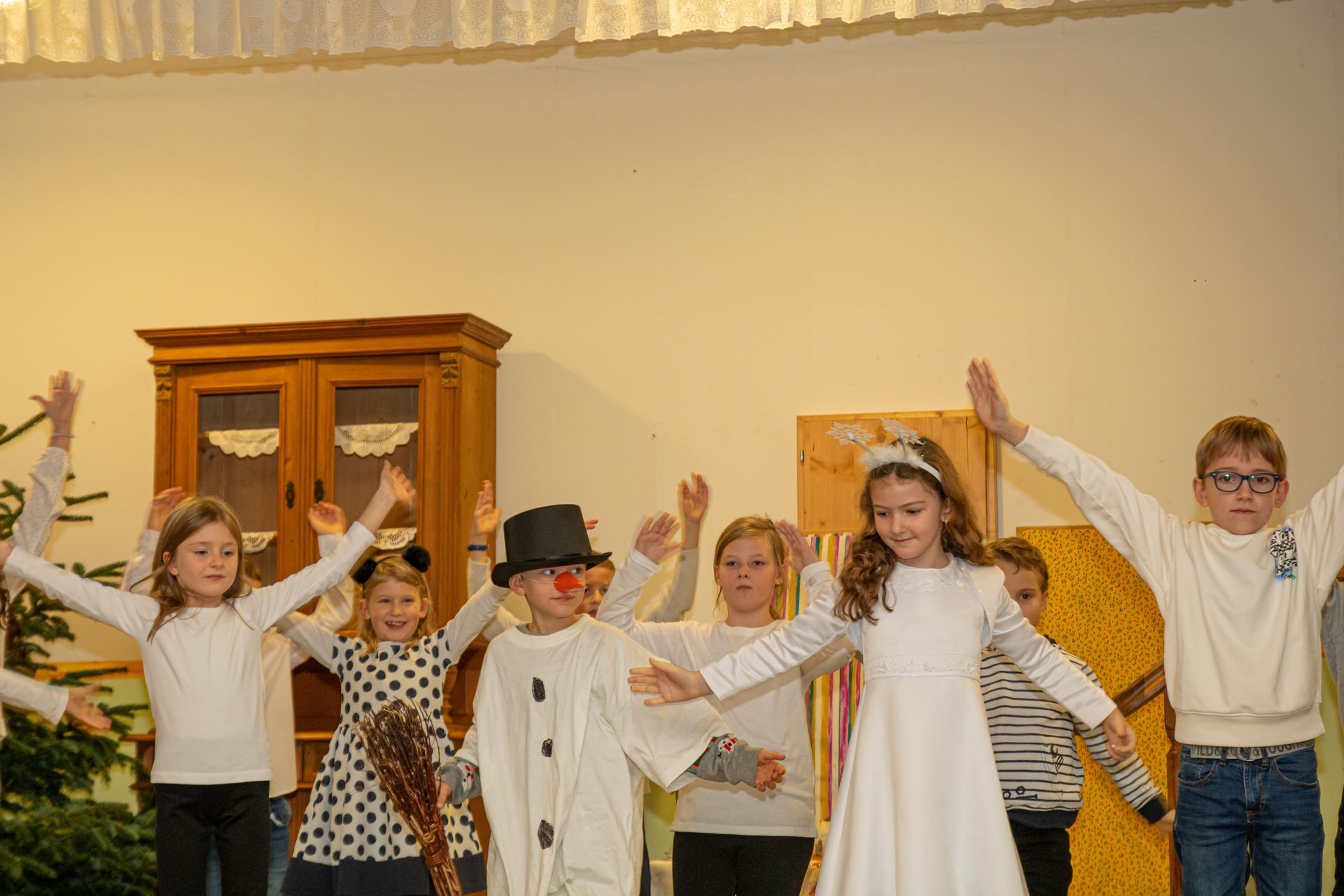 Die Kinder der 3. und 4. Klasse zeigten ein musikalisches Theaterstück mit dem Titel "Ein Dorf findet Weihnachten". Zuerst wollte im Dorf keine Weihnachtsstimmung aufkommen, alle Bewohner waren gestresst und hektisch. Doch ein kleines lustiges Mädchen namens Charlie schaffte es, die Menschen auf das wirklich Wichtige im Leben zu besinnen: Freundschaft, Gemeinschaft und Naturschutz. Besonders beeindrucken waren die gesanglichen Beiträge der Kinder.